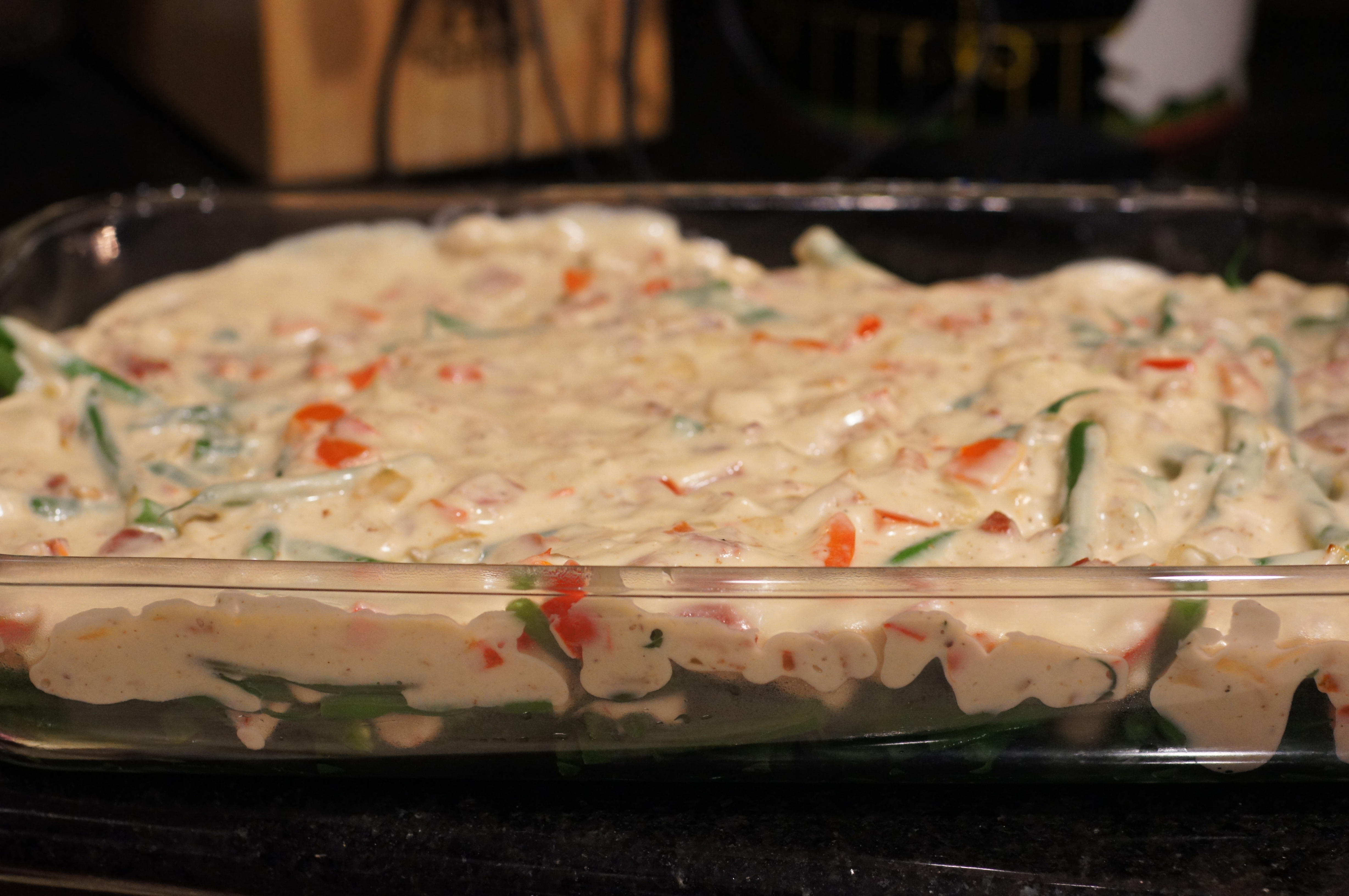 Put the green beans into a baking/casserole dish. Pour the sauce over green beans.