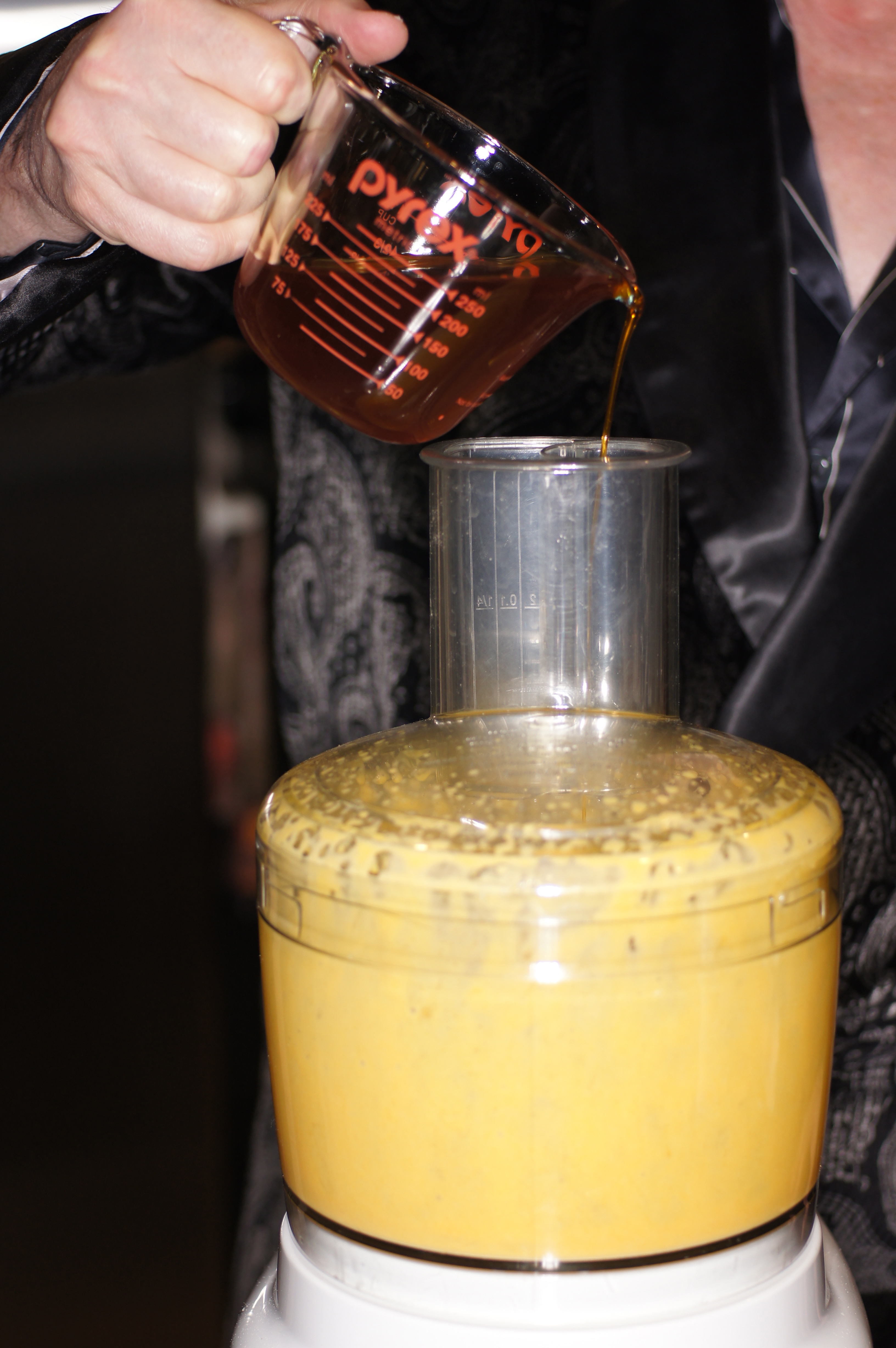 Add olive oil to egg yolks