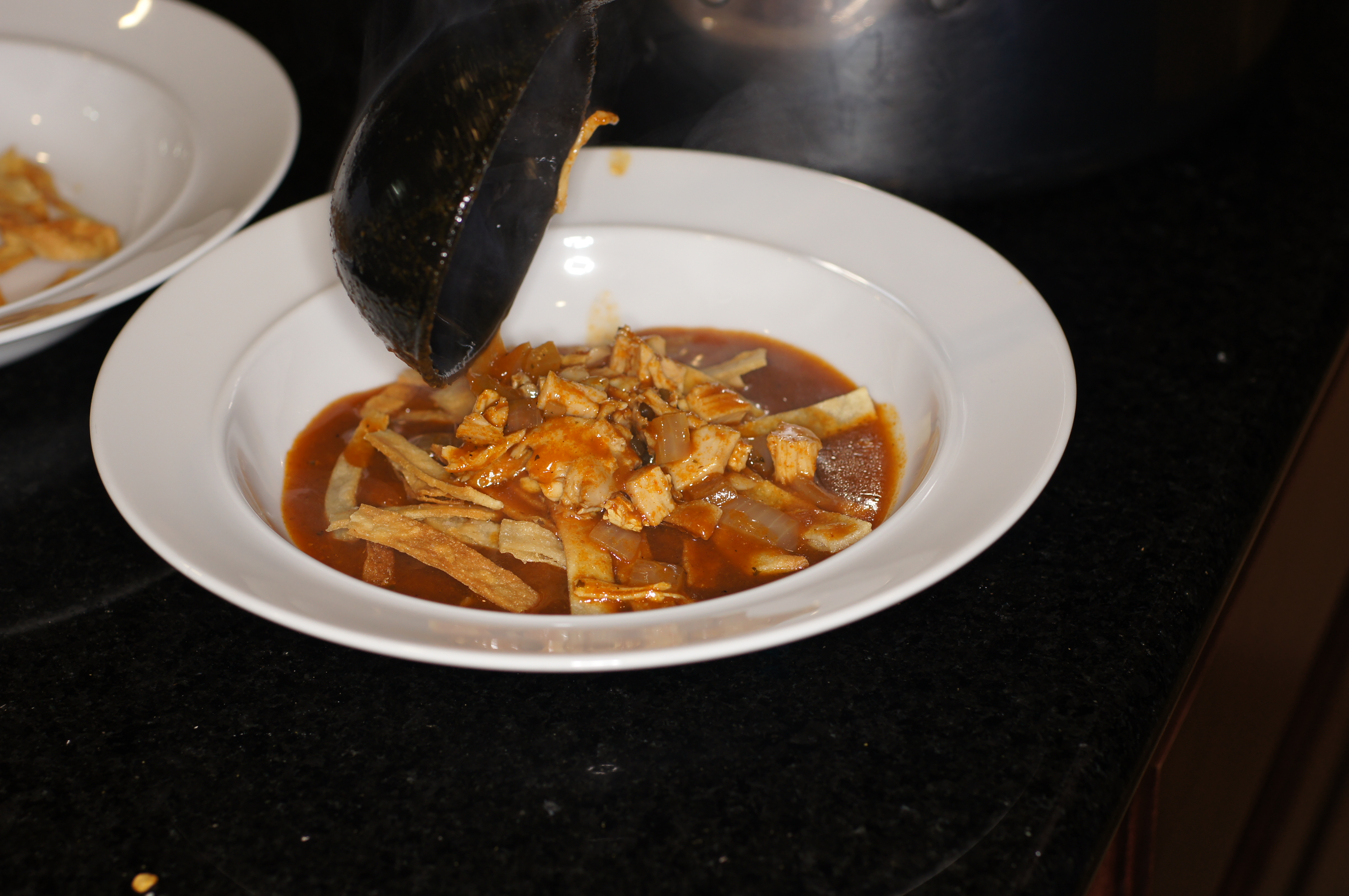 I was surprised the soup went over the fried tortilla at the end — they are not supposed to stay crispy?