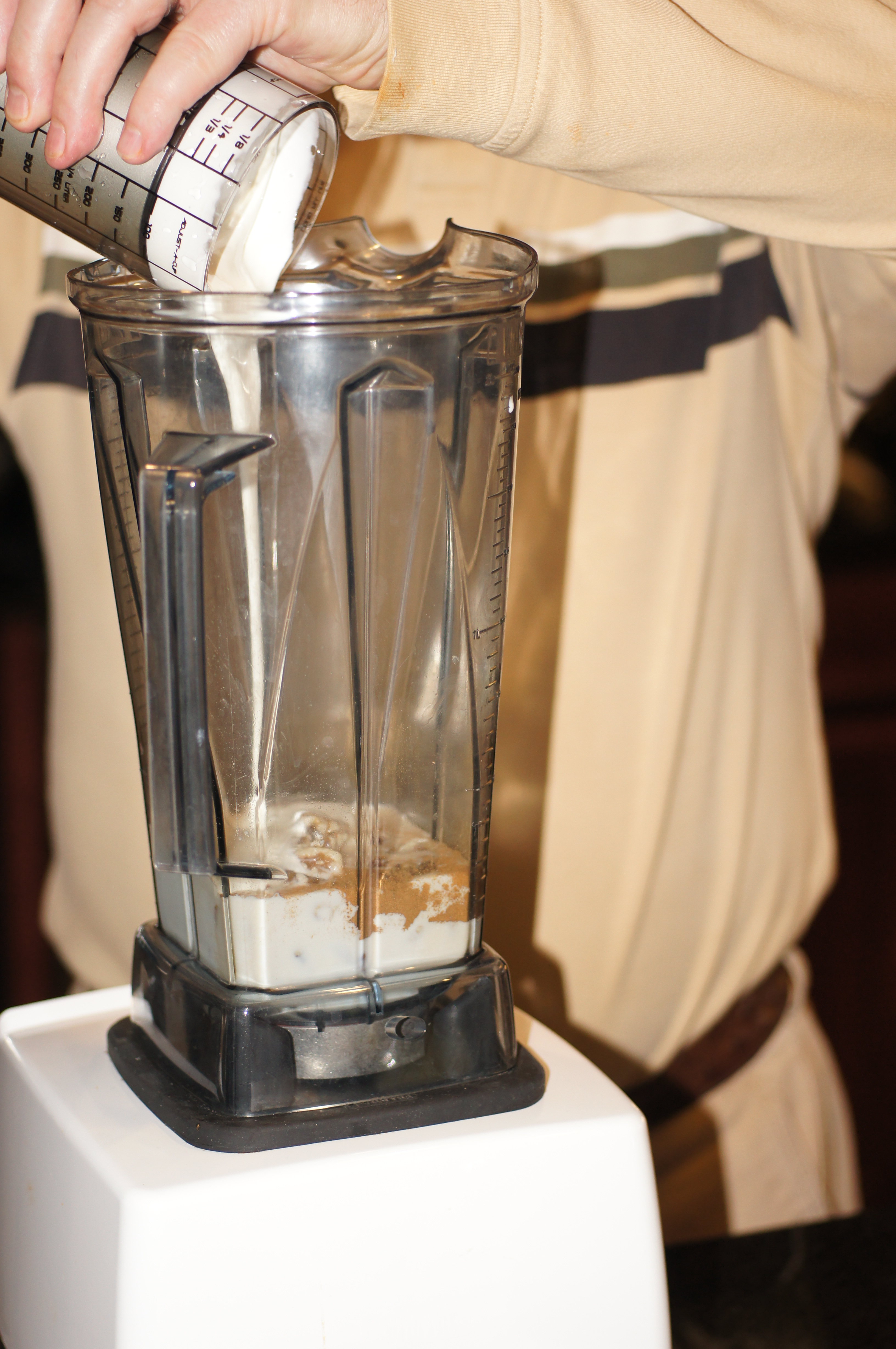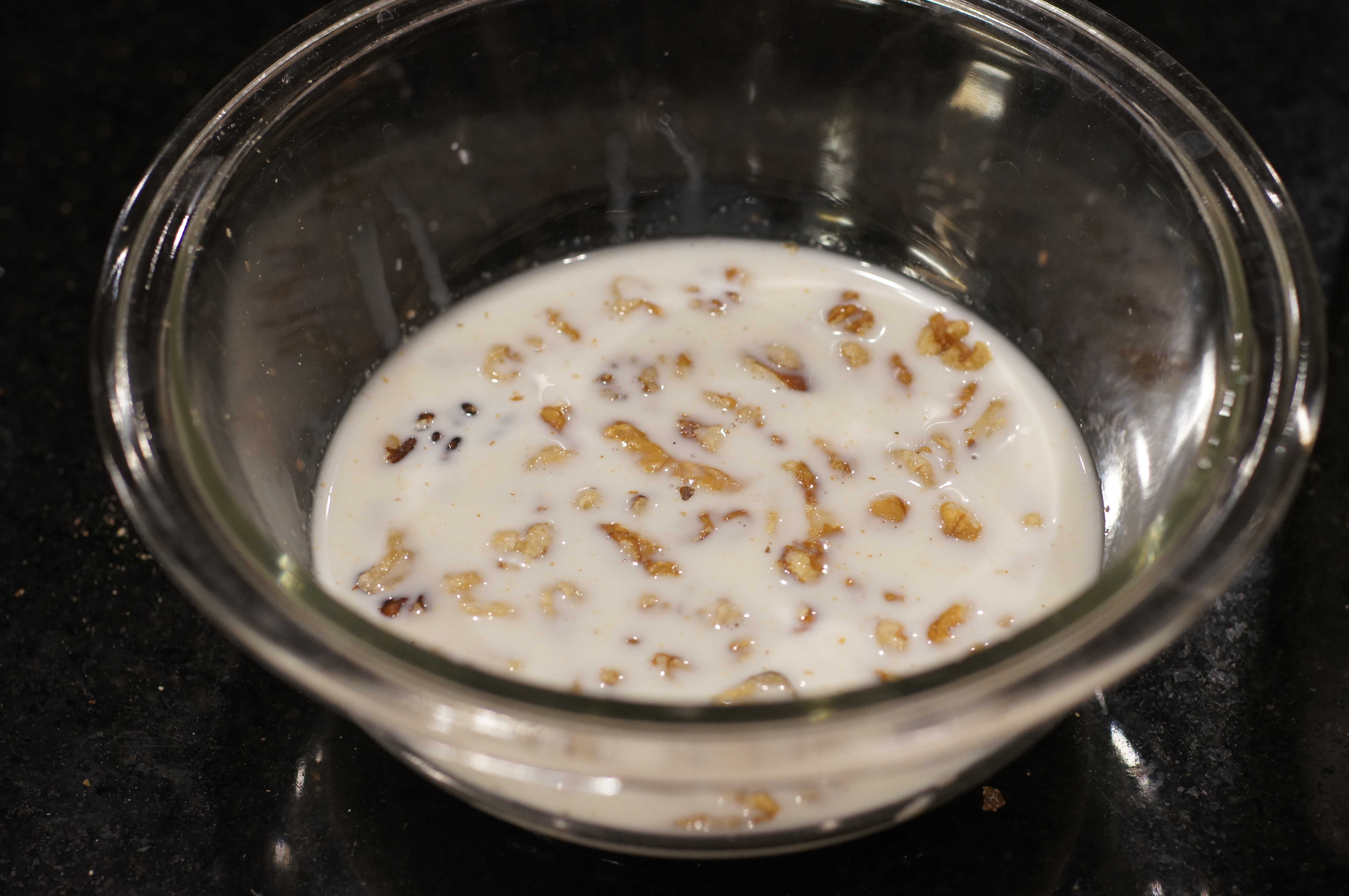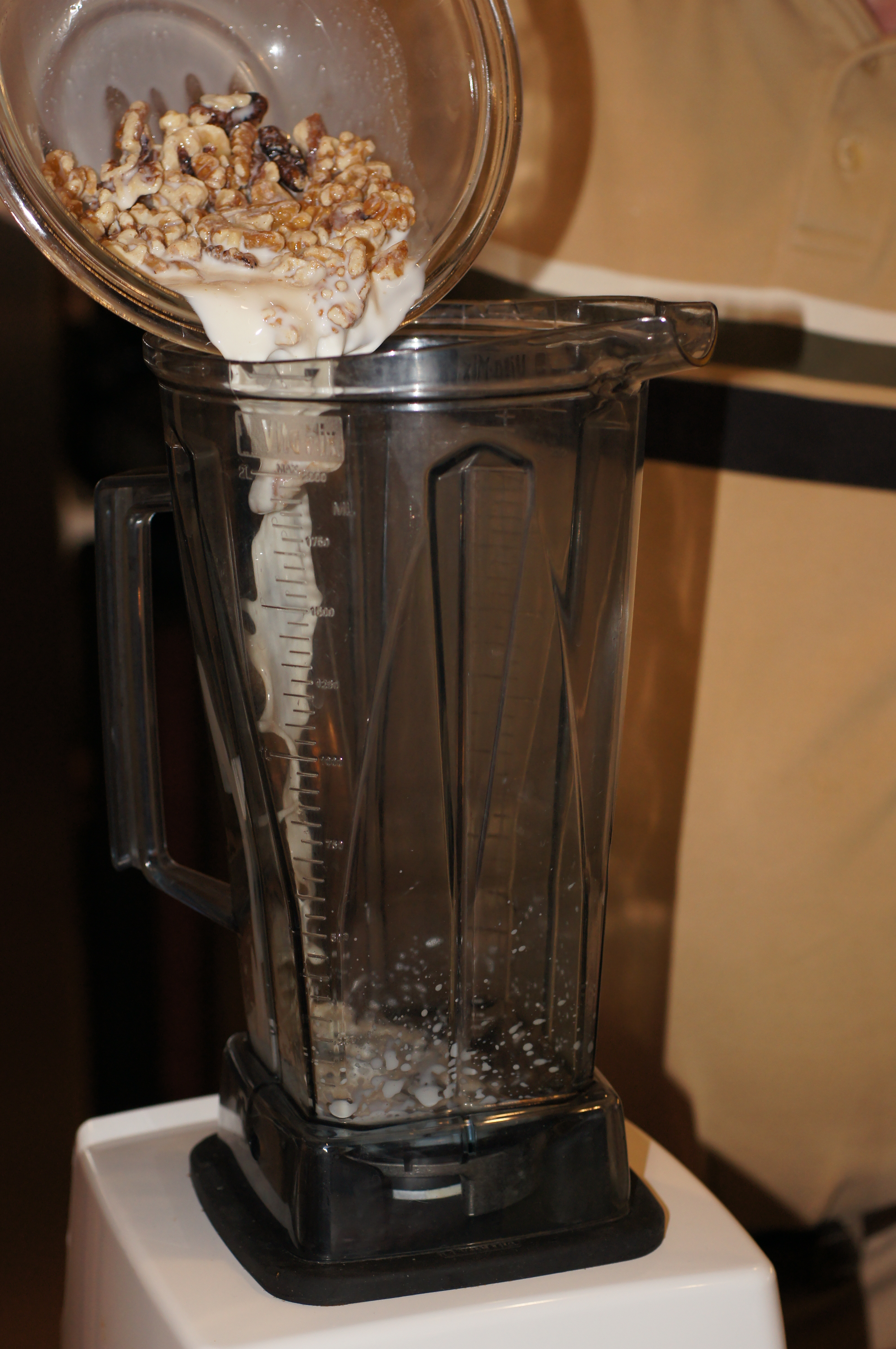 When ready to serve, pour the milk and walnuts into a blender.