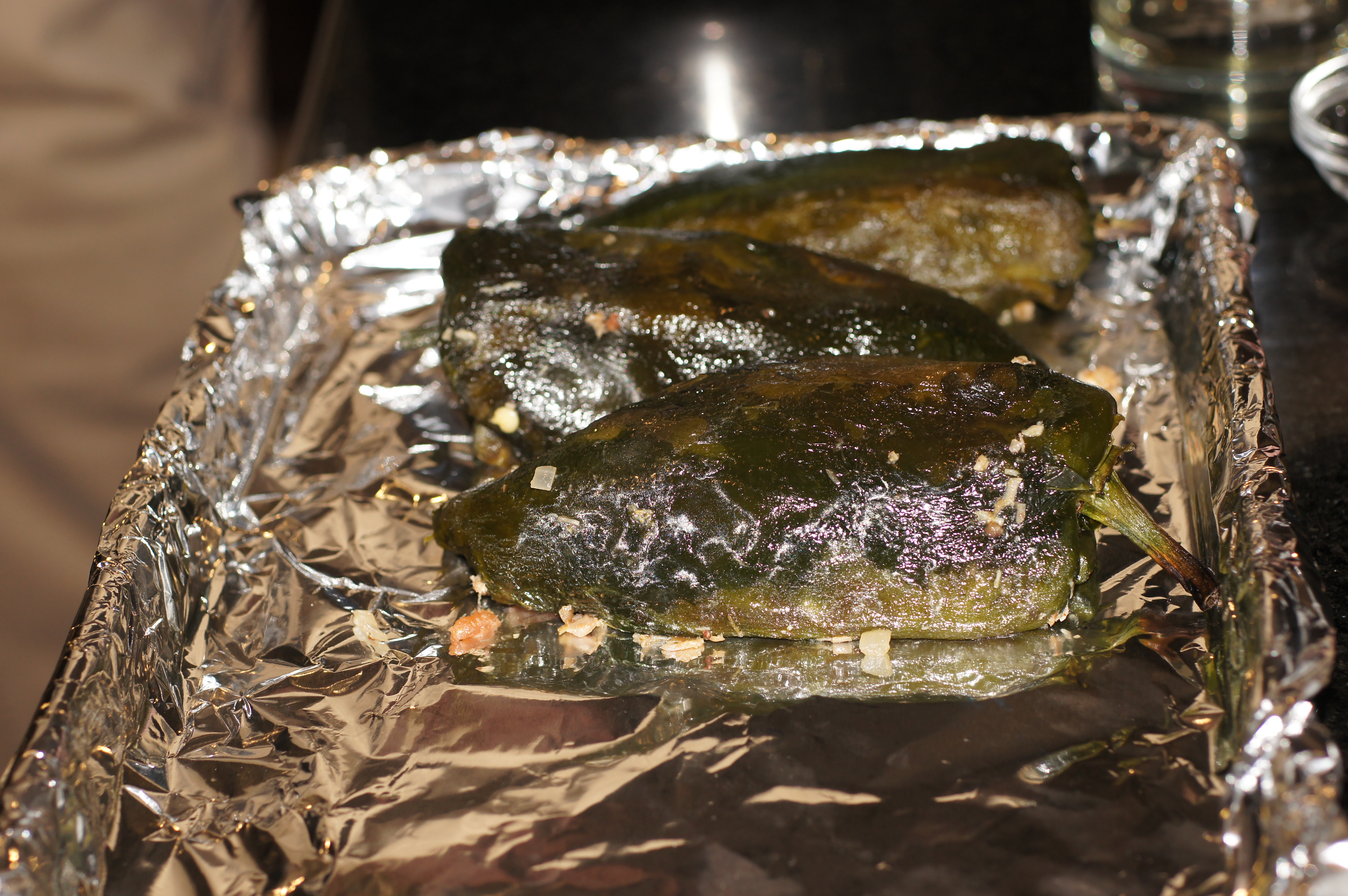 Cover loosely with foil and bake in a 350 F oven for 30 minutes to heat through. When done, remove chiles from oven and place on a plate.