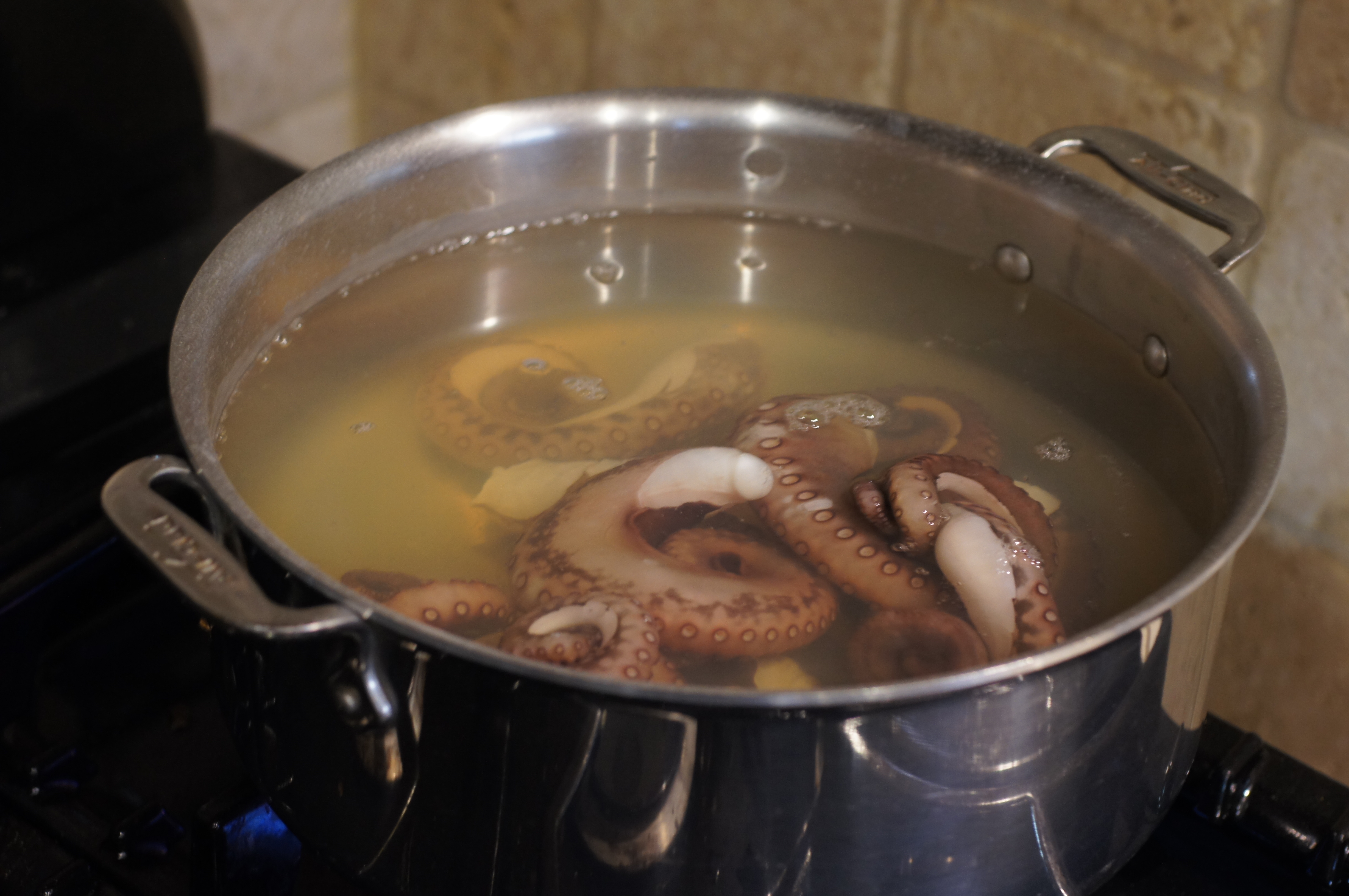 • 1 octopus, 3.5 lbs., tentacles only, par cooked and chopped into 2 inch pieces