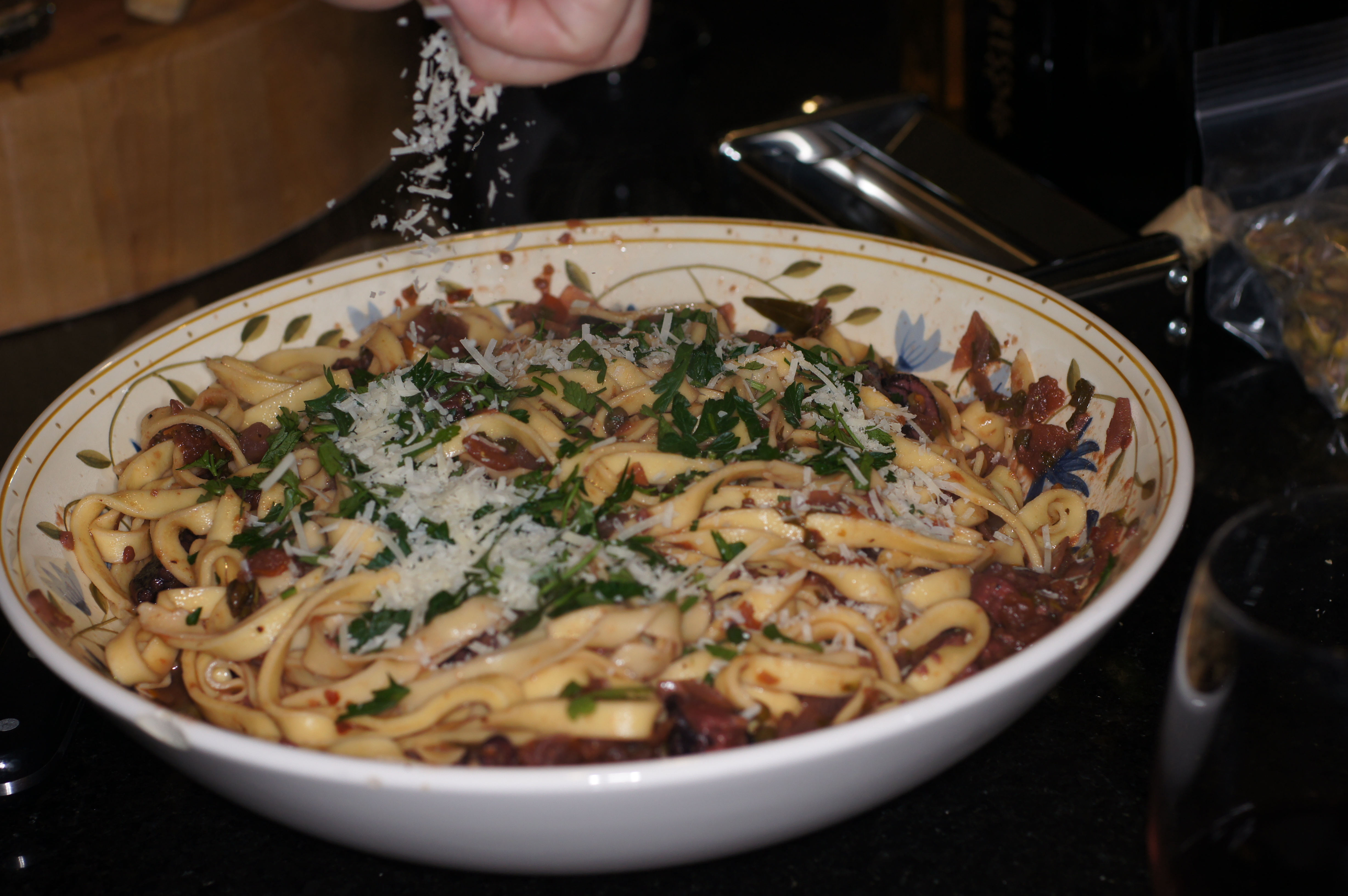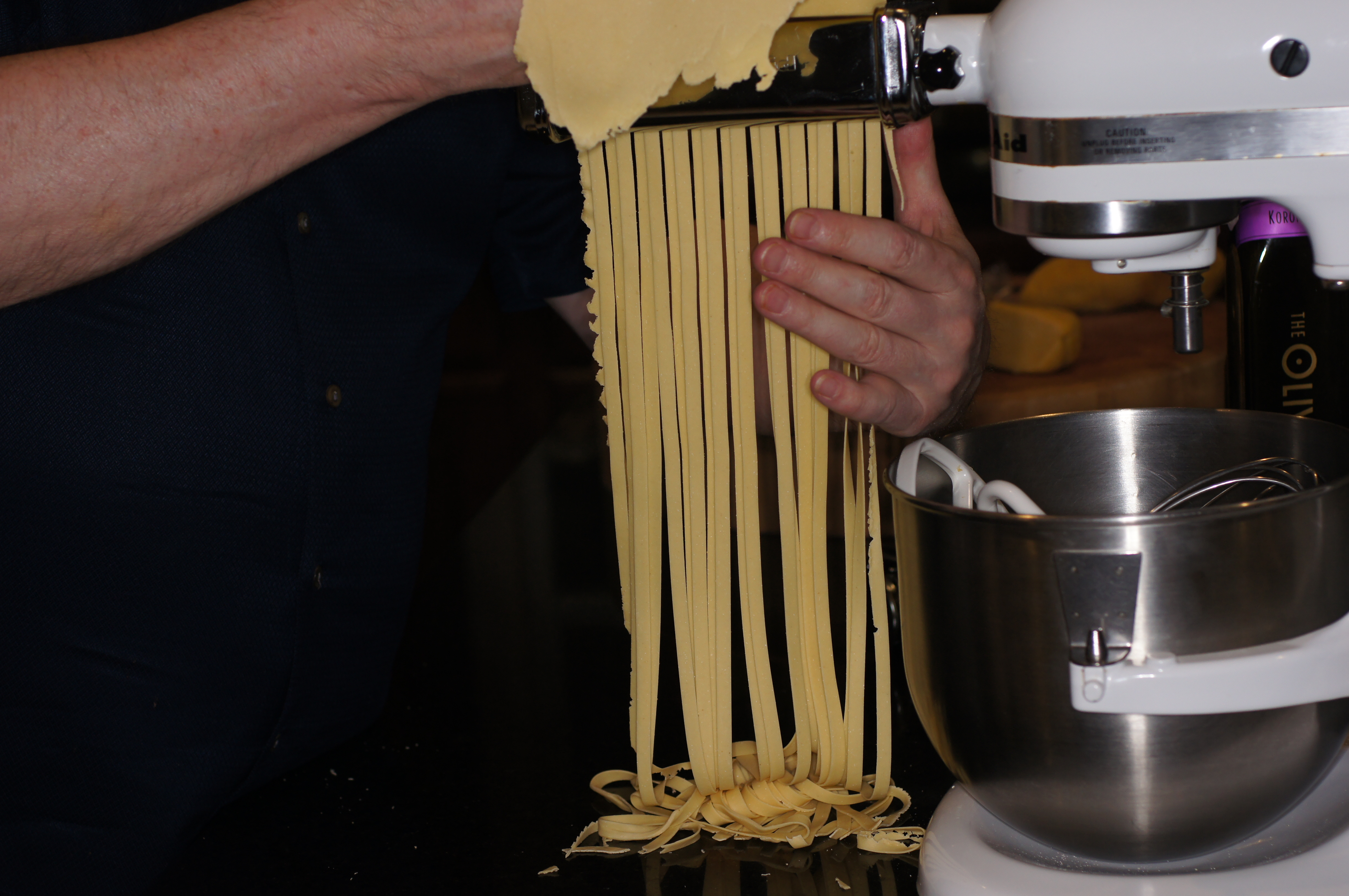 1. Hi, Stefan. Right now I’m playing with the pasta dough. I like the 50/50 flour blend and am now adjusting the eggs. This one had 3 whole eggs and an additional yolk. It gives it a slightly eggier flavor. I’m wanting to try it with duck eggs because they have larger yolks to see if there is any difference. I’m also working on getting the “feel” of the dough. Once I get these basics down, I will try some stuffed pastas. I am already looking at some pasta dies as John gave me the site from which he buys his dies. You guys have gotten me hooked. There definitely will be a stuffed pasta on the blog in the near future.