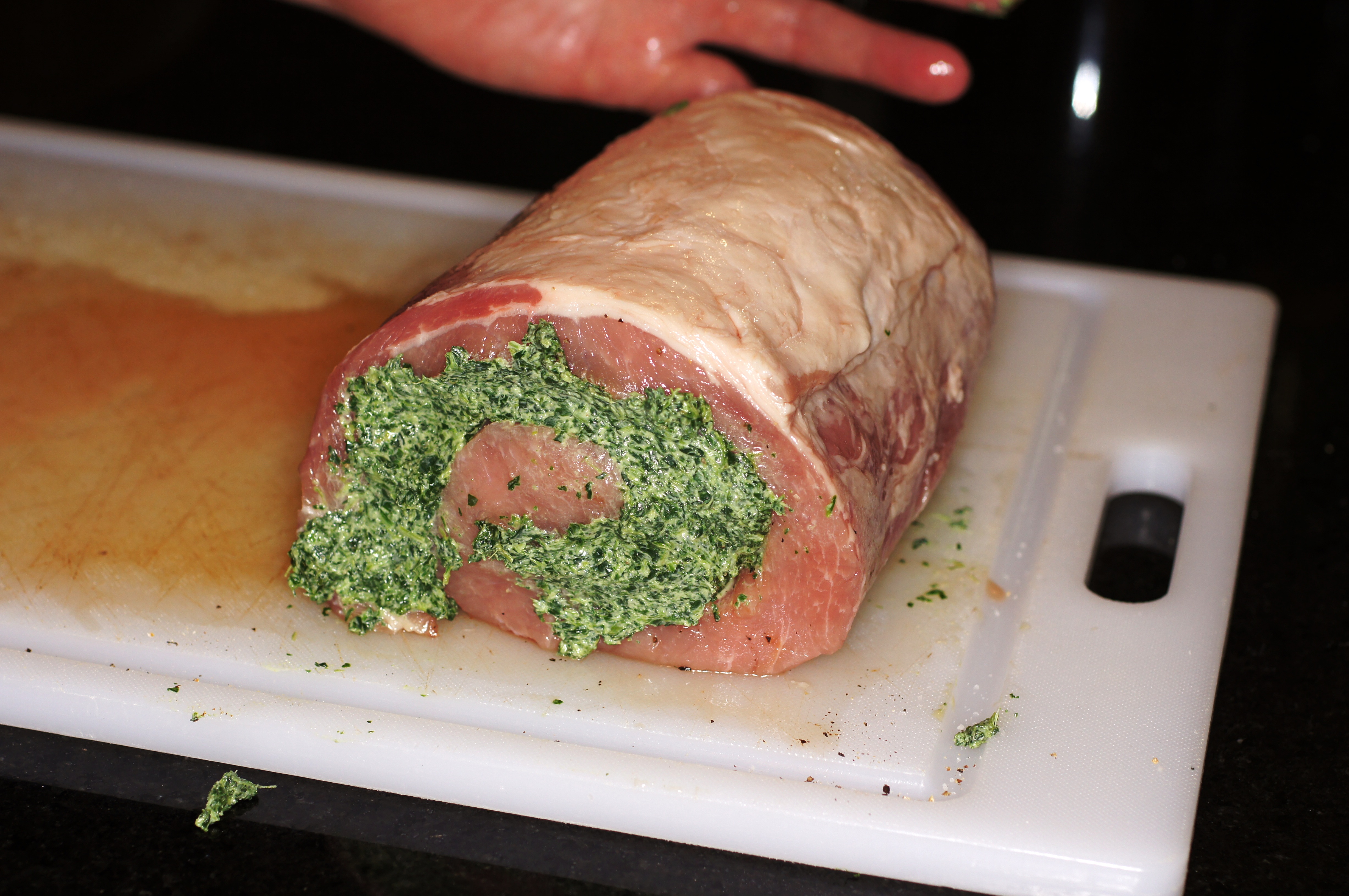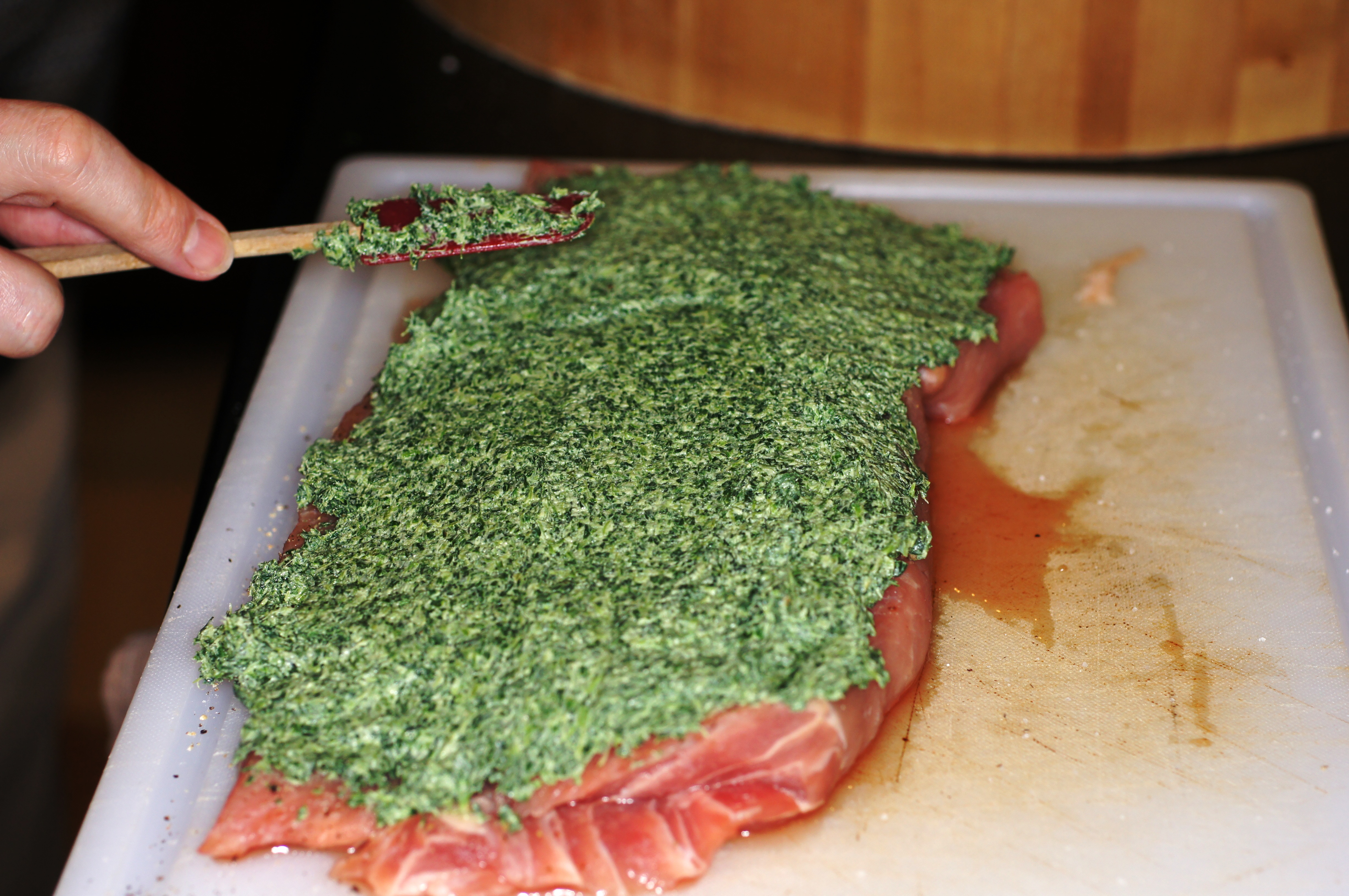 Take the filling and spread on the pork loin.