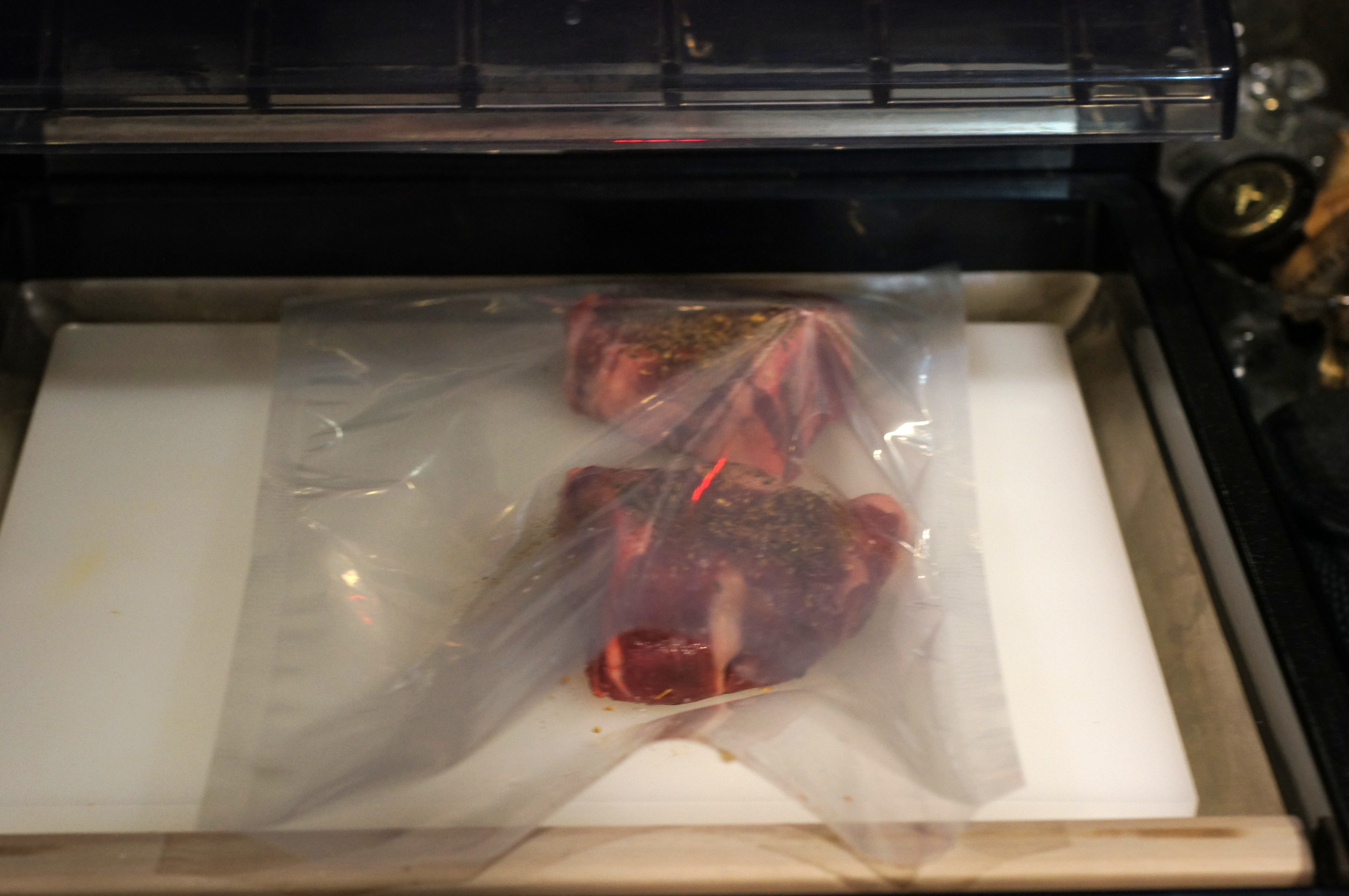 Place the chops in a vacuum bag and put bag in chamber vacuum sealer.