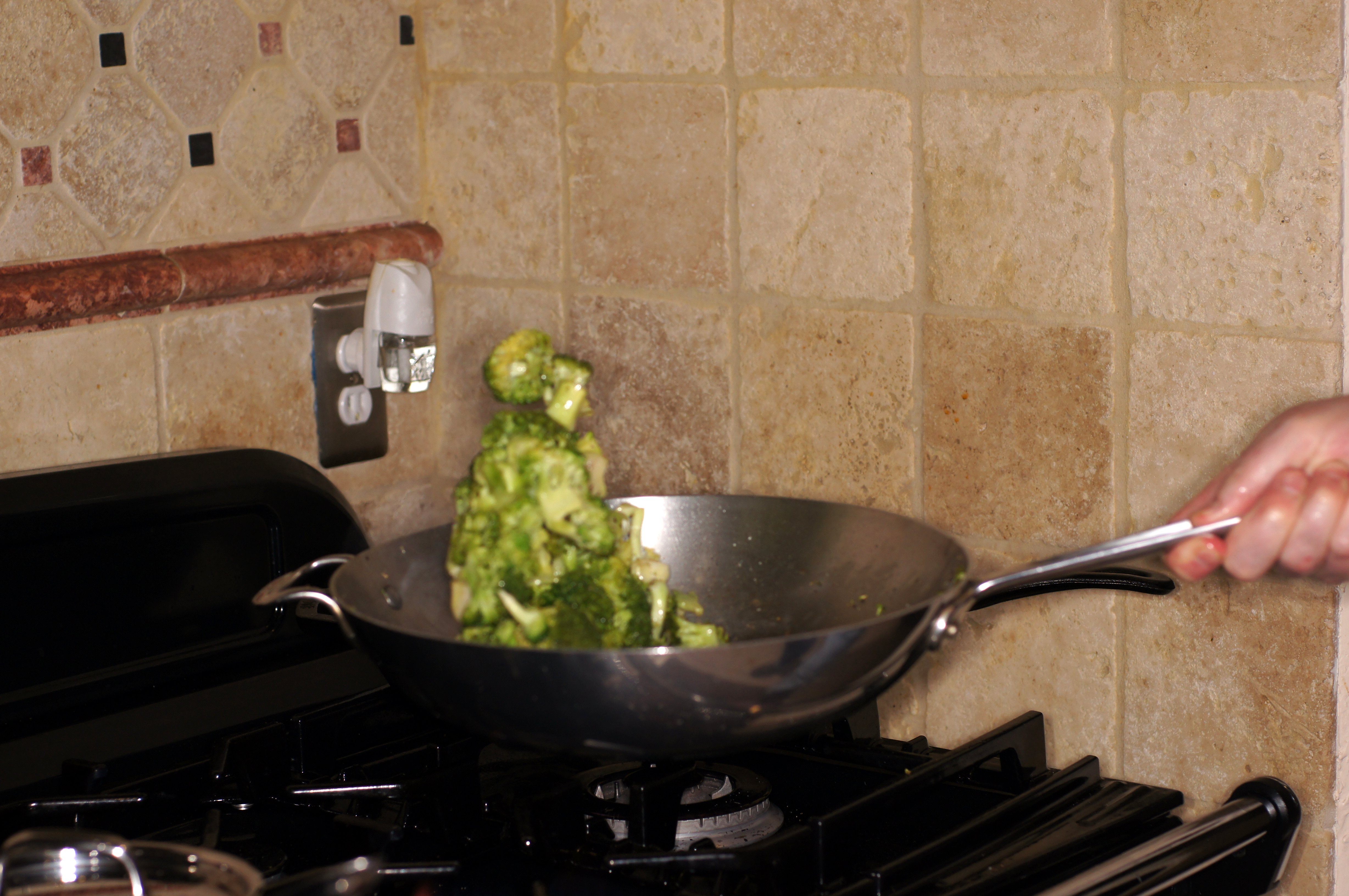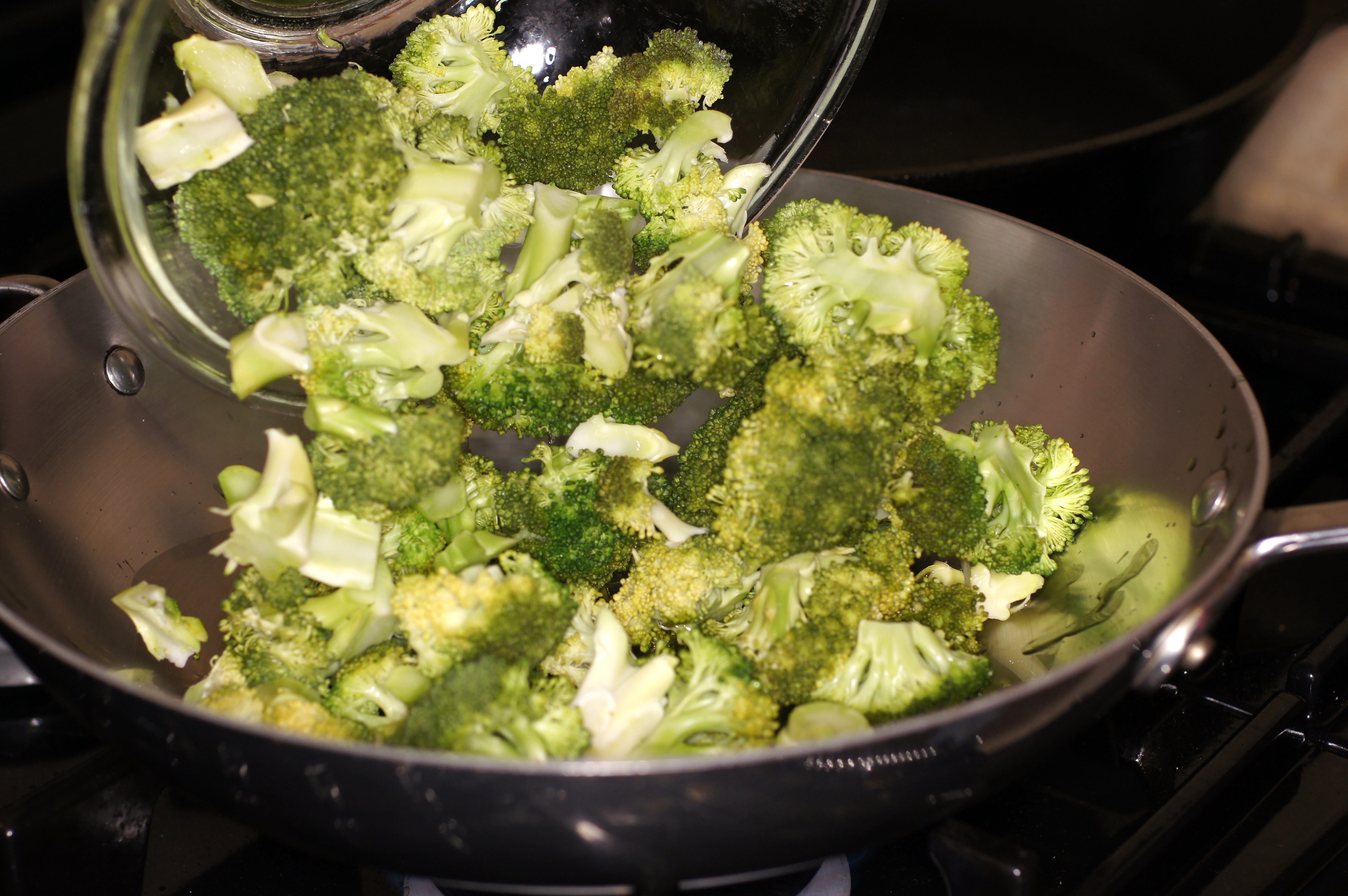 I generally refuse to use microwaves except to heat water or reheat leftovers. Nevertheless, microwaves actually do a very nice job par cooking vegetables. Keeping the plastic wrap on the bowl allows the broccoli to gently steam. If you don’t want to “nuke” your food, then par boil the broccoli and shock to prevent overcooking. Also, if you want to preserve the pretty green color, add 1/2 tsp baking soda to the water. 😀