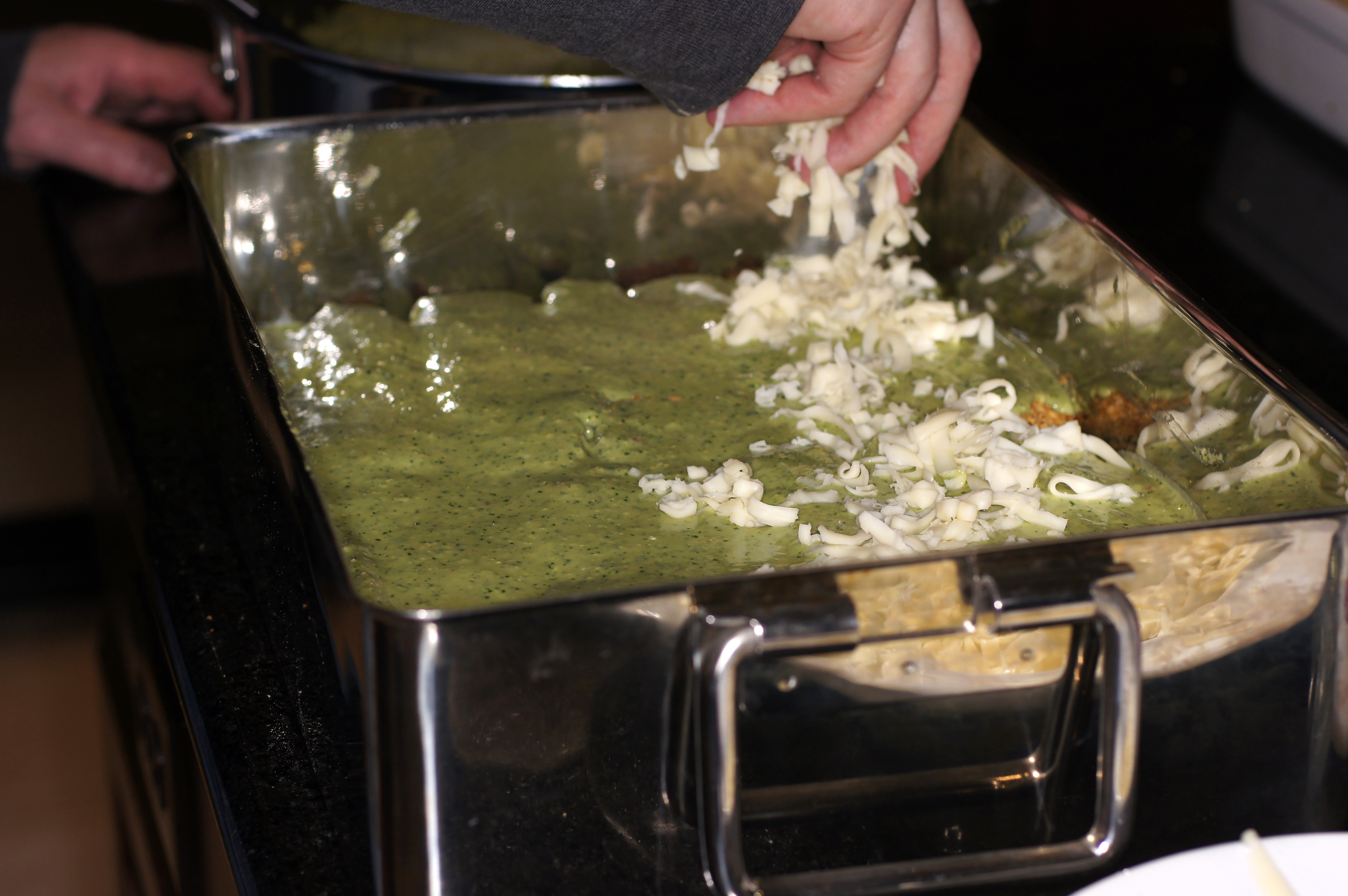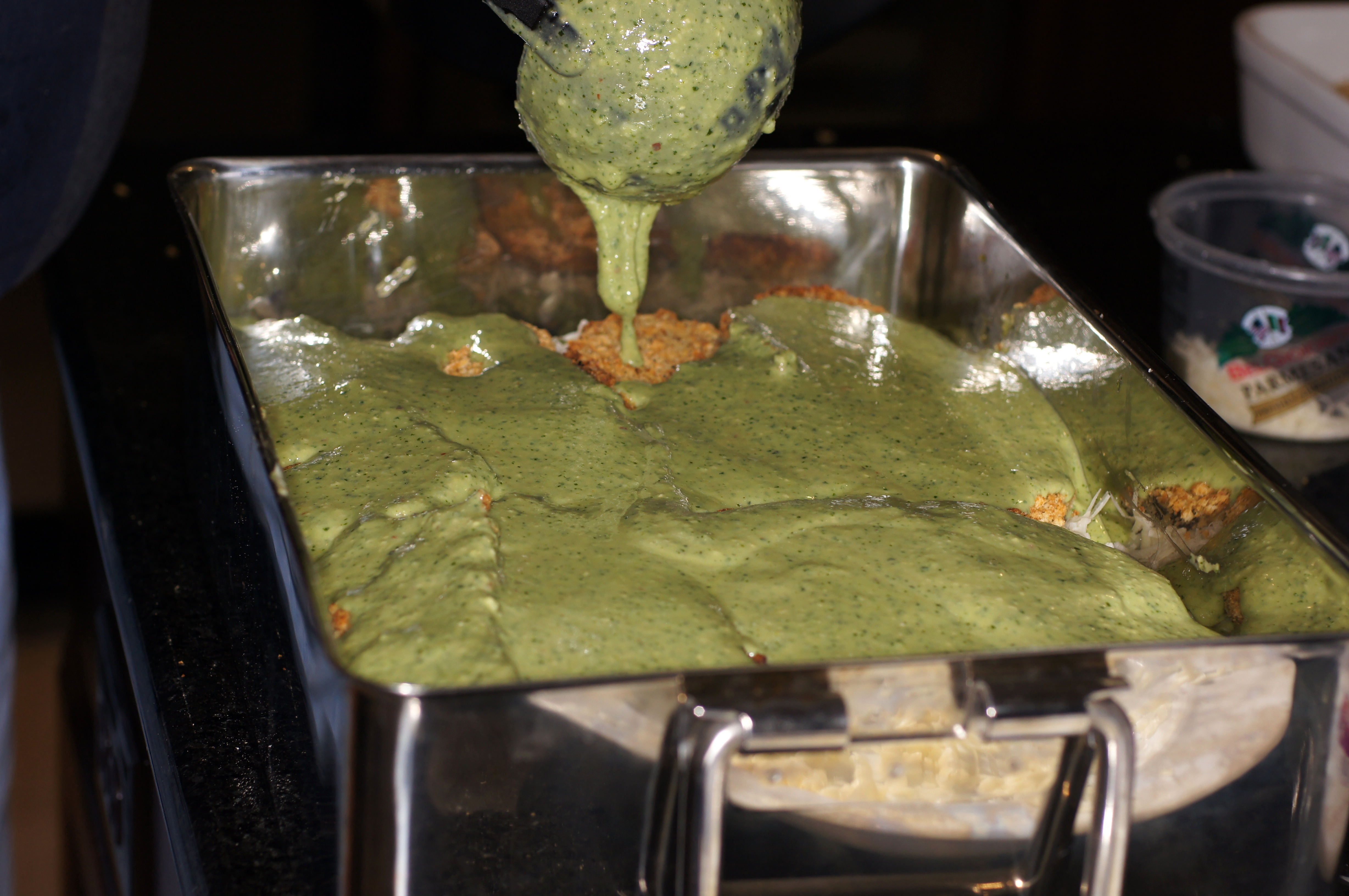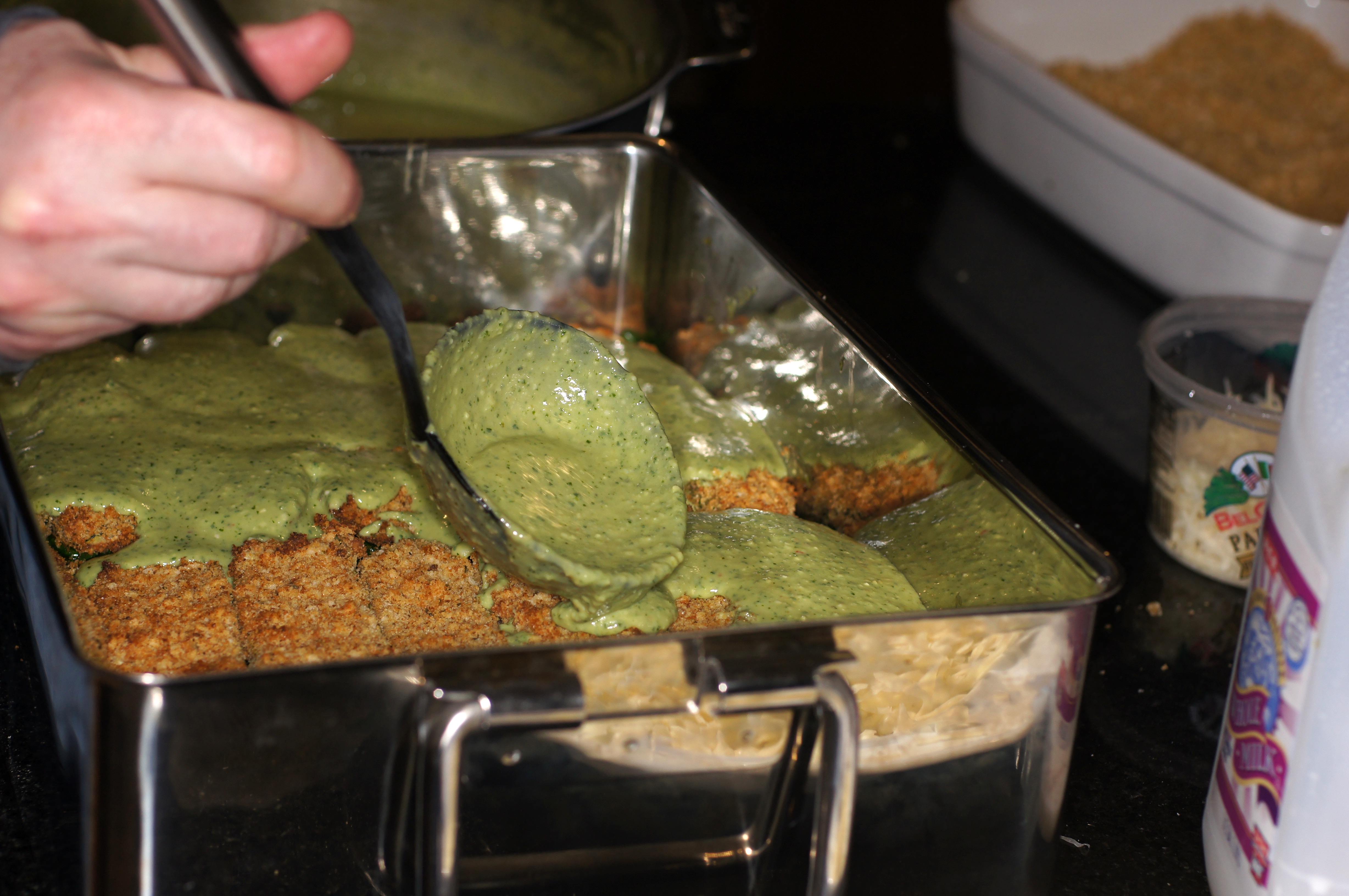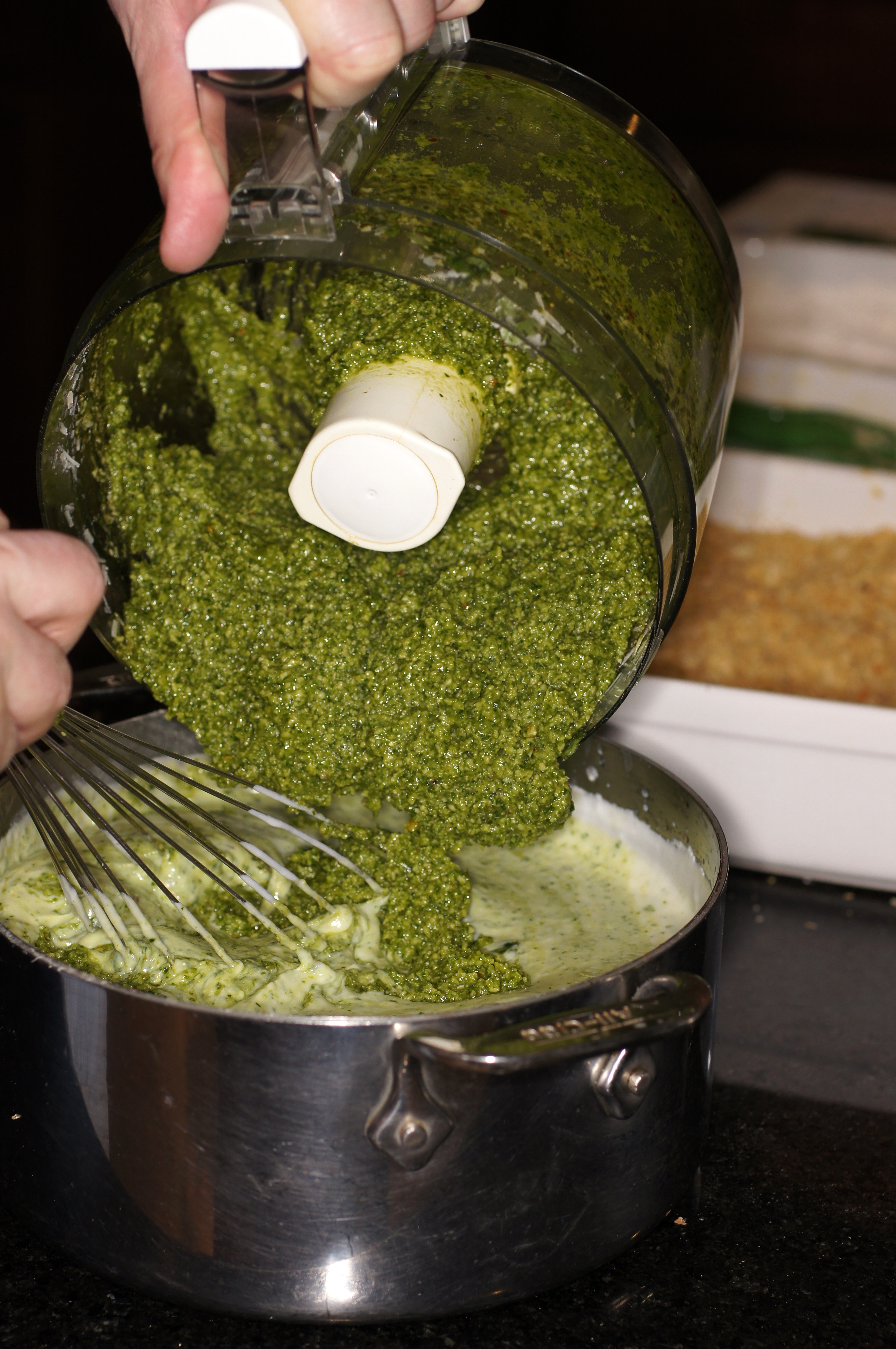 Now combine the pesto with the béchamel sauce, cover and set aside until ready to assemble.