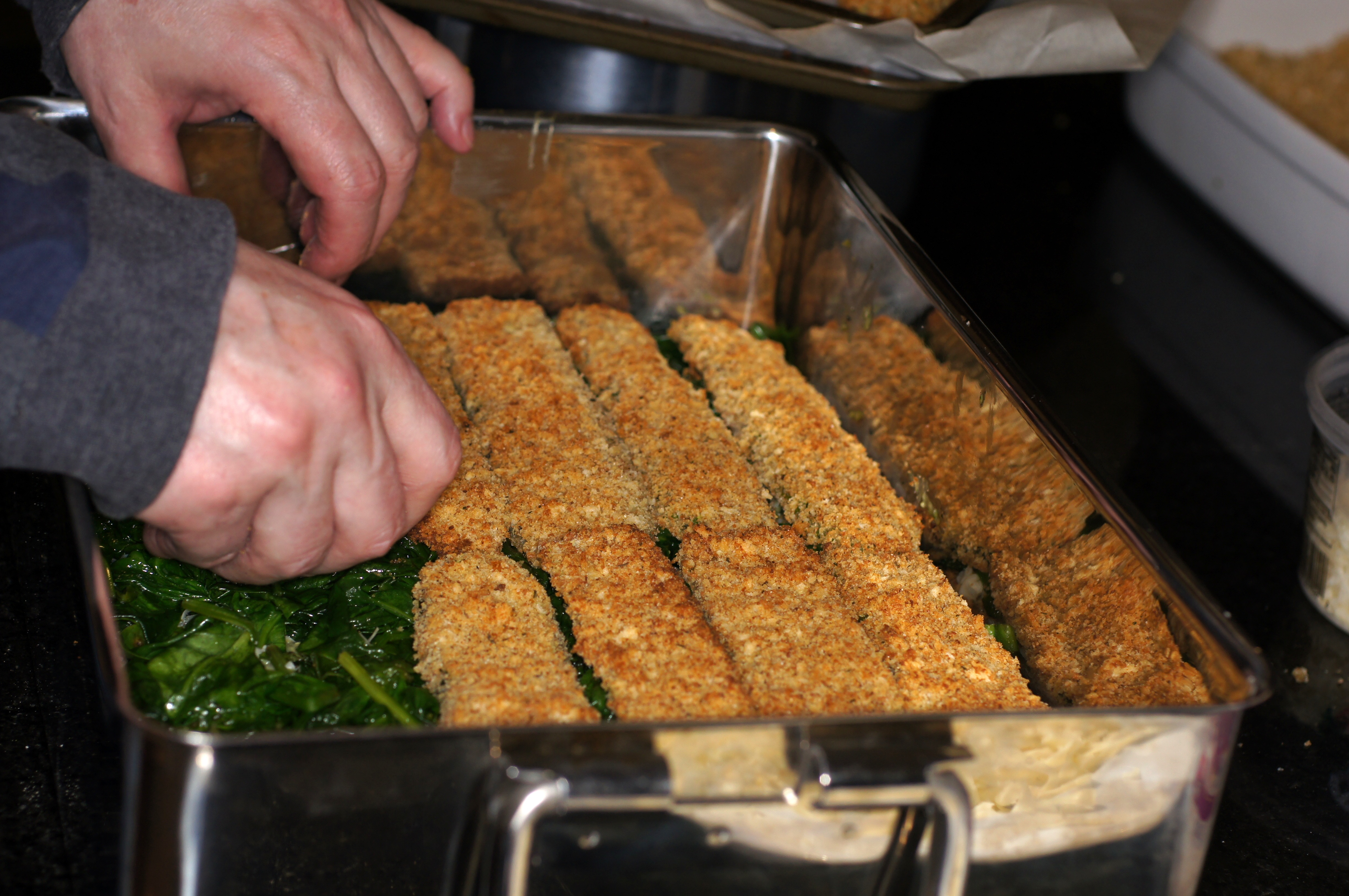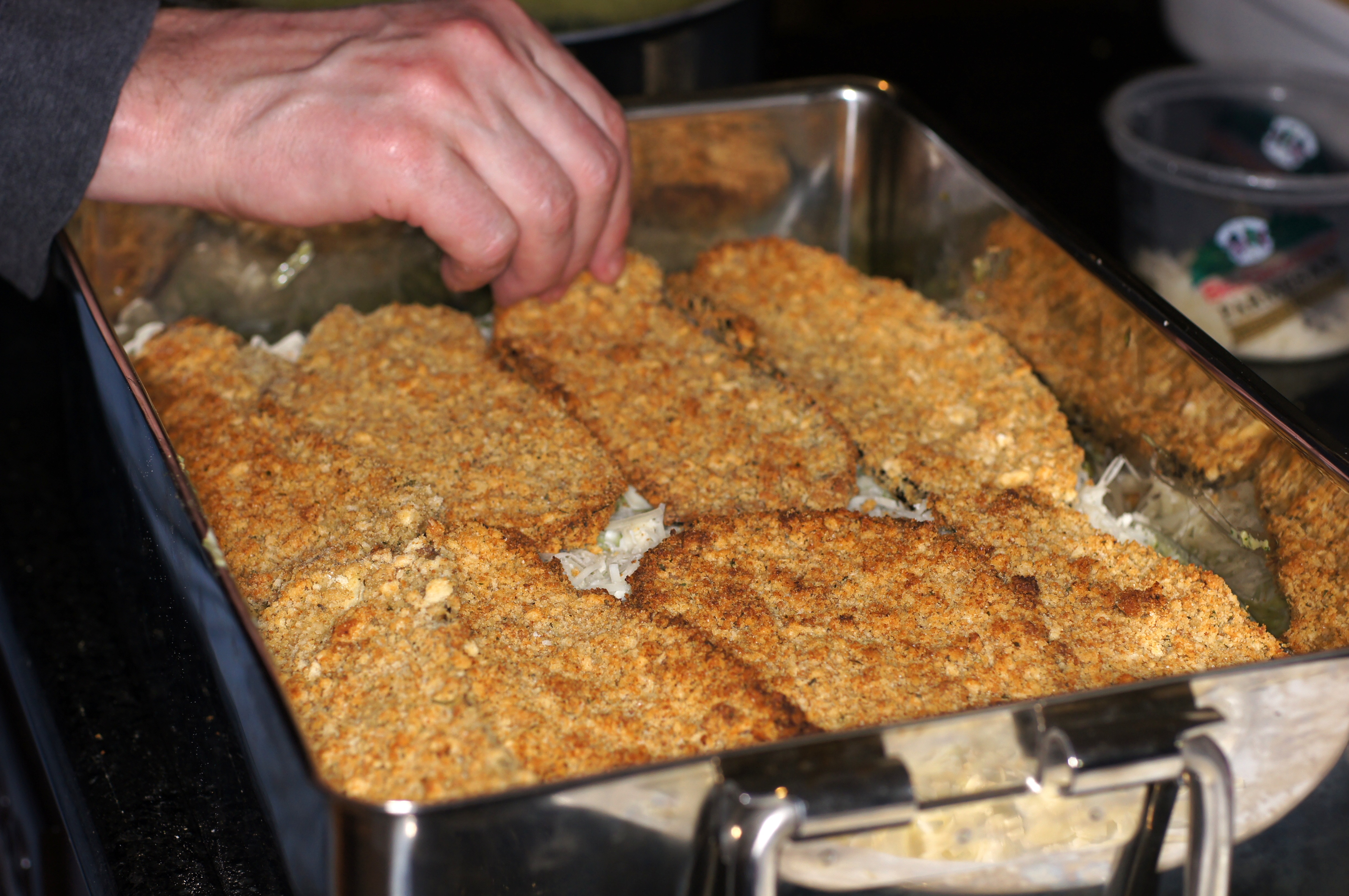 - 5 cups seasoned dry bread crumbs