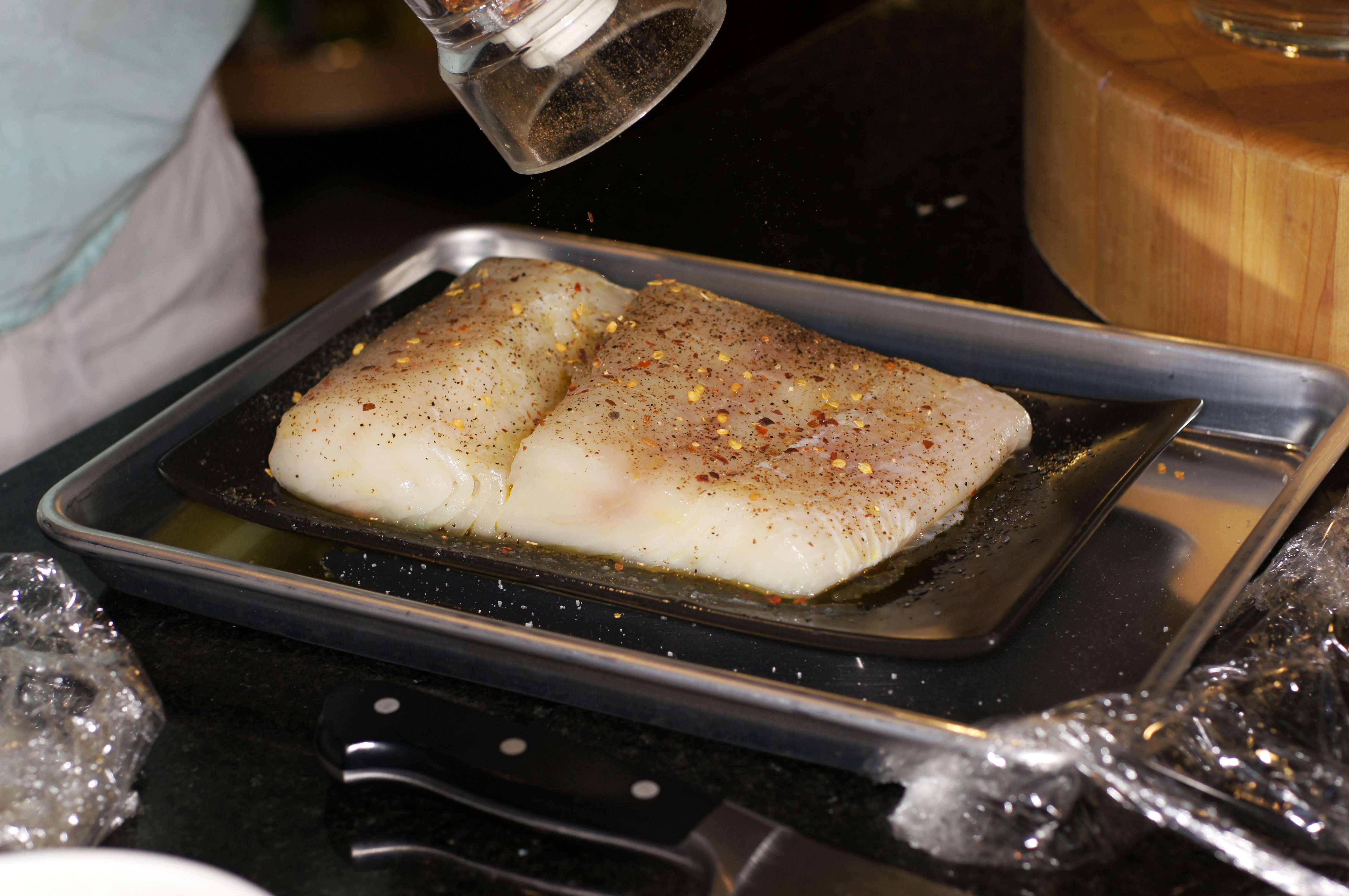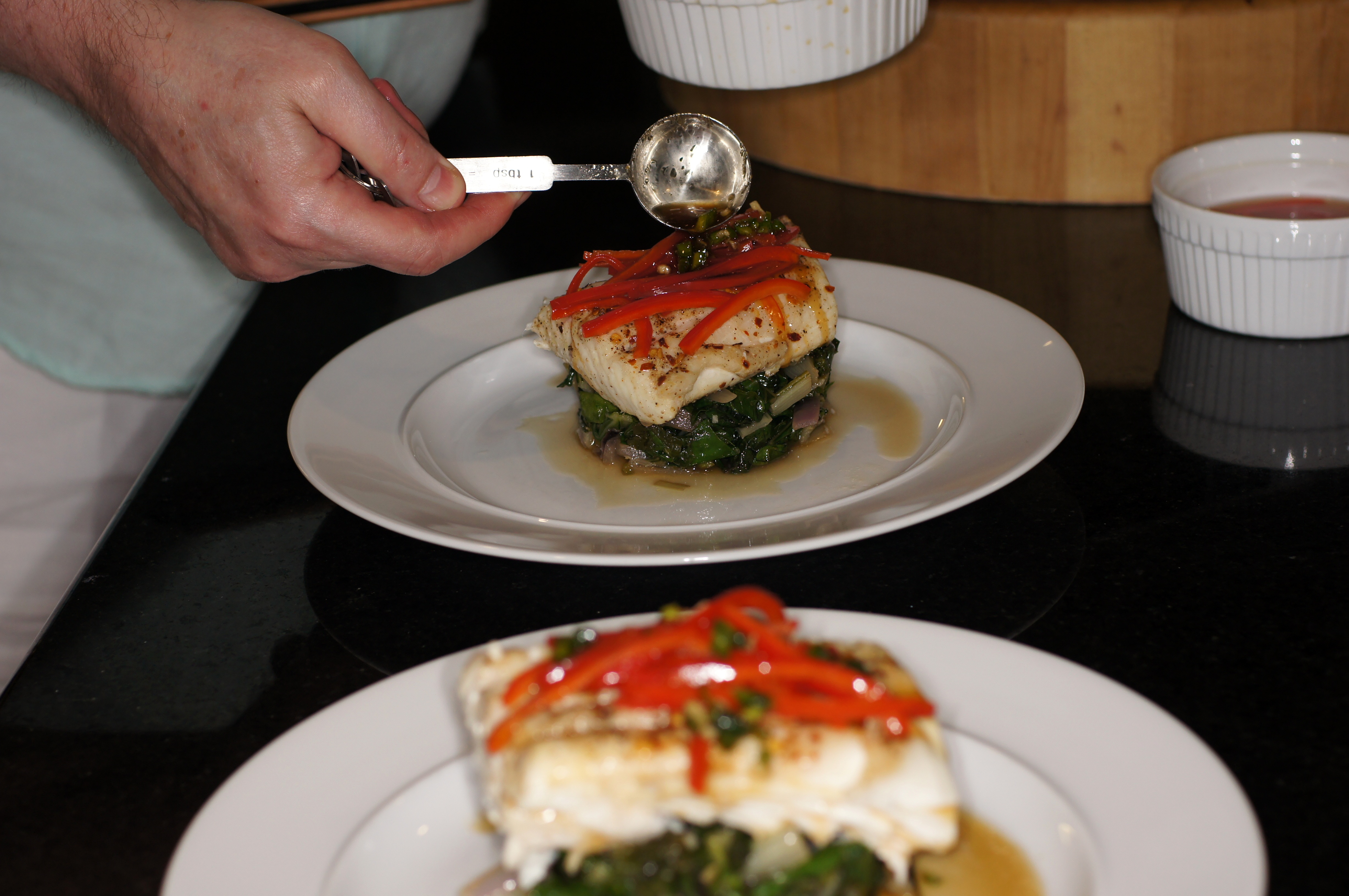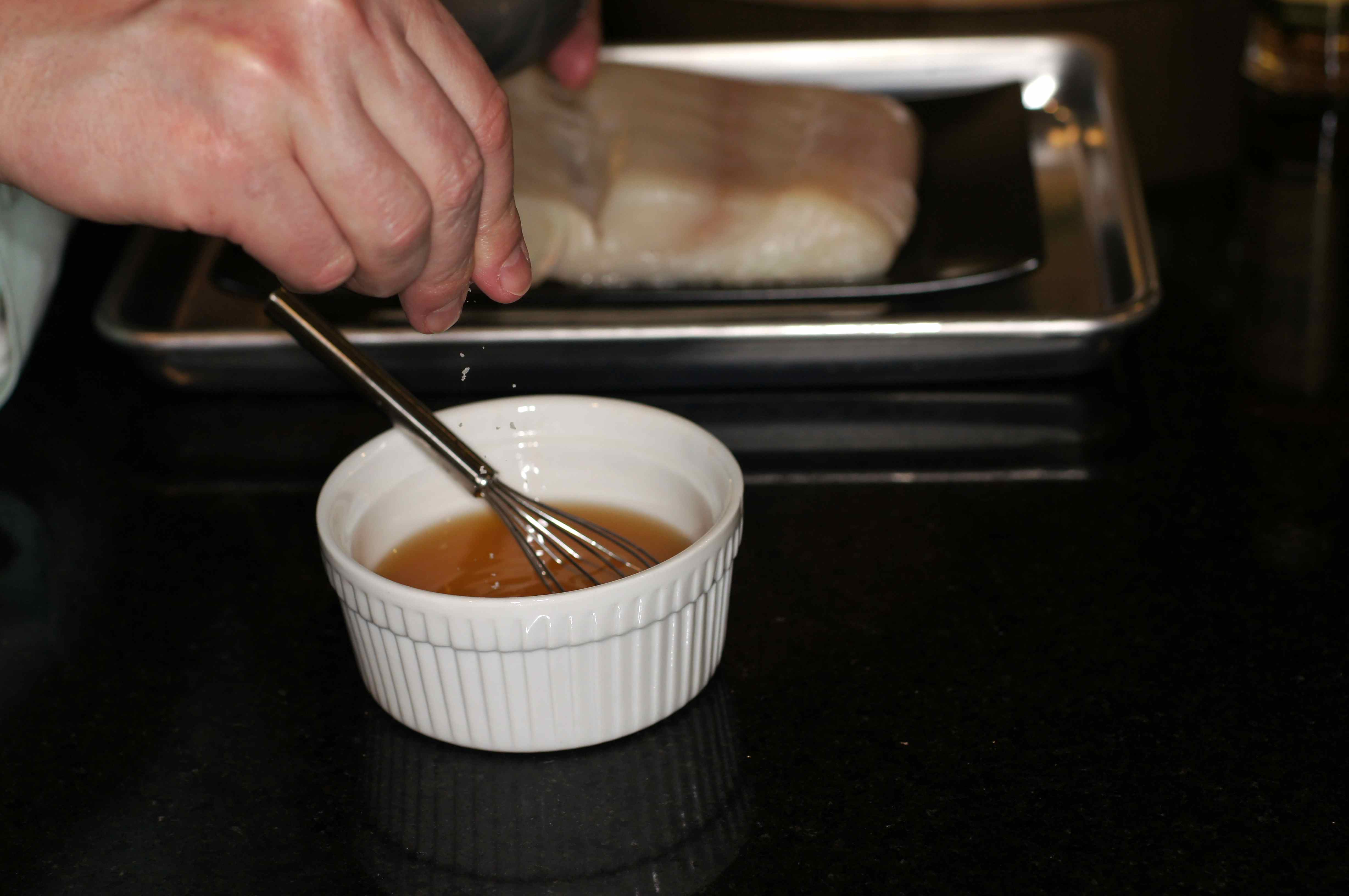 Spoon some of the Thai sauce over the fish, roughly 1 Tbsp.