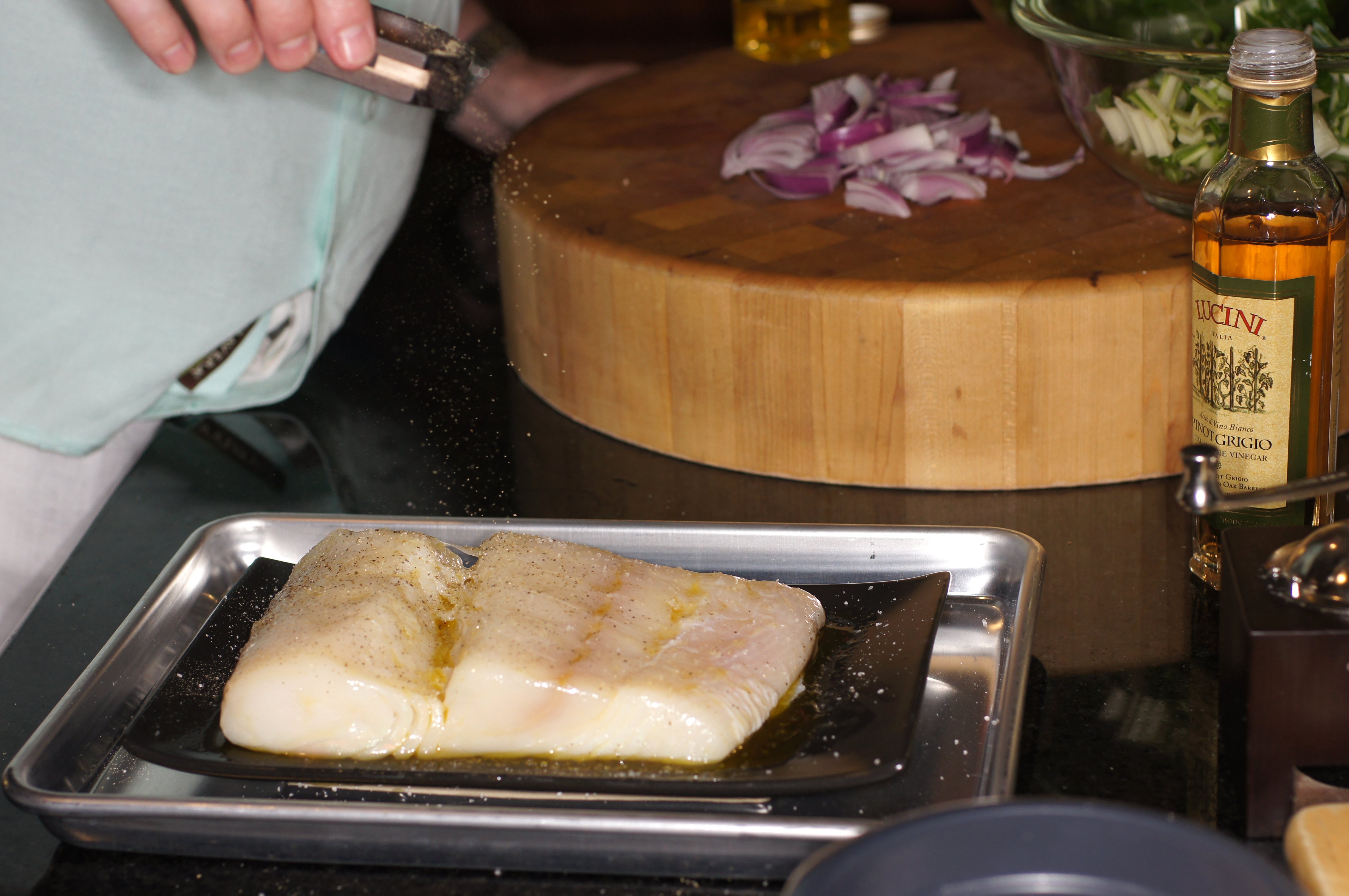 Hi, Alice. 🙂 Thanks for the nice words. Halibut is one of those cold water fishies that are found in the colder waters of both the Atlantic and Pacific oceans. It is the largest of the flatfishes (think flounder) and they weigh, on average, around 25 – 30 pounds. Substitutions include cod, turbot, dogfish, haddock or striped bass but they are definitely not the same. I definitely enjoyed this nice dipping sauce. The next day we used the leftover halibut, cold, atop baby spinach with a vinaigrette made from the dipping sauce and the blood orange olive oil. It was delicious. 🙂