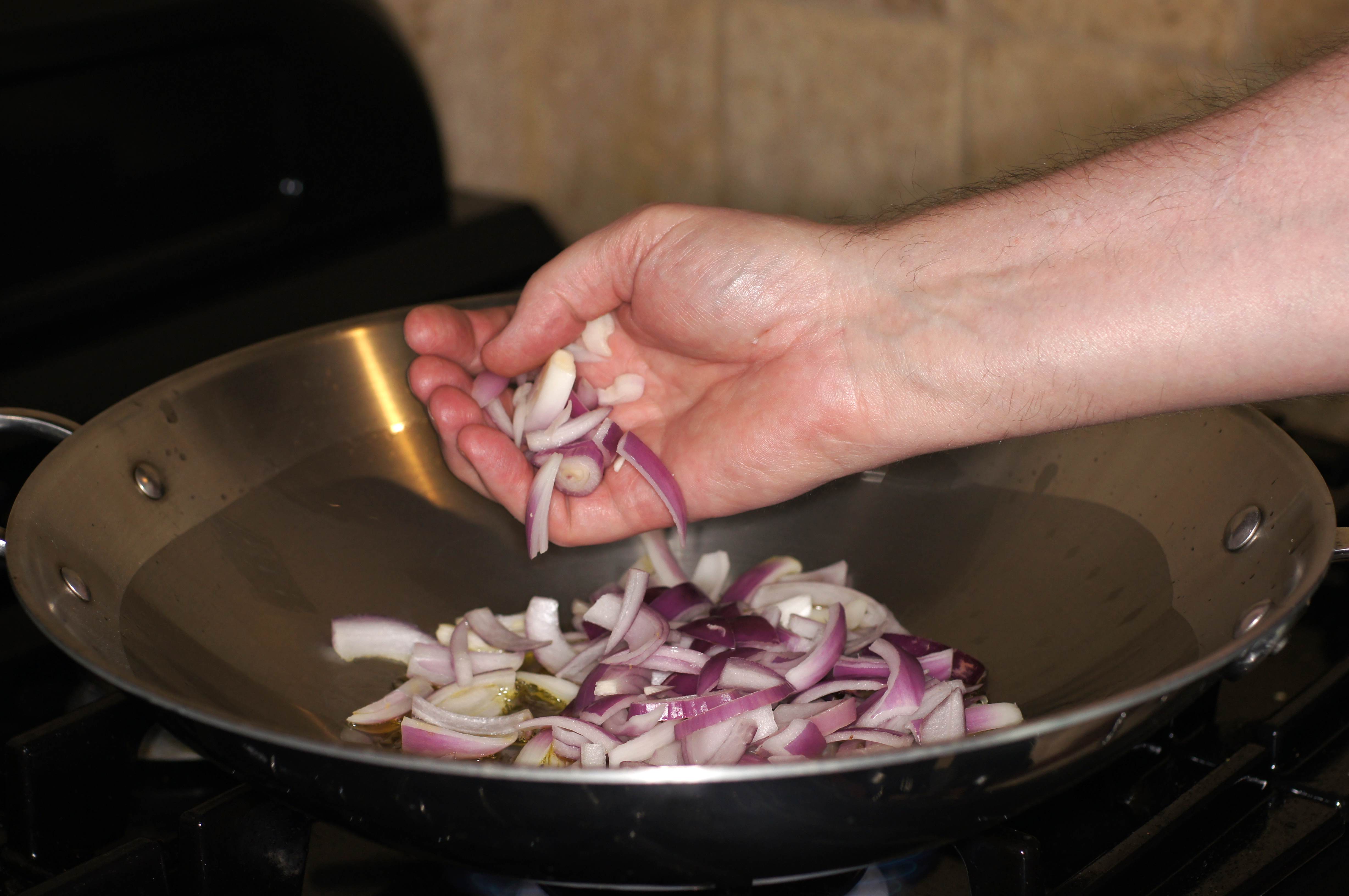 Cook over medium heat until they begin to wilt. Add 2-1/2 Tbsp of the Thai sauce.