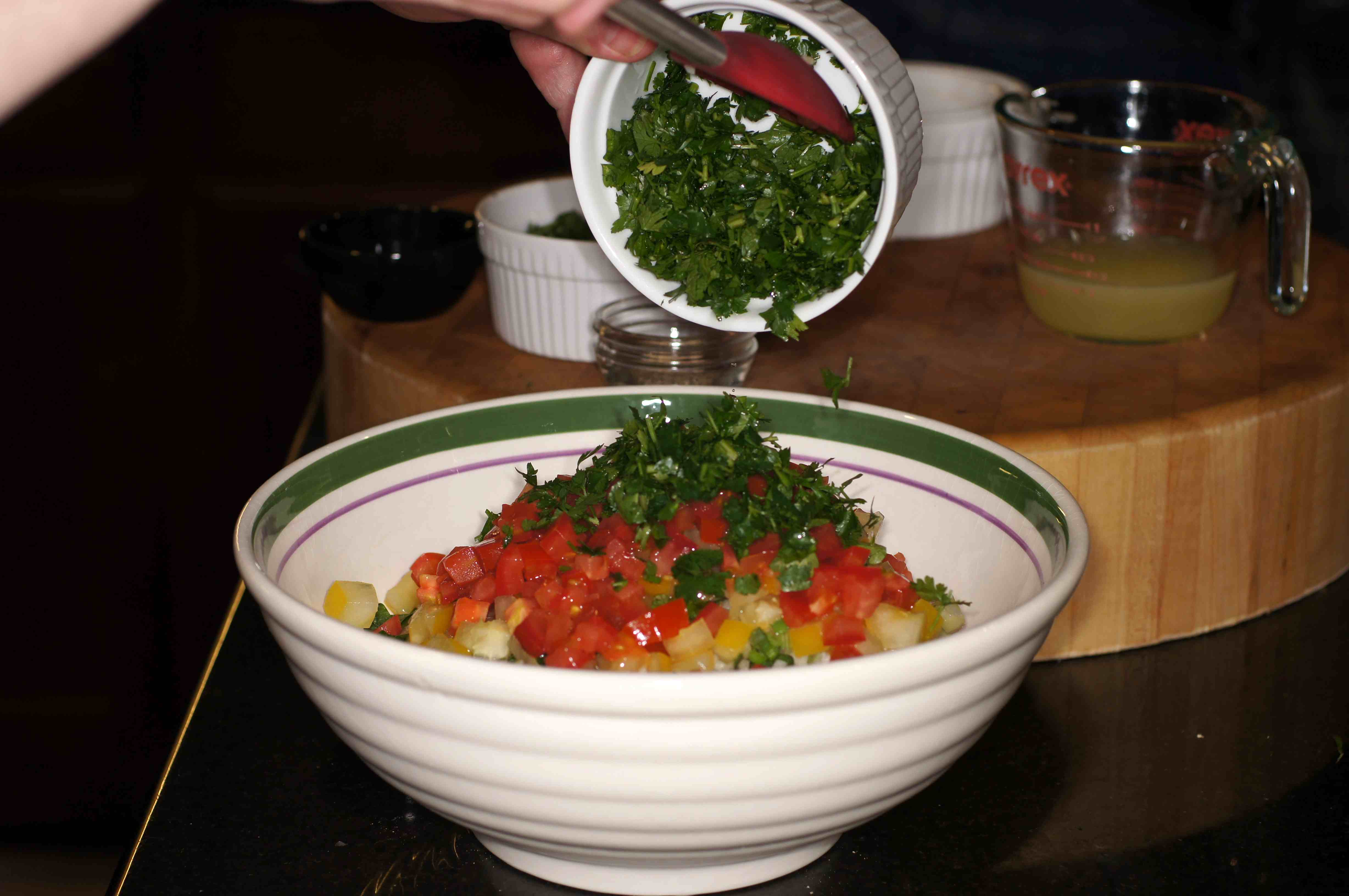 NOTES: Depending upon your application you may want to vary the quantities. For instance, as a salad, you may want more mint and parsley with less bulgur. As a main course salad with meat, you may want to add a little minced garlic. It is very versatile and healthy, to boot. 🙂