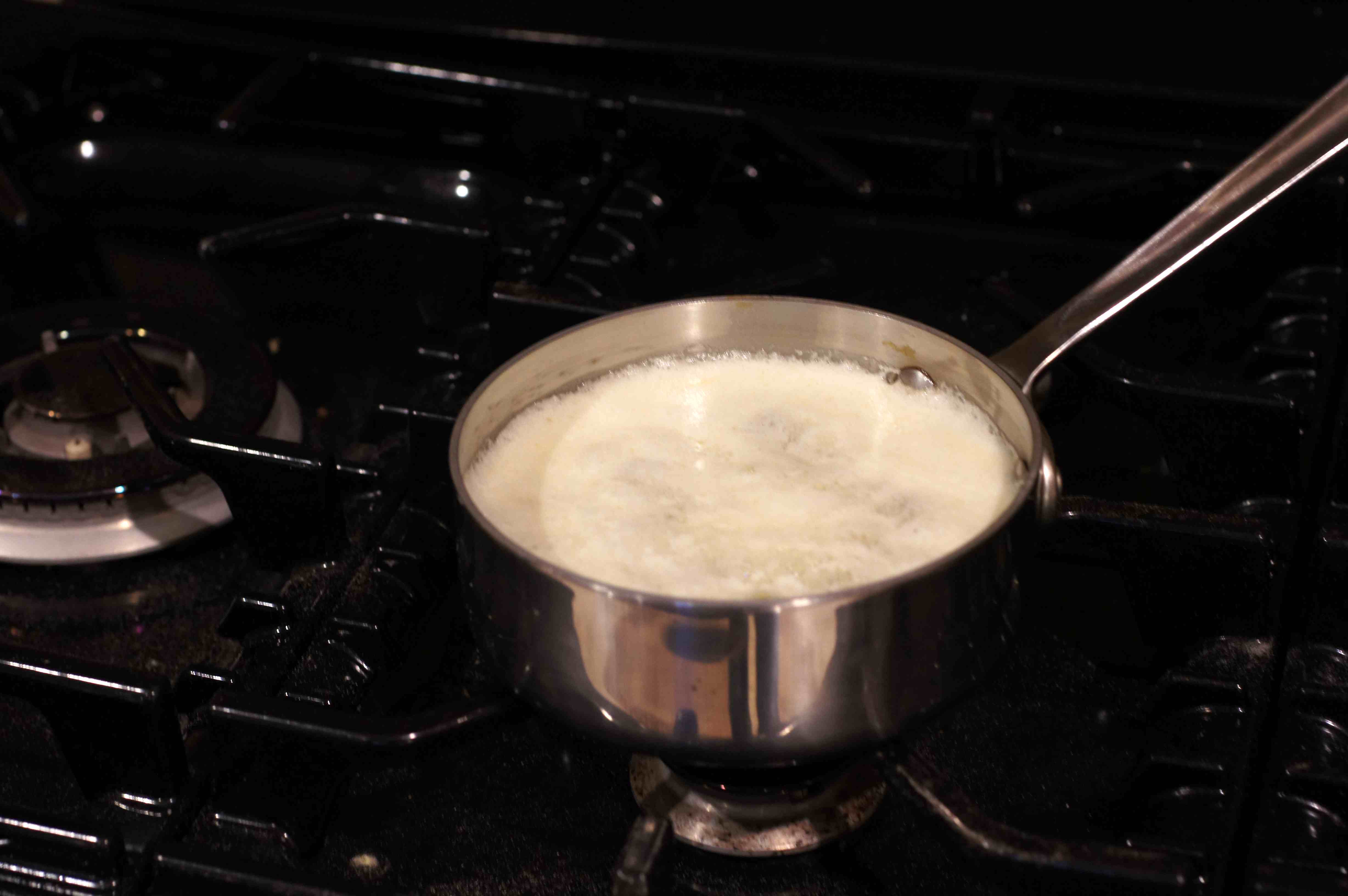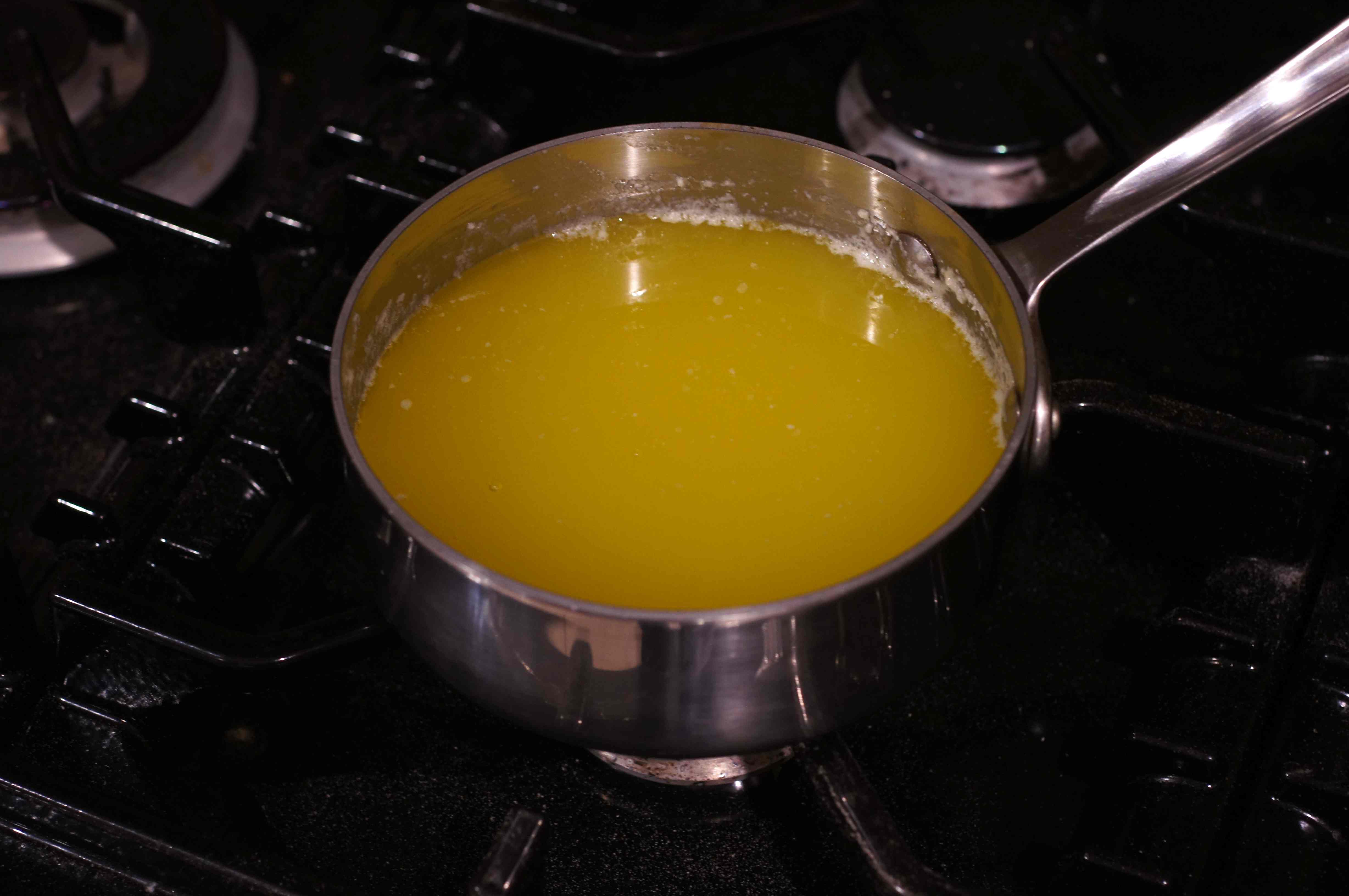 First things, first – clarify the butter. I don’t make clarified butter very often but I always enjoy it when I do because it has so many uses. All that is involved in making clarified butter is melting the butter and separating the butter fat from the milk solids. So, place 1 lb. of butter in a sauce pan over medium-low heat.