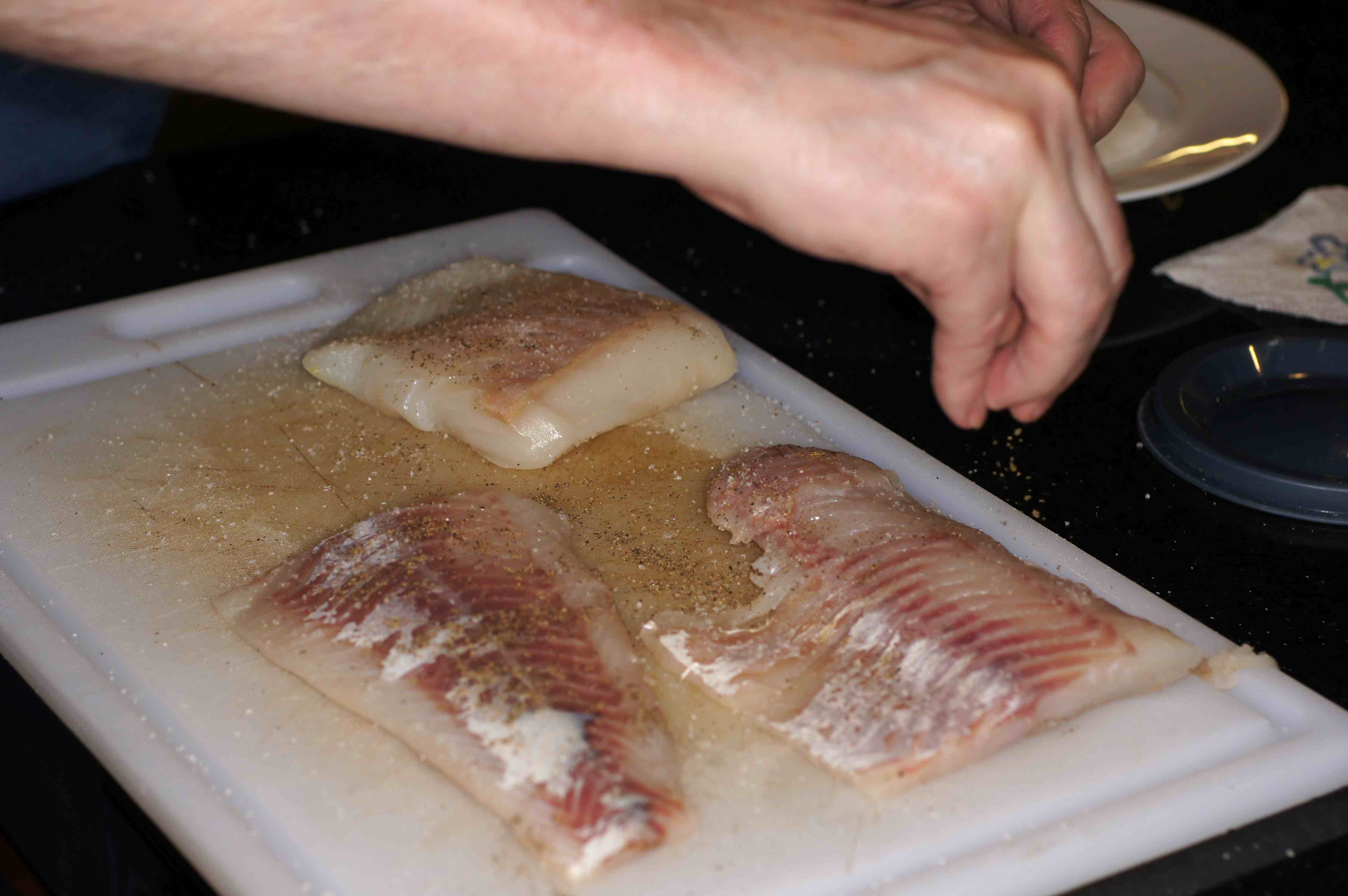 Season the walleye with salt and pepper on both sides.