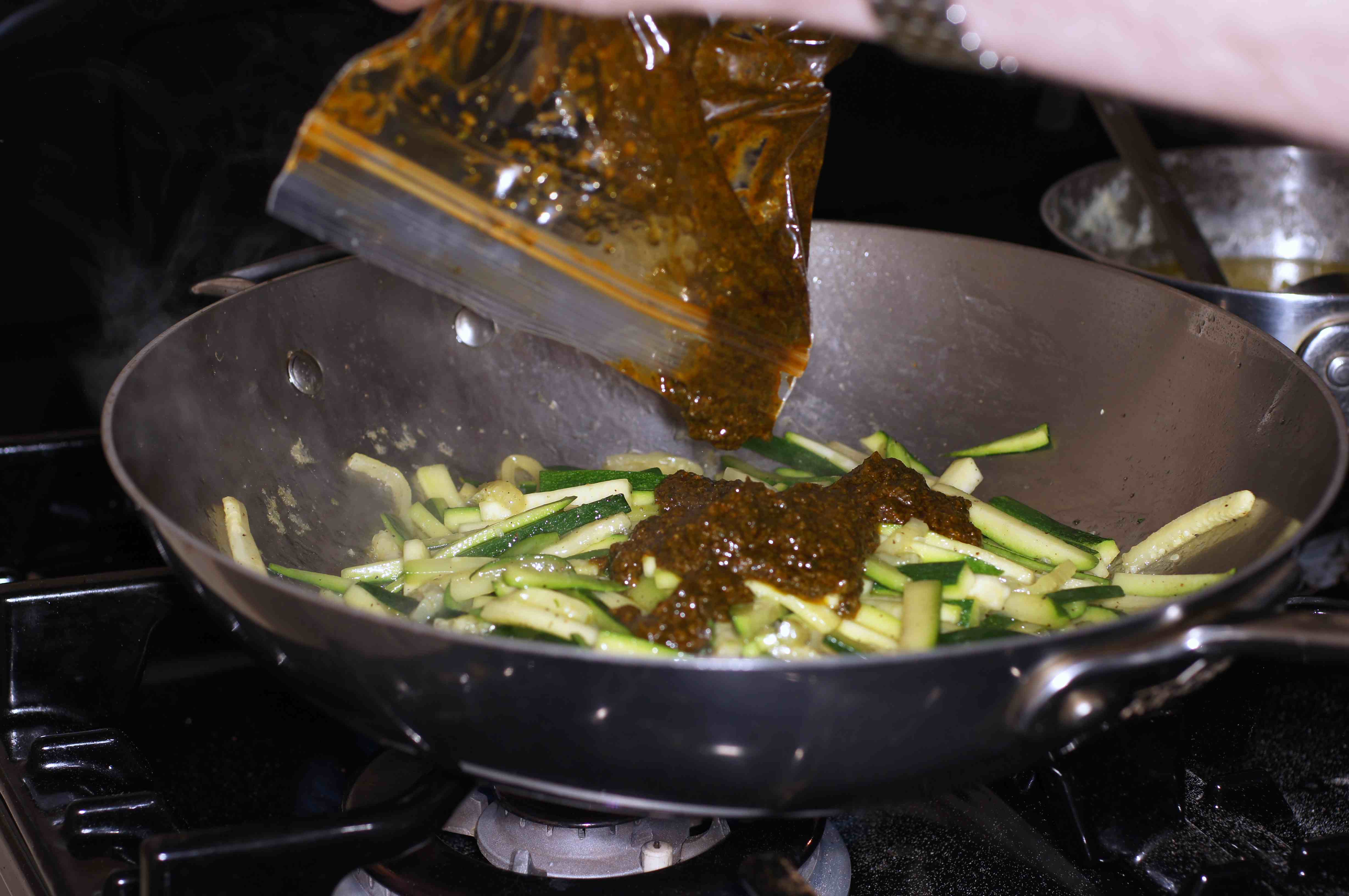 Sauté zucchini for 3 minutes and add the charmoula.