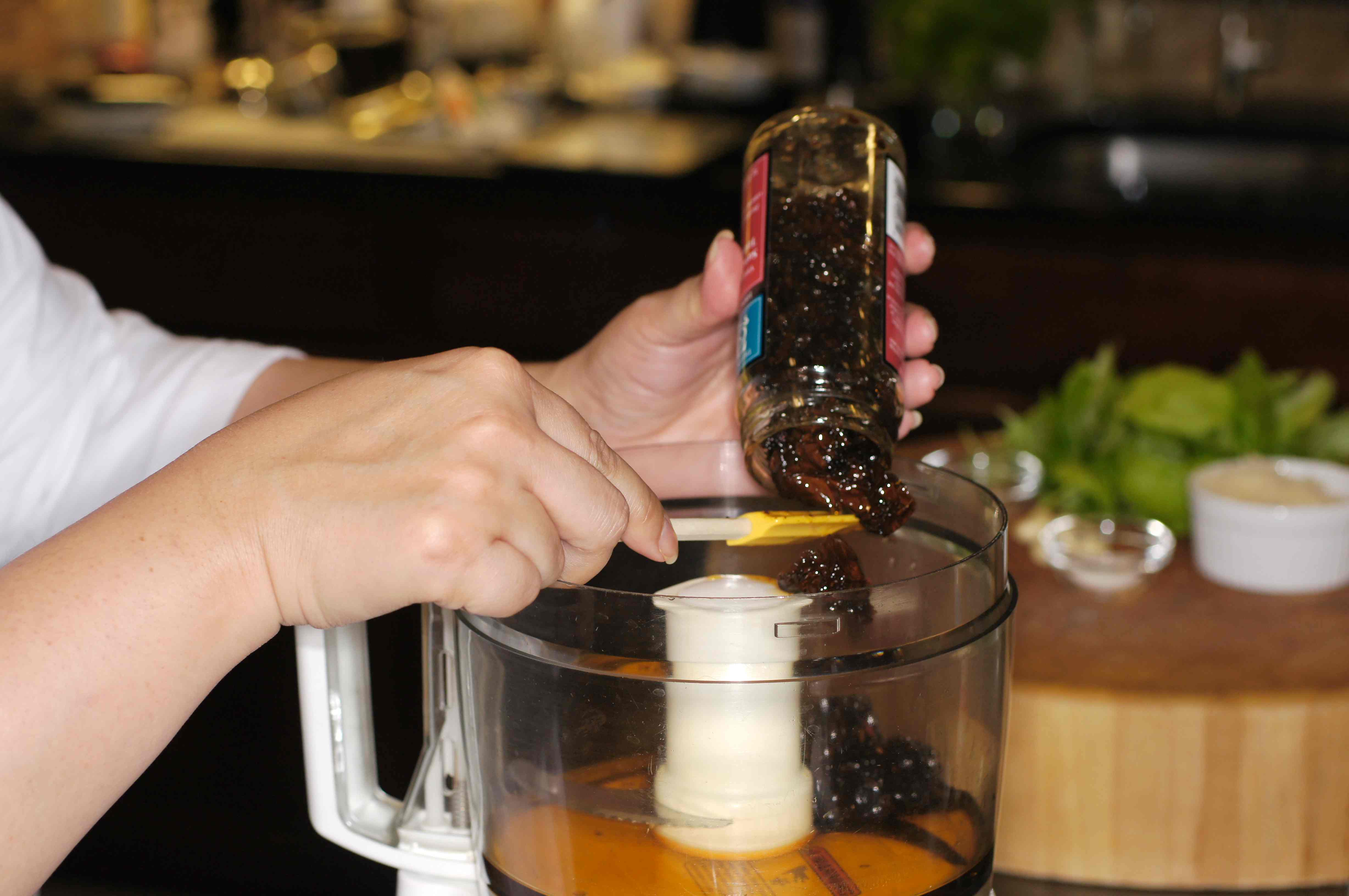 Pour the jar of sun-dried tomatoes AND accompanying oil into a food processor.