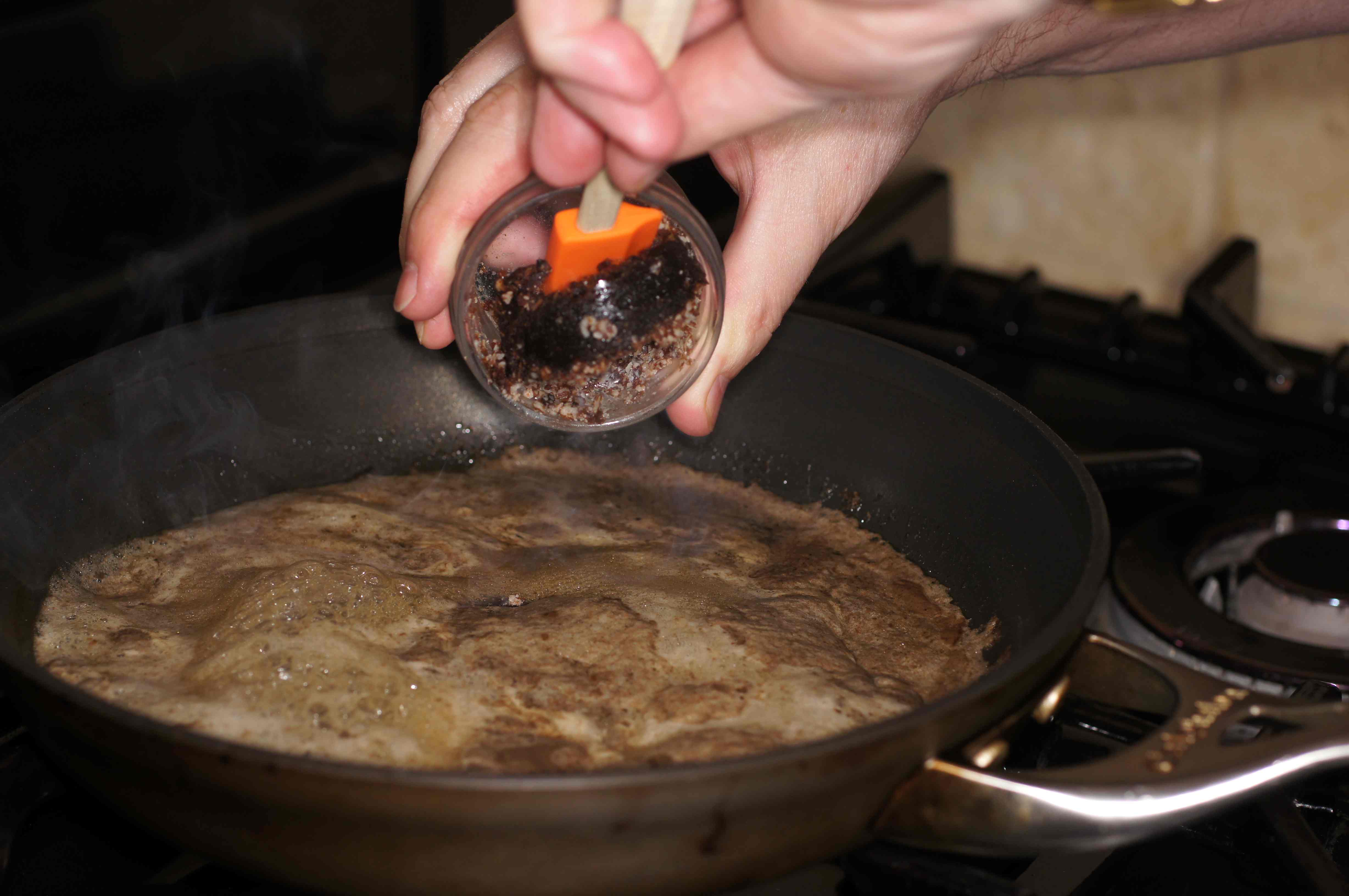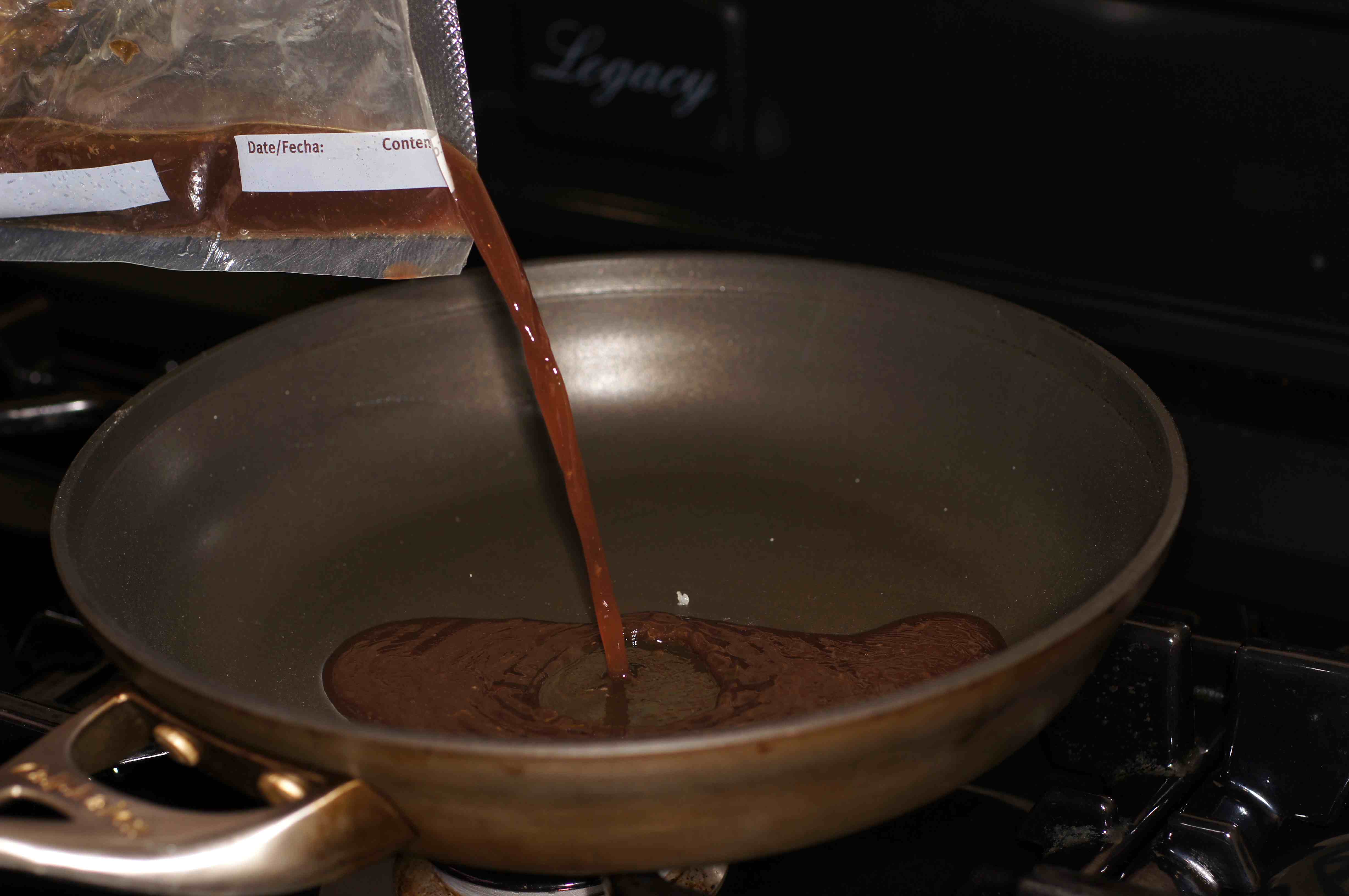 I also had some leftover demi-glace from Knothead’s birthday, so I added it to the juices, as well.