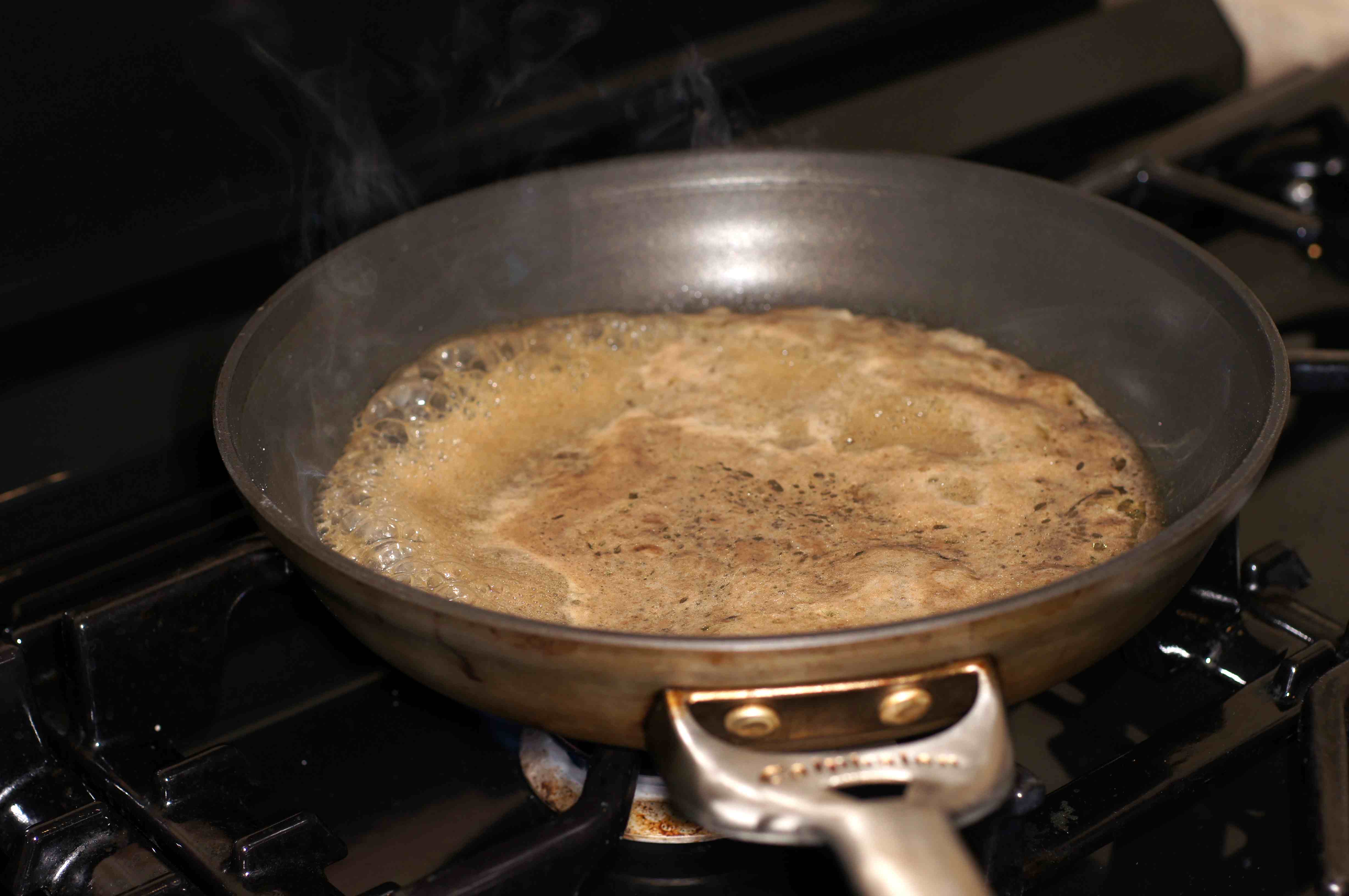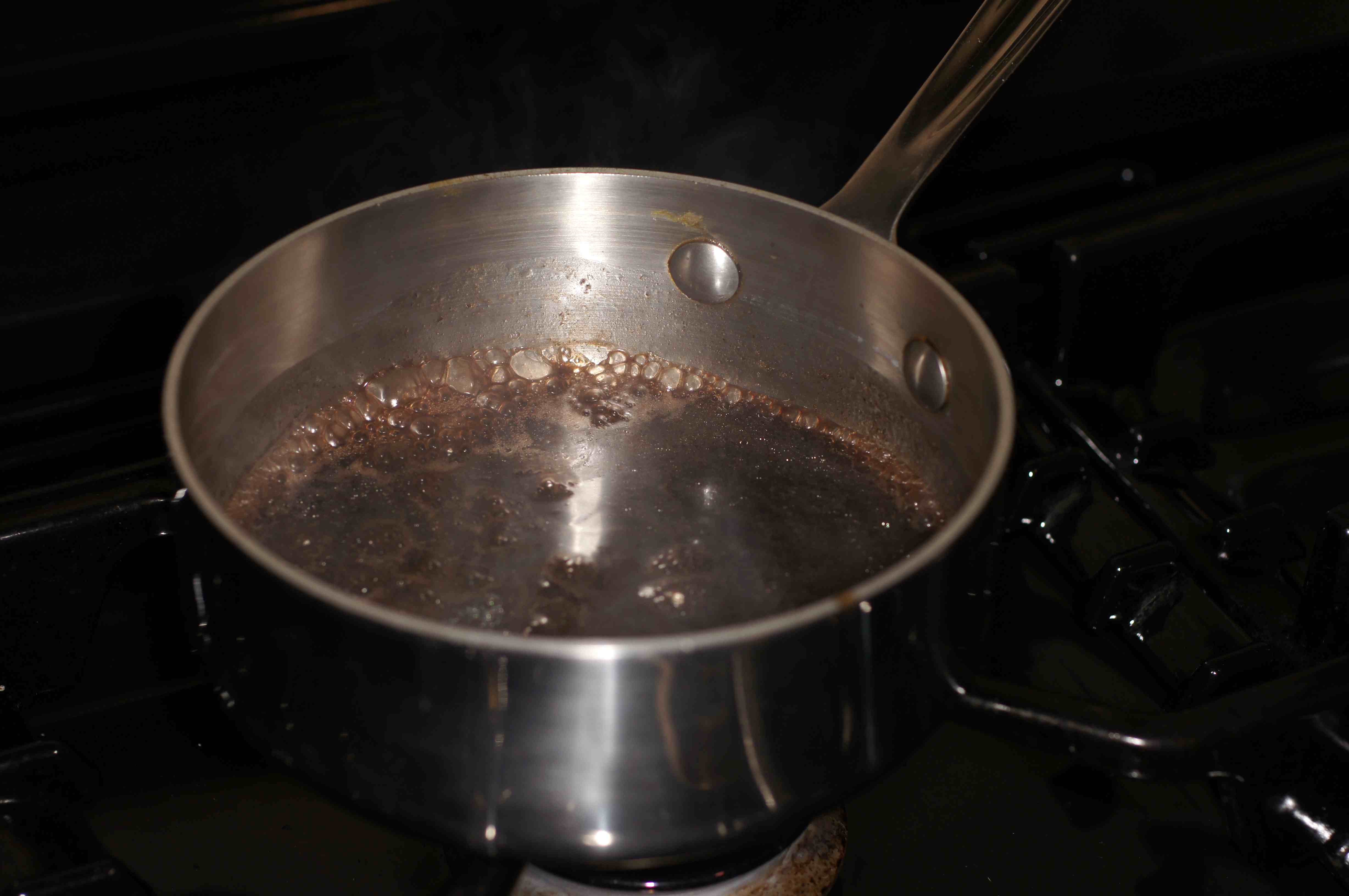 and bring to a boil. Because the lamb has cooked at such a low temperature, the lamb juices are full of denatured protein, mostly comprising the same proteins that make up egg whites. They will form a scum on top of the liquid that, if not removed, will affect the smooth mouthfeel of the sauce because it has a grainy texture. Boiling the juices causes the proteins to cook, form a scum and float to the top so they can be removed.