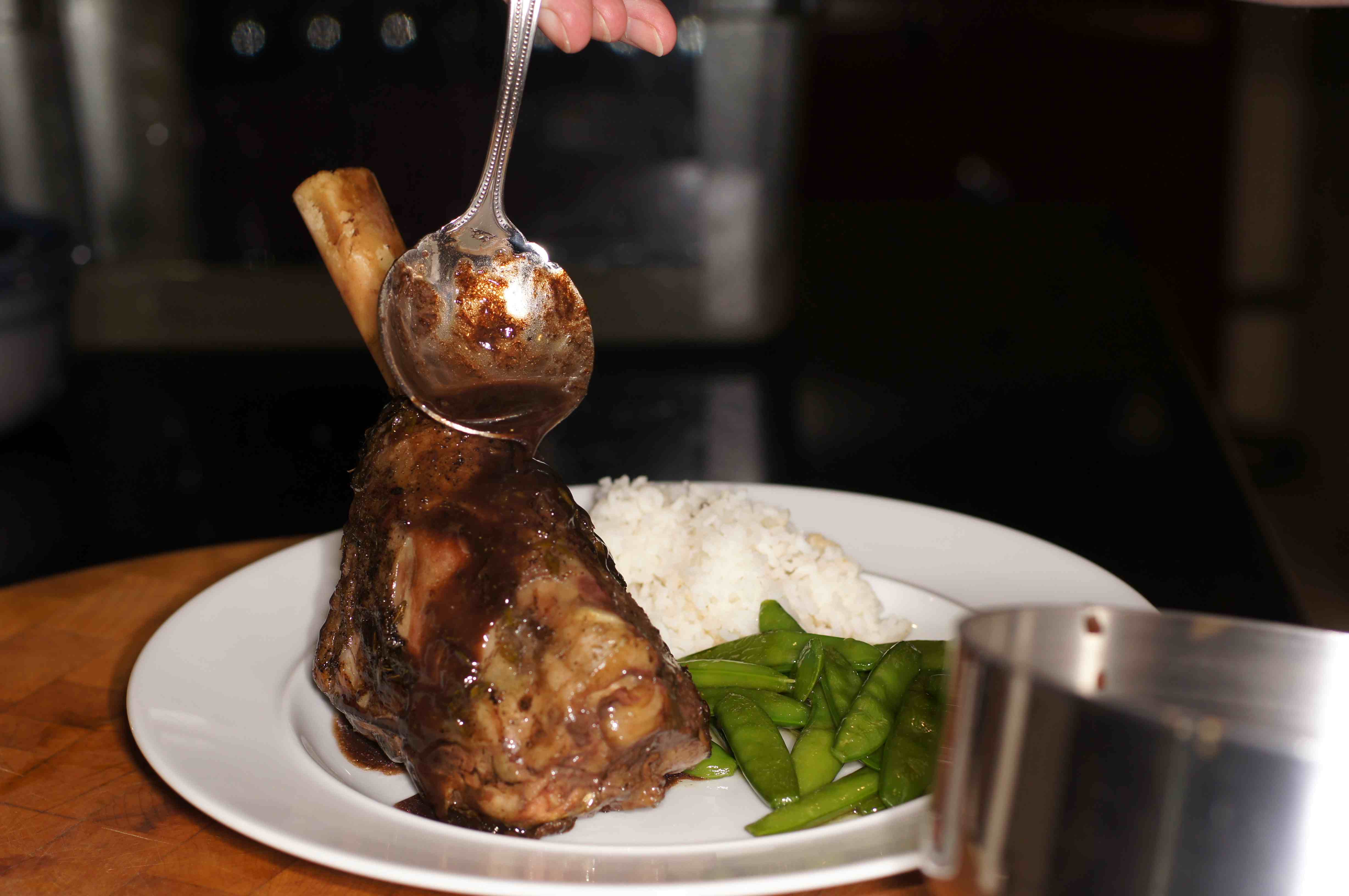 Just made two rather large lamb shanks for the wife and me following your directions pretty exactly (except I used a torch at the end). Fantastic! Served with spinach and fresh white corn. Only a fork was needed, and not necessarily a sharp one. Many thanks Richard!