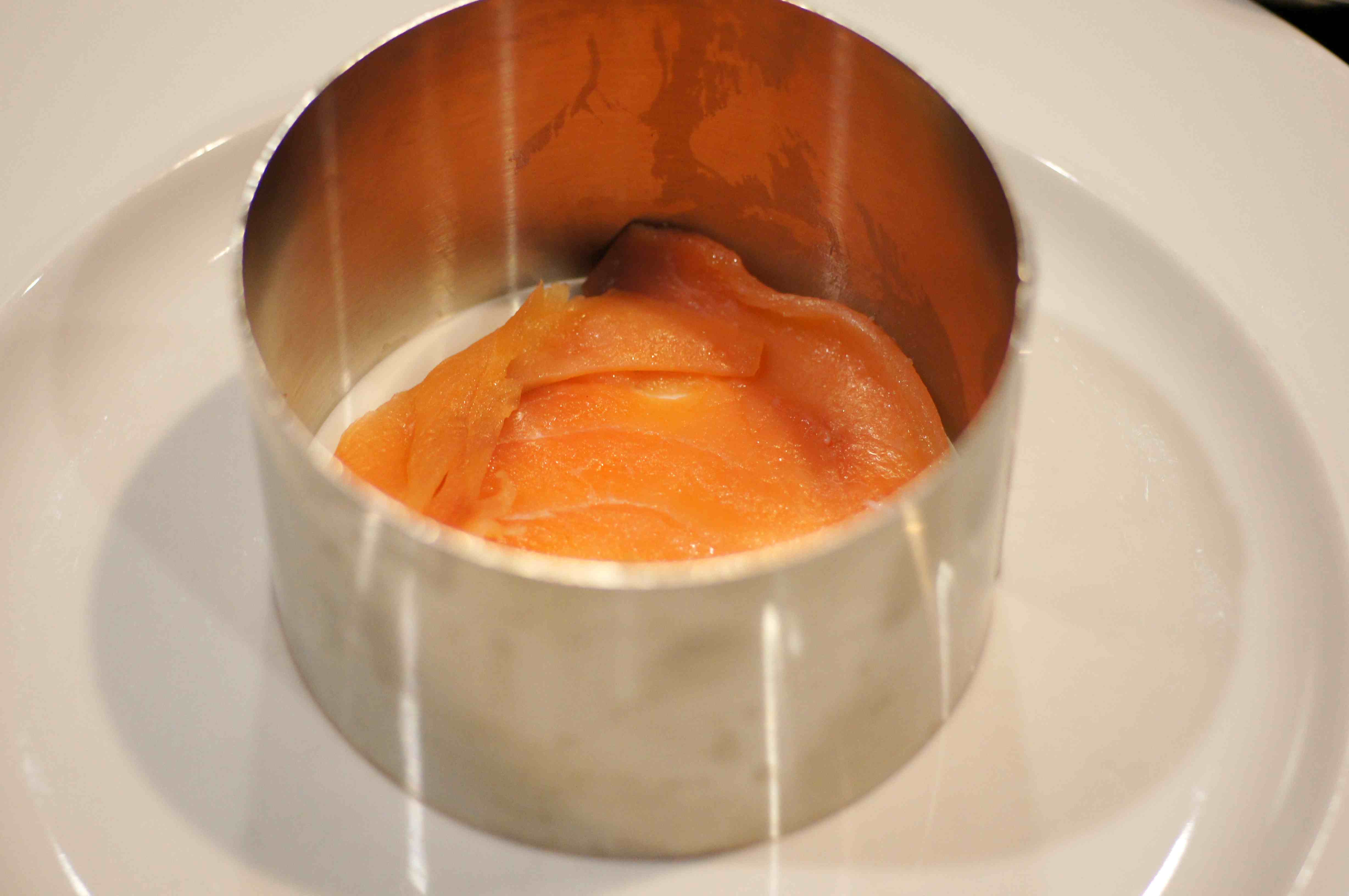 Place the salmon into a 3-1/2 inch ring mold.