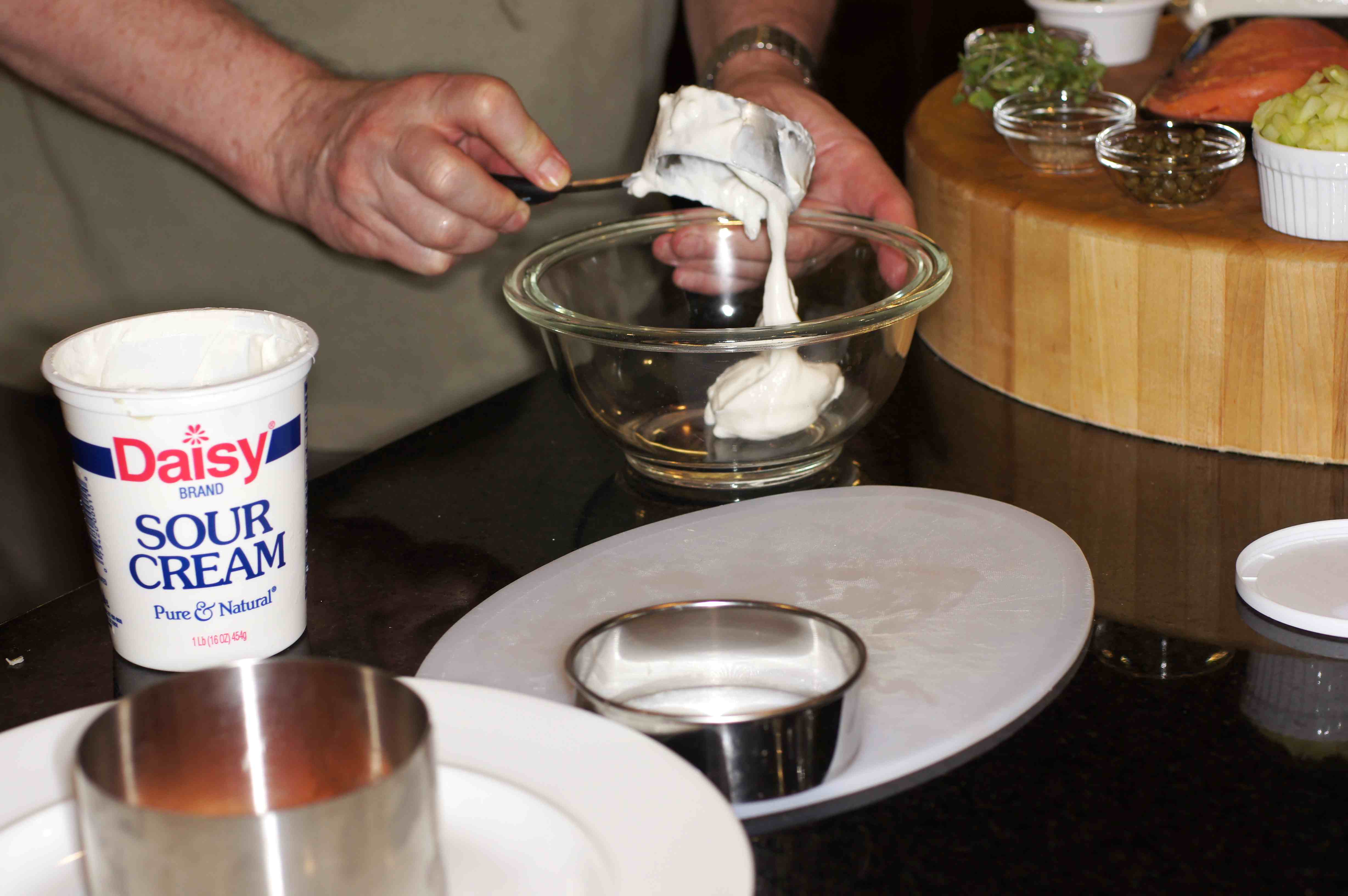 In a small mixing bowl, add the sour cream.
