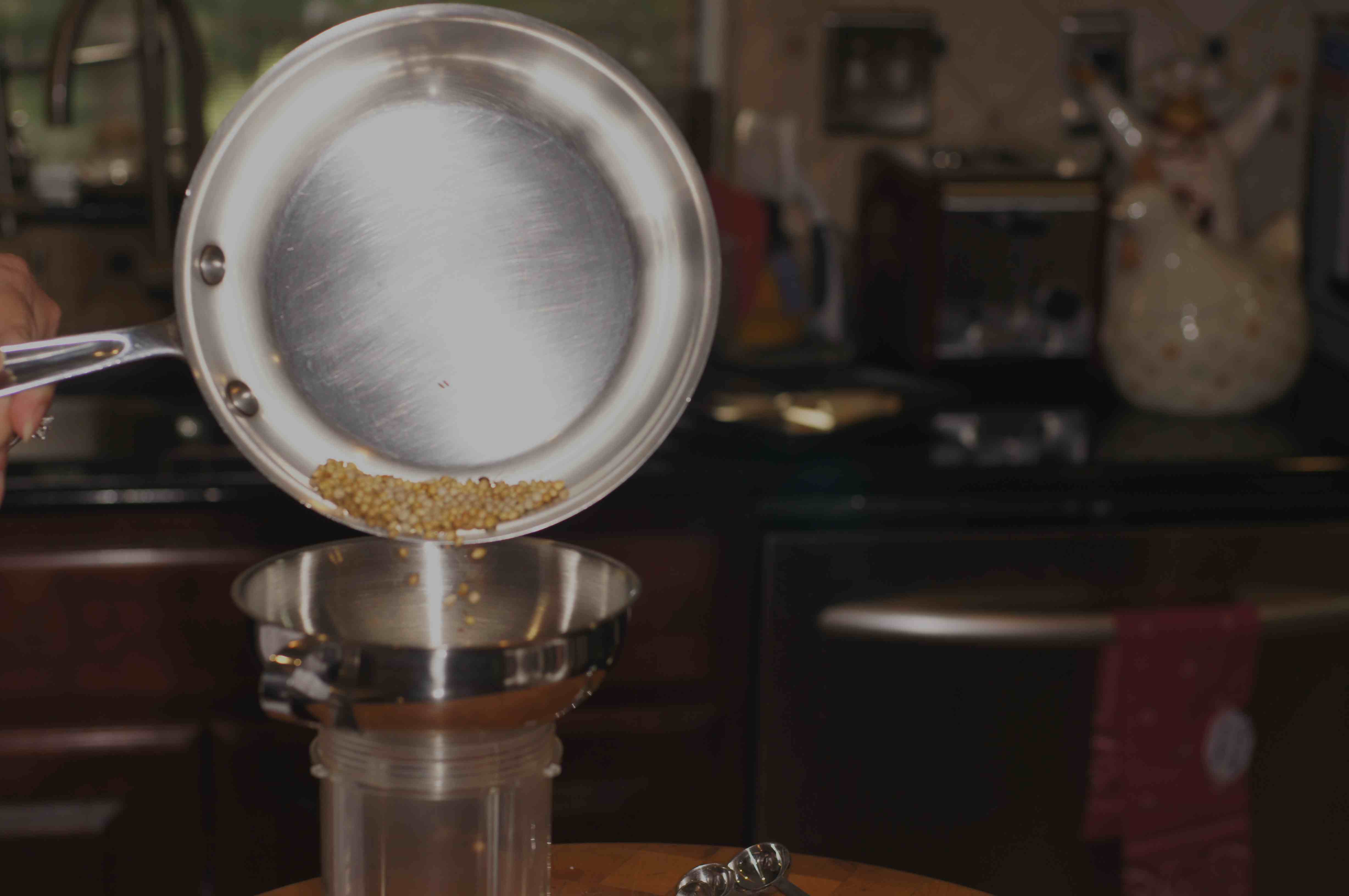 Pour toasted spices into a spice mill/blender.