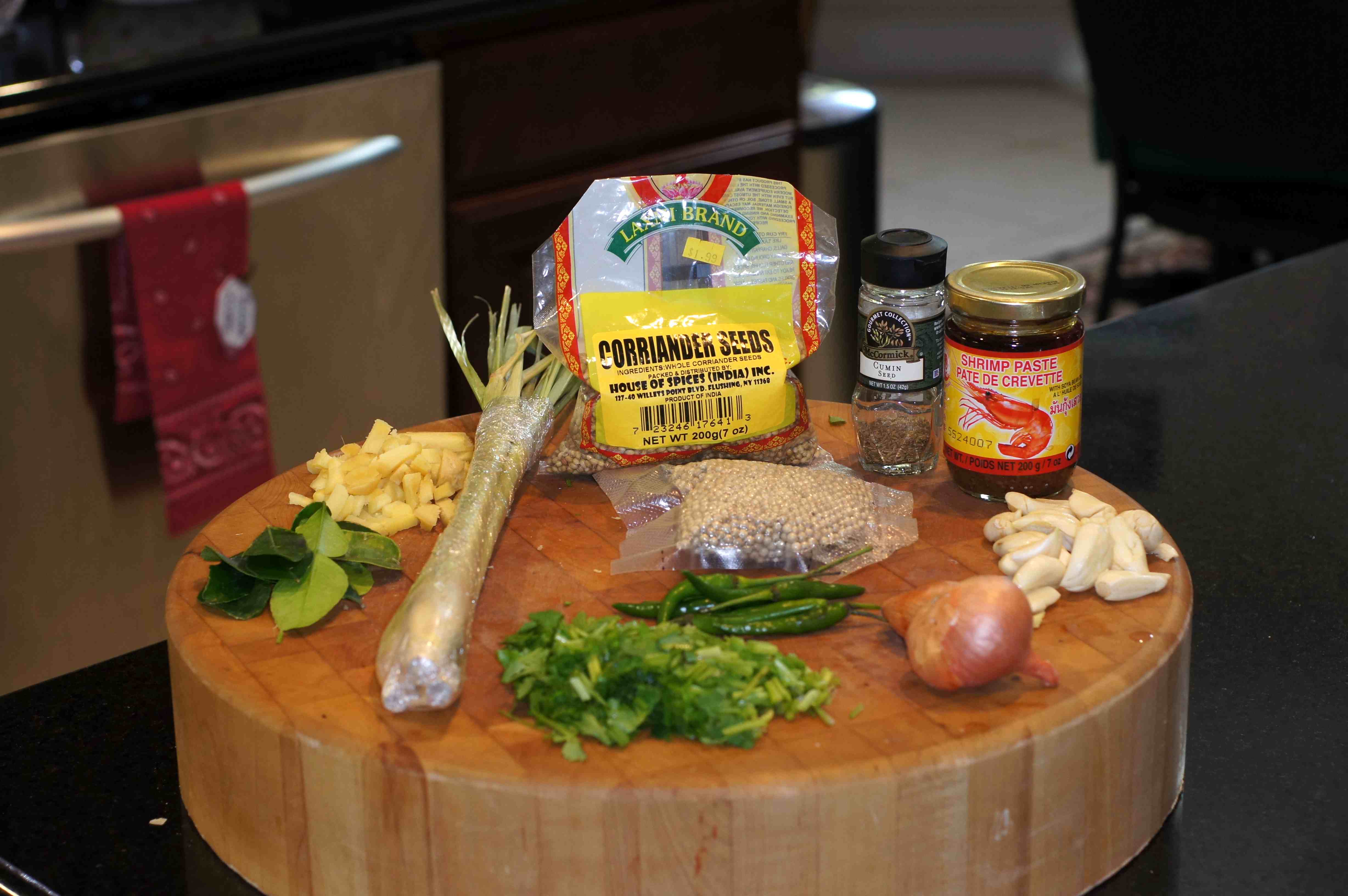 * Technically, you should use galangal (white ginger). Sadly, the galangal available in the US is “lengkuas,” Indonesian galangal. It has a multilayered, sharp flavor with a pine like aroma. I’m not overly fond of it. I would like to find “krachaai,” the galangal typically used in Thailand that has a flavor similar to ginger with pepper notes. As such, I use ginger as opposed to lengkaus as I prefer the flavor.