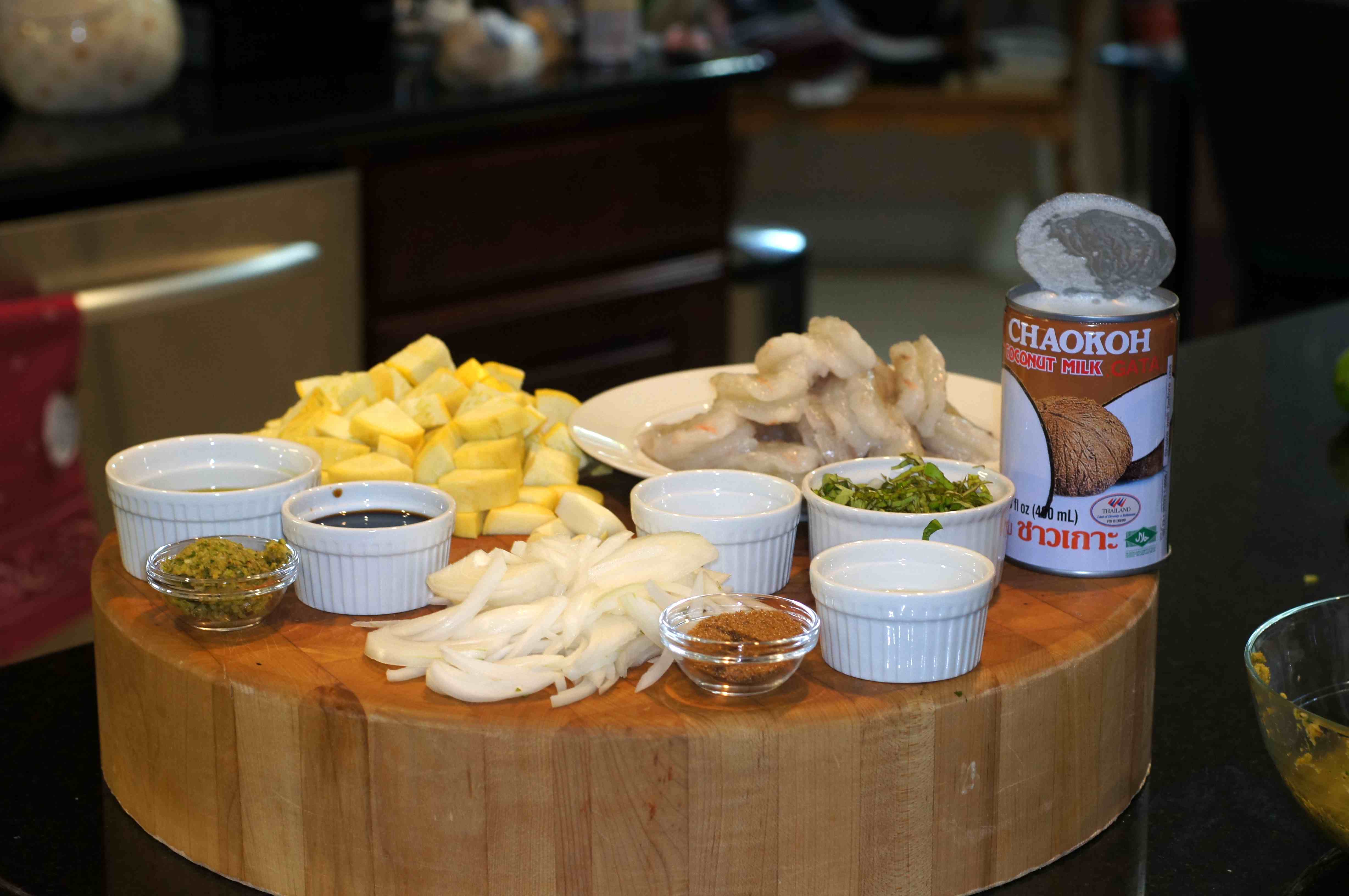 So, once we got the green Thai curry paste made, we needed to use it for dinner. Of course, I knew ahead of time what I wanted to do. Baby Lady and I had been to our favorite market and they had some beautiful U-15 white shrimp on sale. They were speaking to me as we were standing there admiring them. So, we bought 1 lb. specifically to make this curry dish and it was fabulous. We heartily recommend you give this dish a try, unless, of course, you don’t like shrimp. Then, if that’s the case, substitute skinned boneless chicken. This is such a flavorful, succulent dish we know you will like it. This is what we did.
