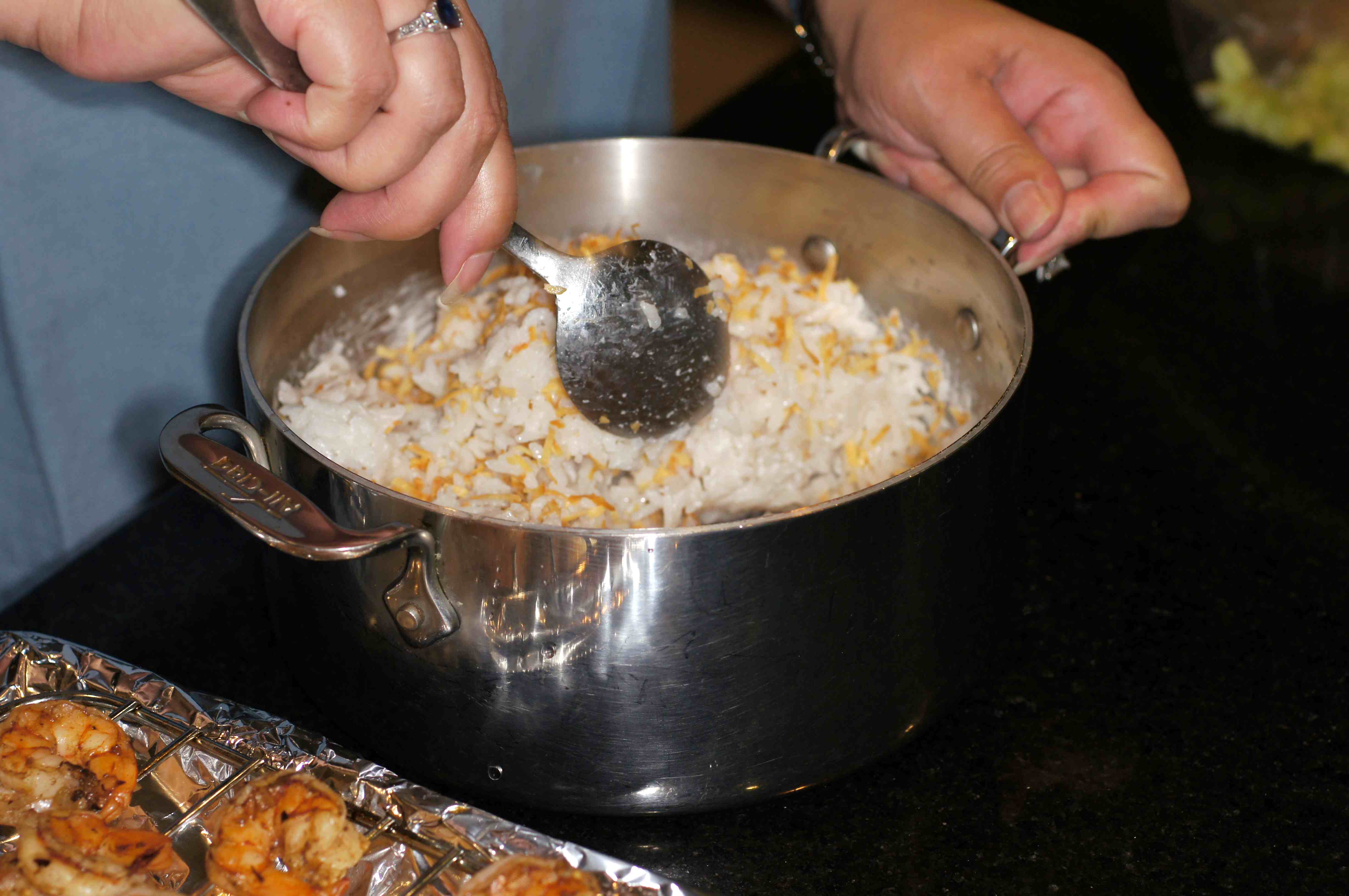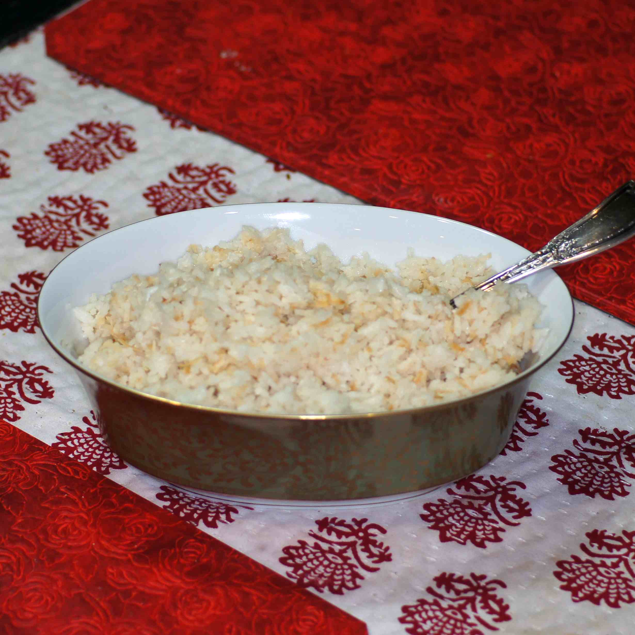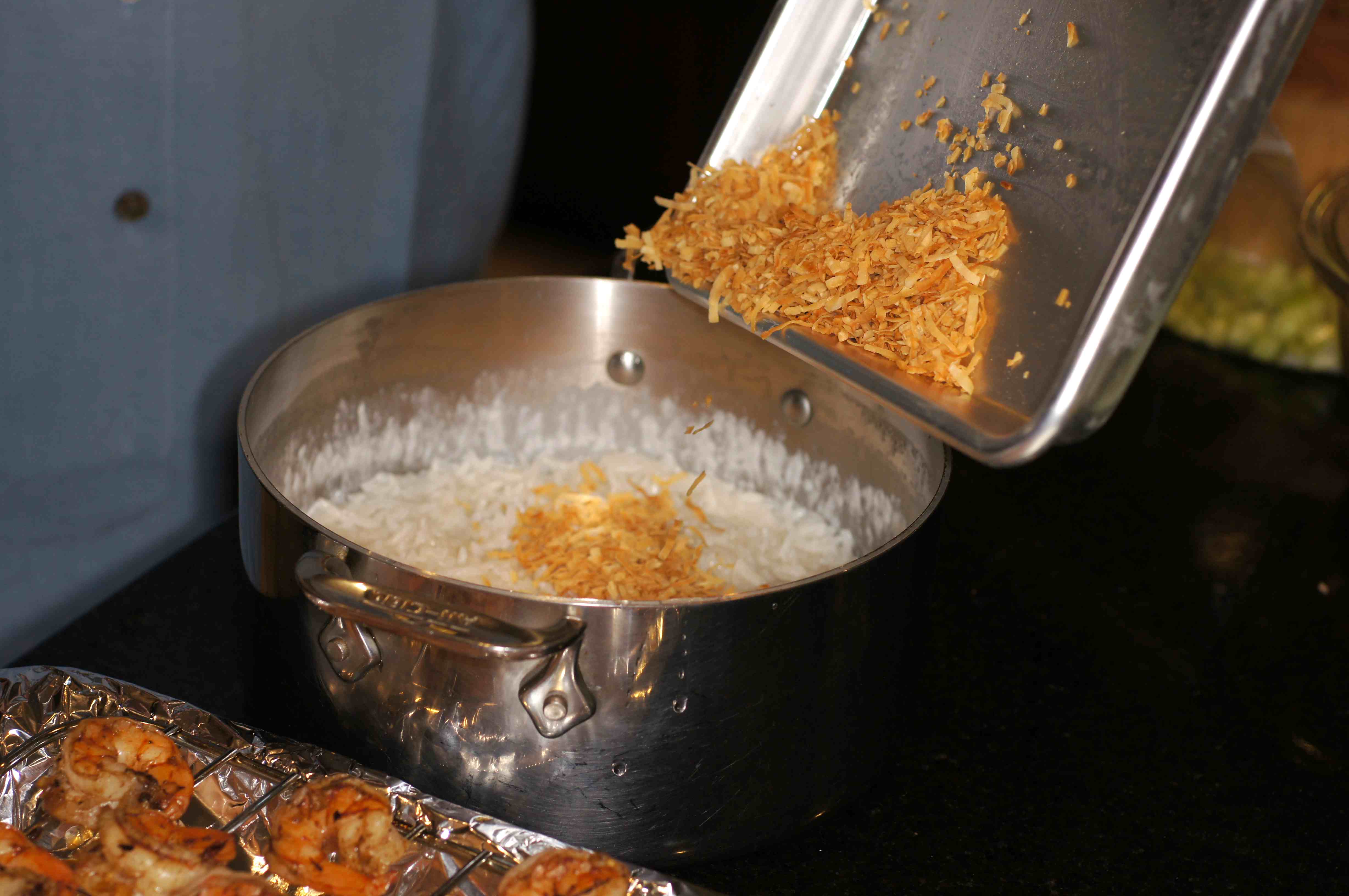 When the rice is done, add the toasted coconut.