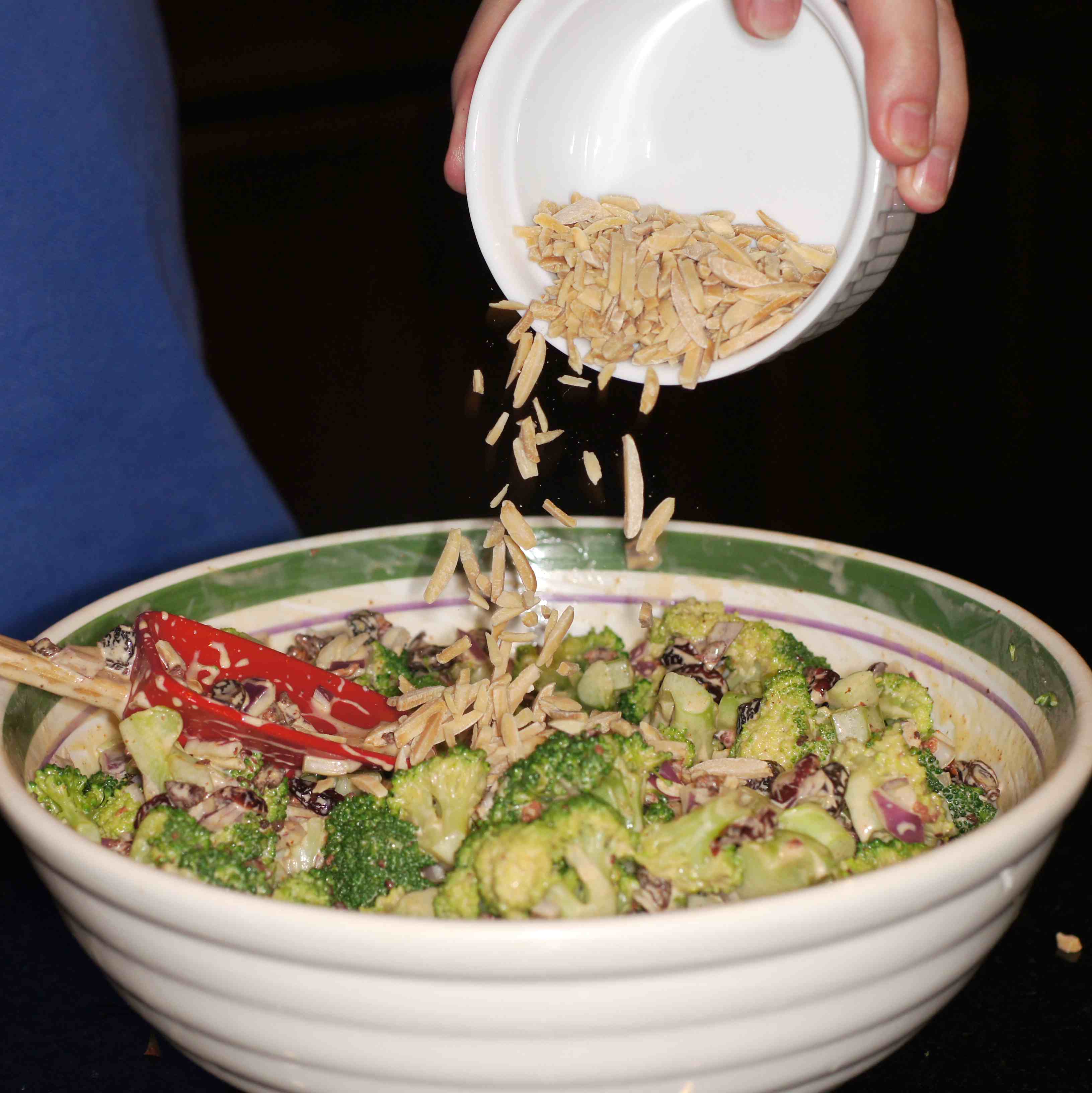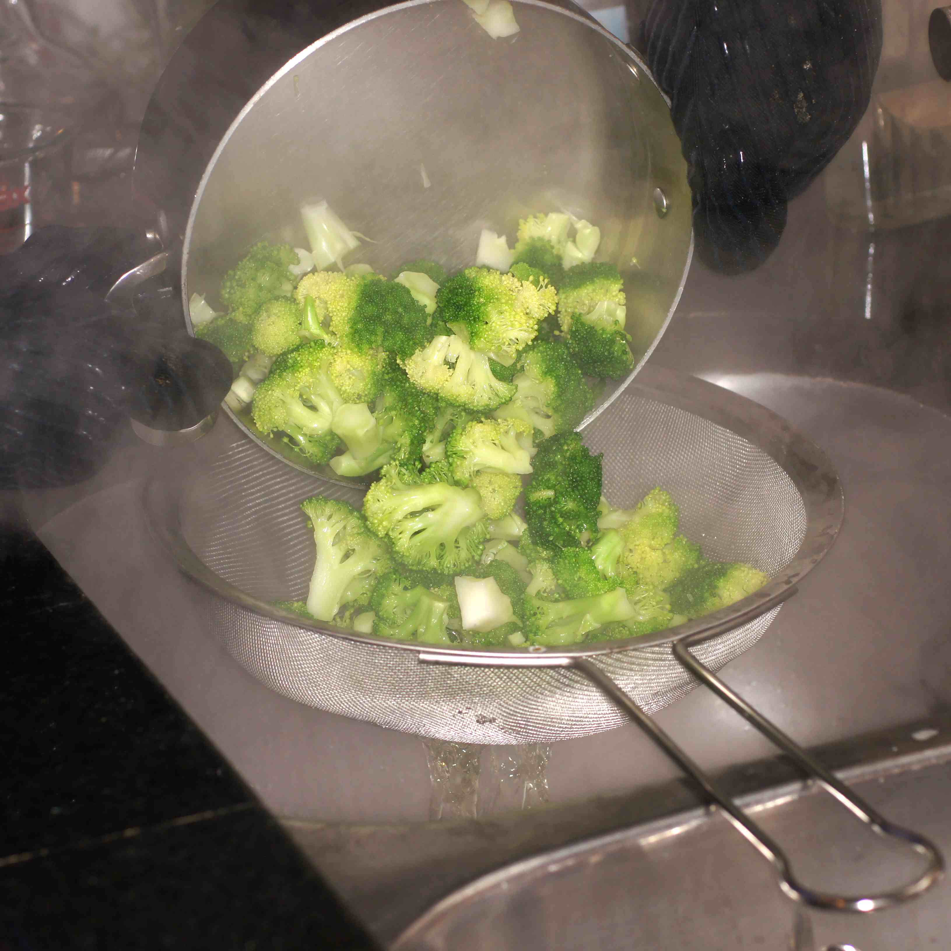 Drain the florets from the ice water and return to a large bowl. Pour the dressing over the broccoli.