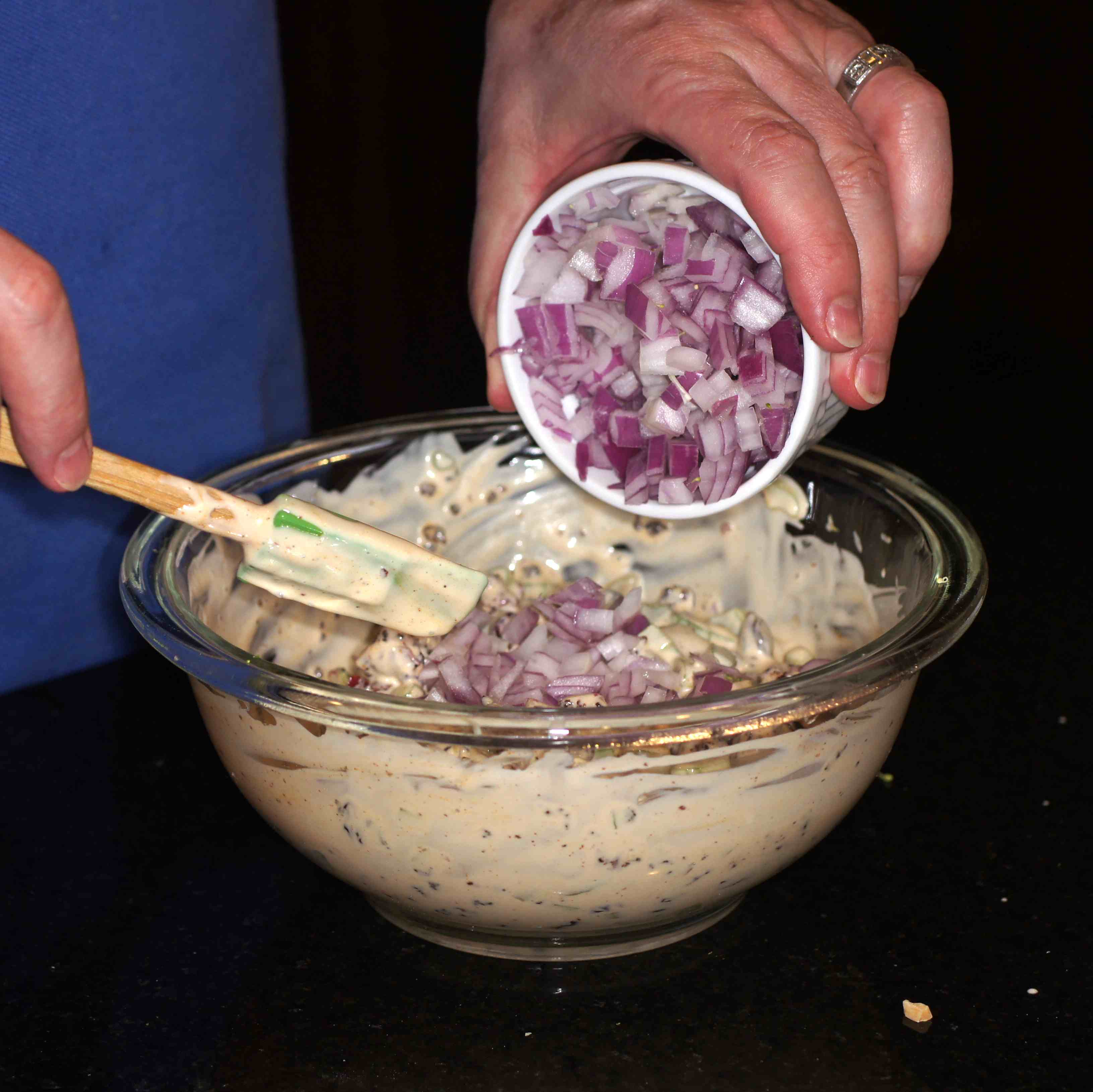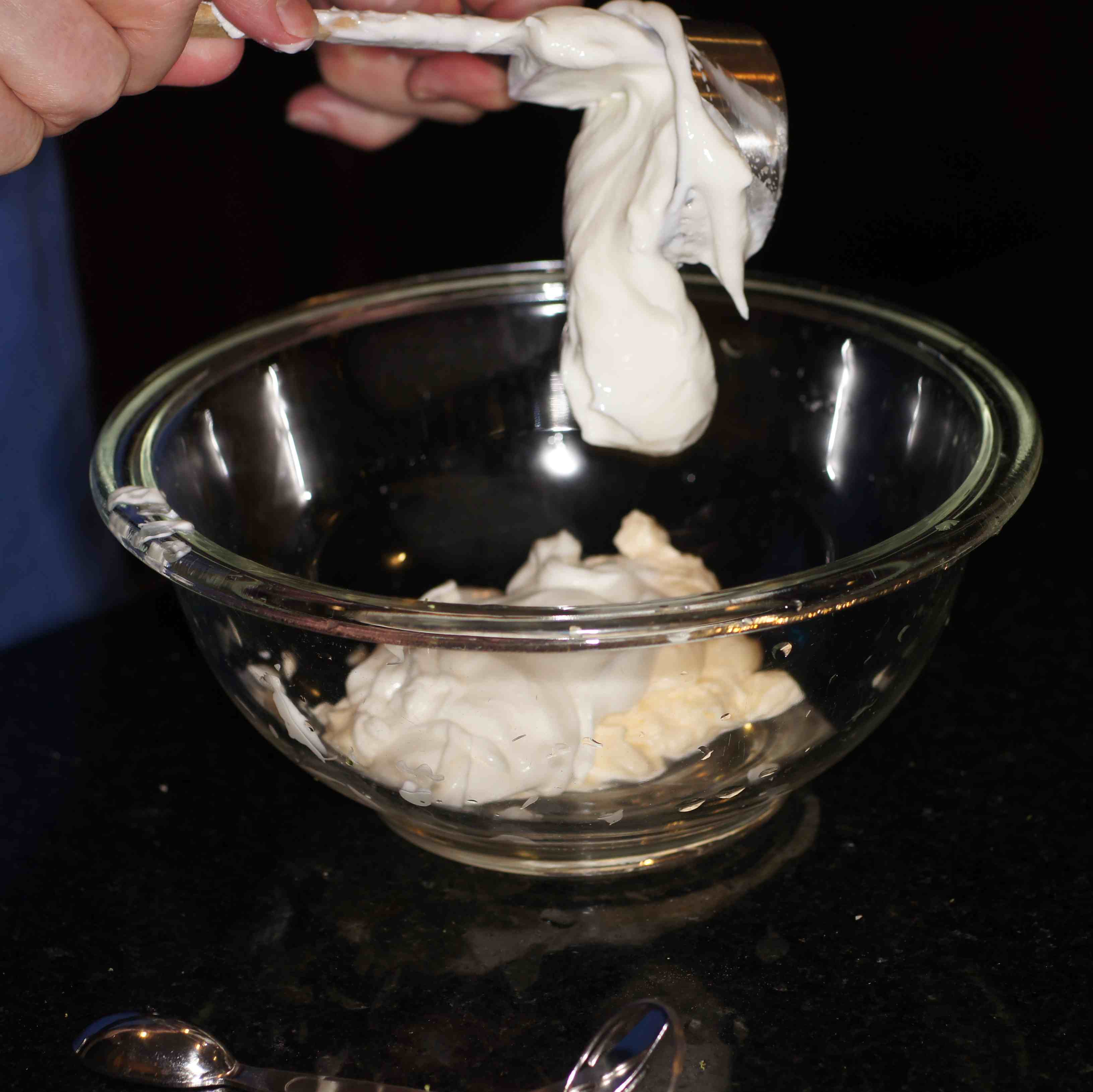 Next make the dressing by adding the mayonnaise to a mixing bowl.