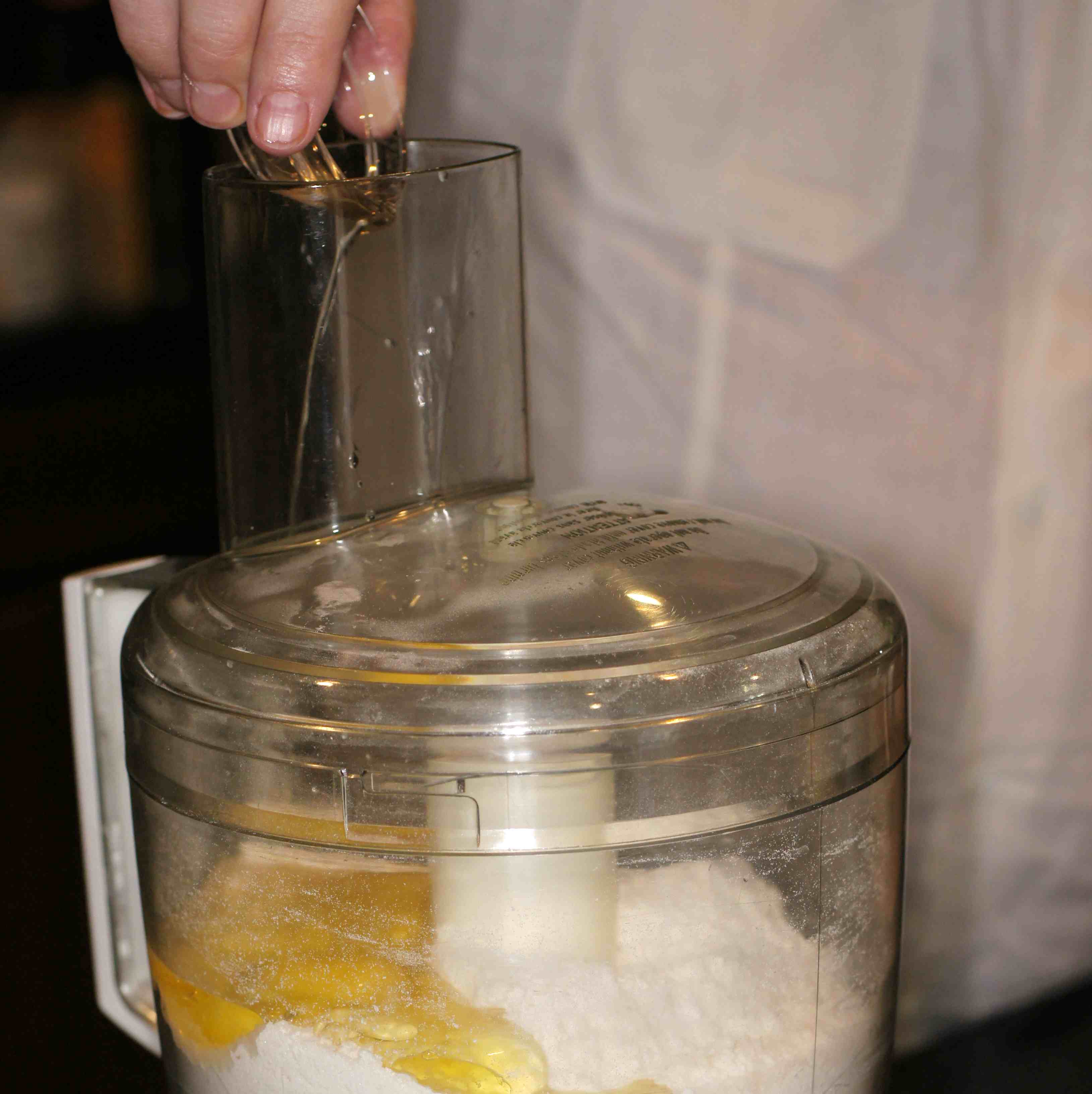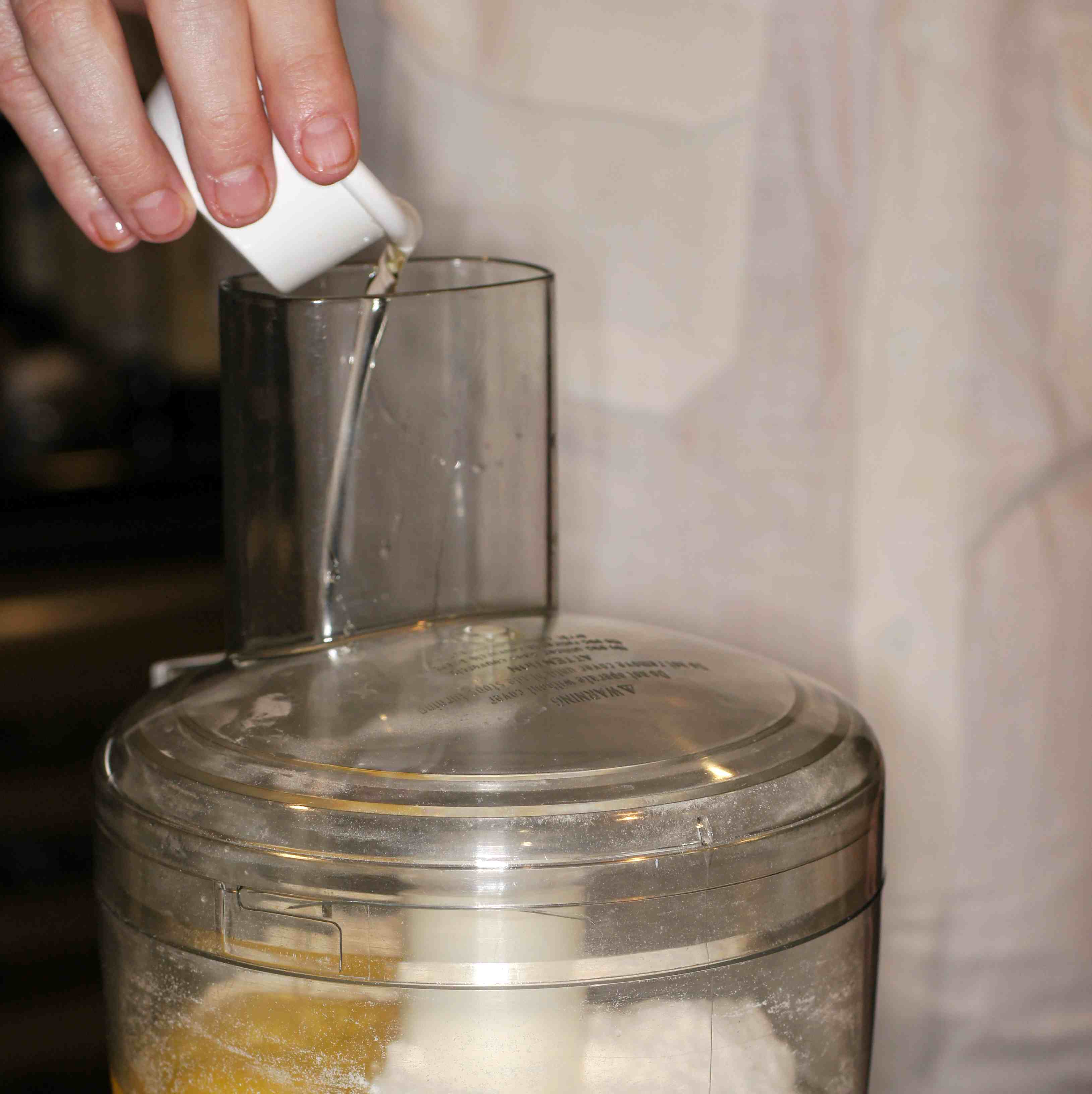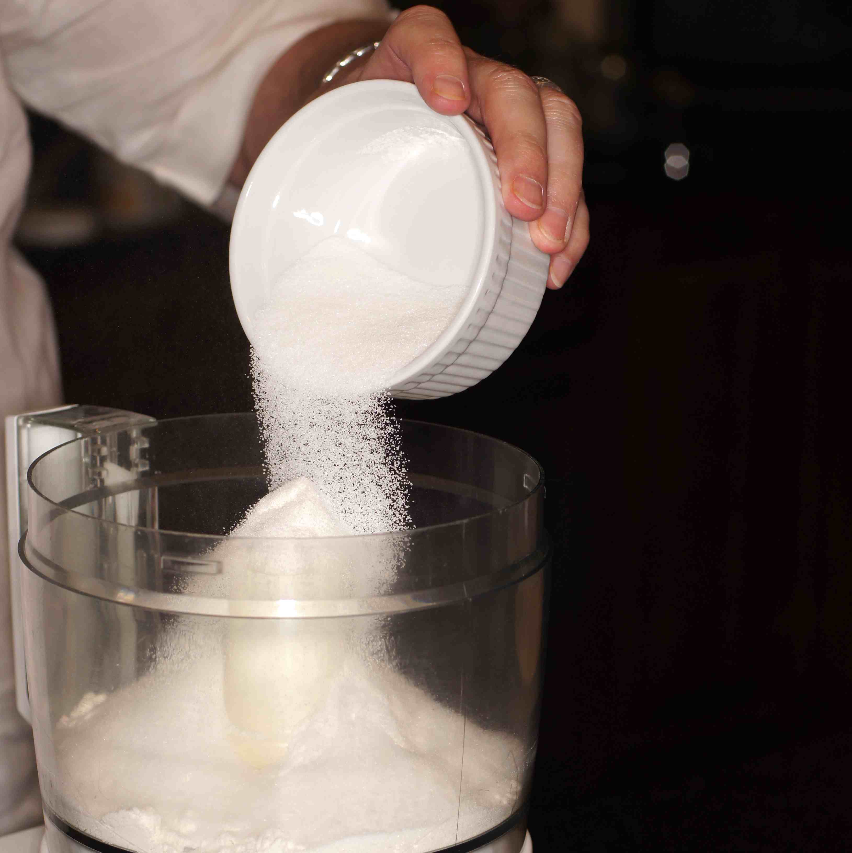 Process the flour, almonds, sugar, and baking powder until the mixture is a coarse powder.