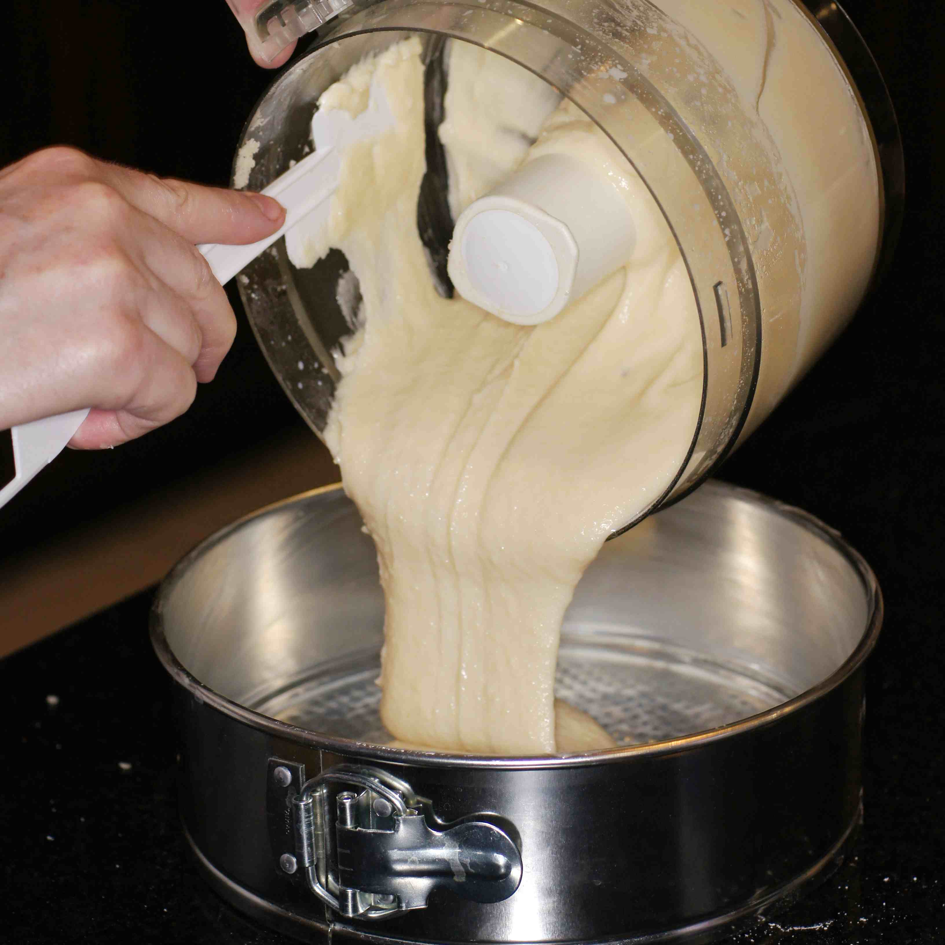 Process one final time until the mixture is smooth and pour into the buttered cake pan.