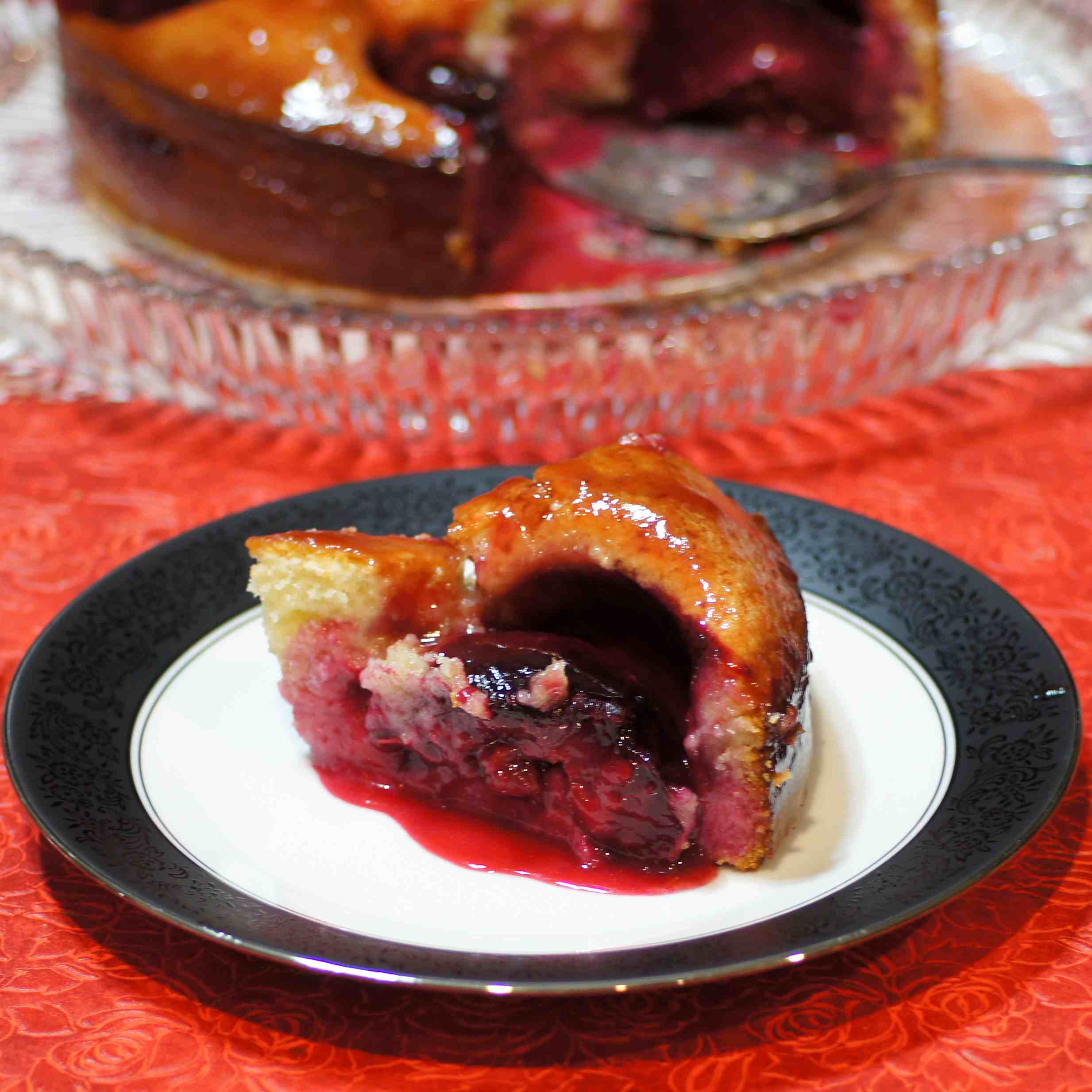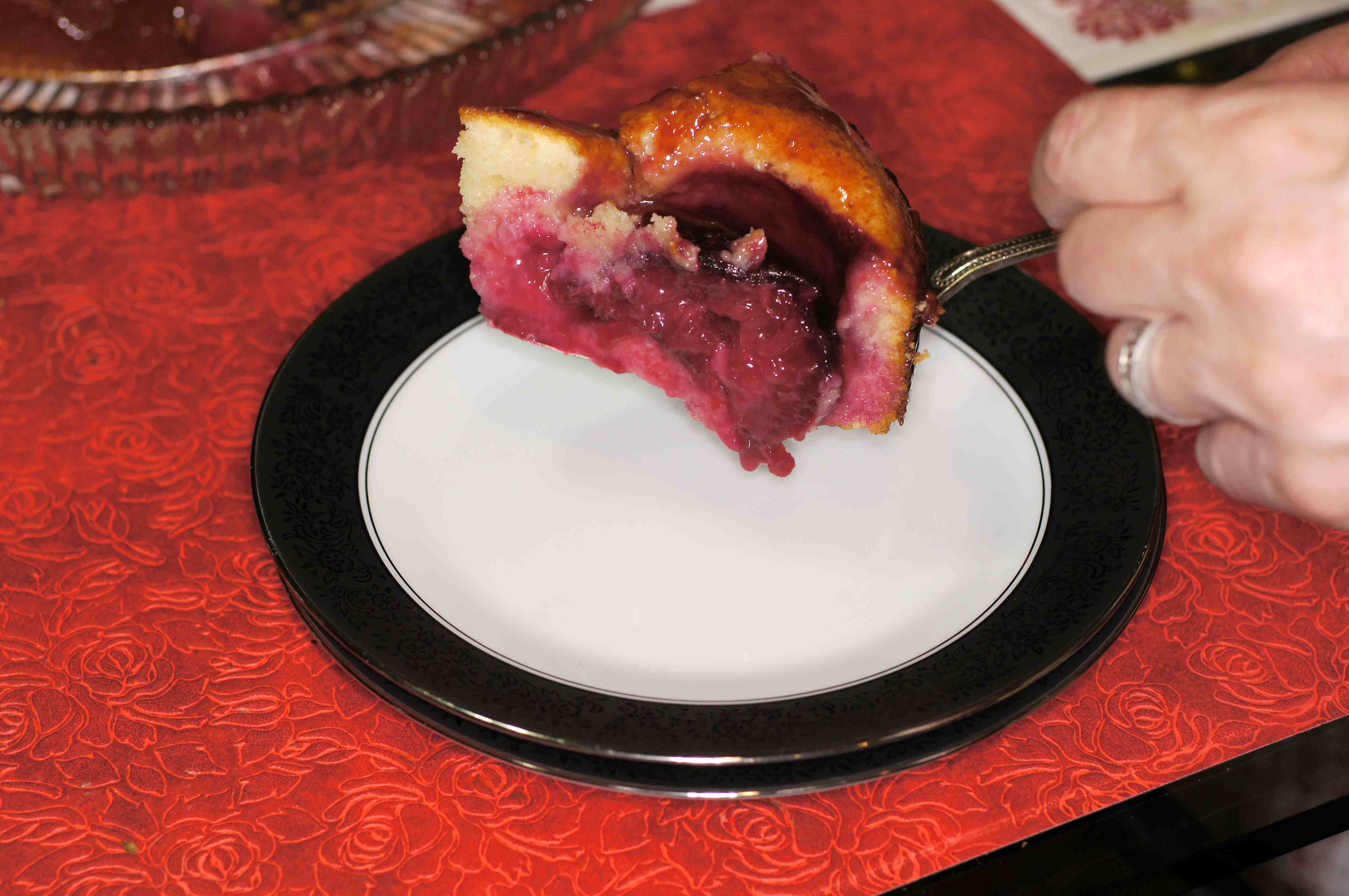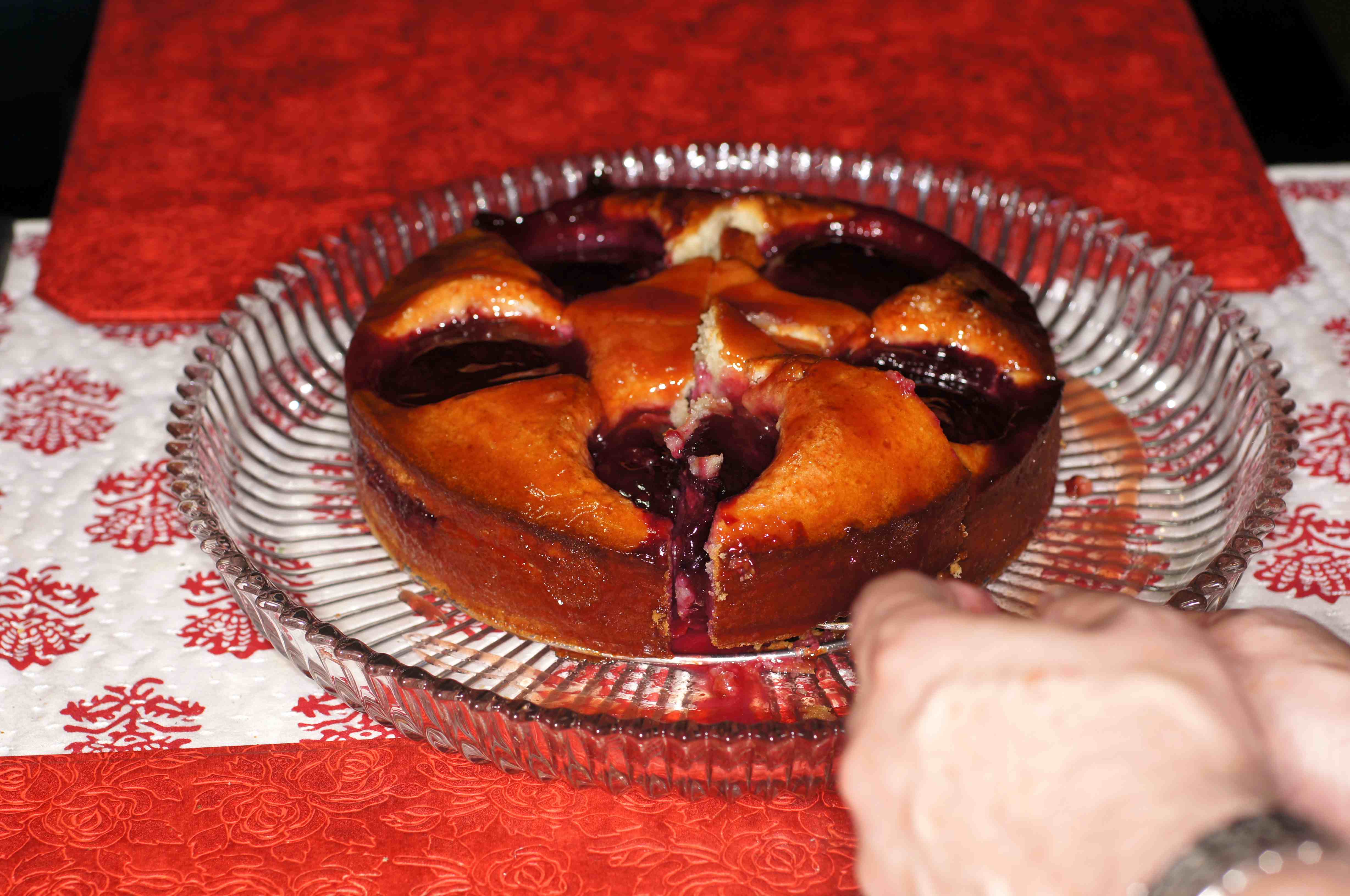 Cut the cake into 6 to 8 wedges, so that each serving contains at least half a plum.