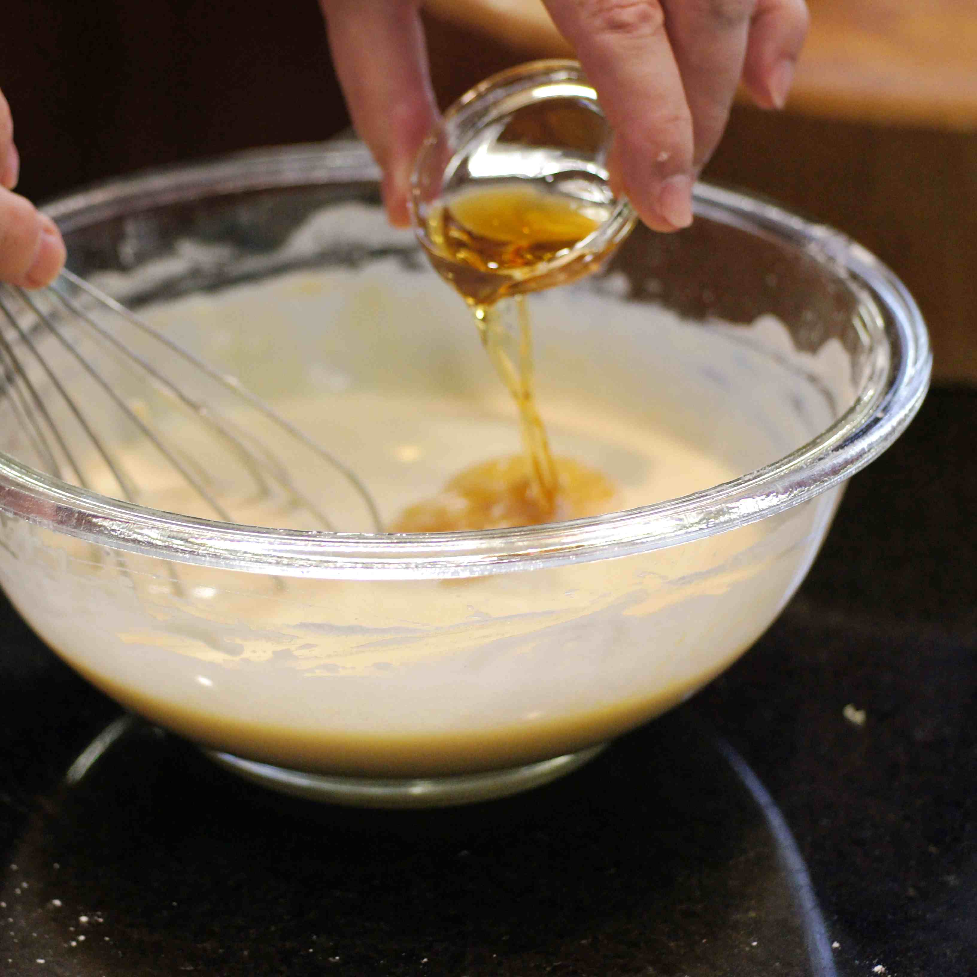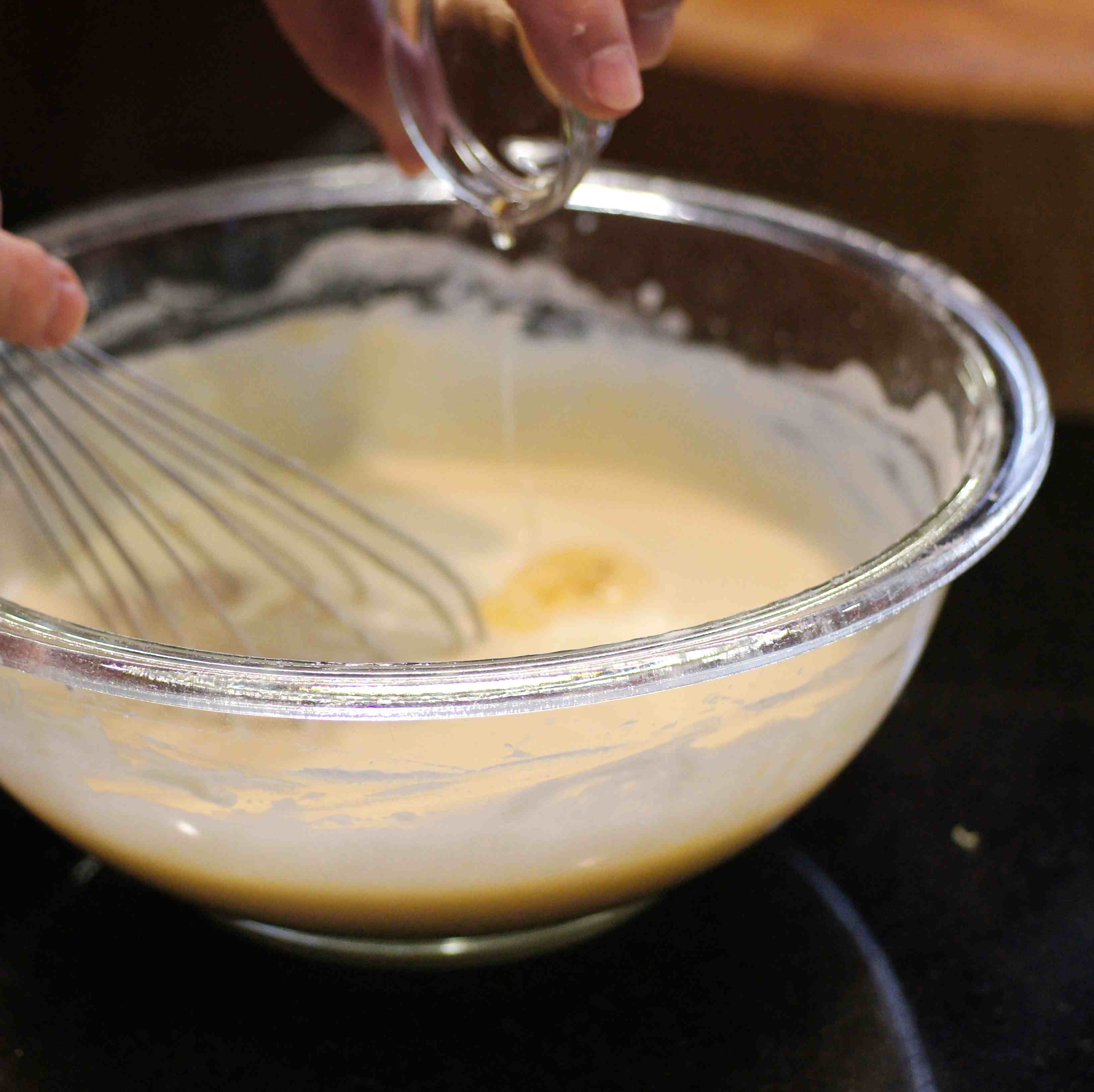 Whisk vigorously with a wire whisk until they turn lighter in color.