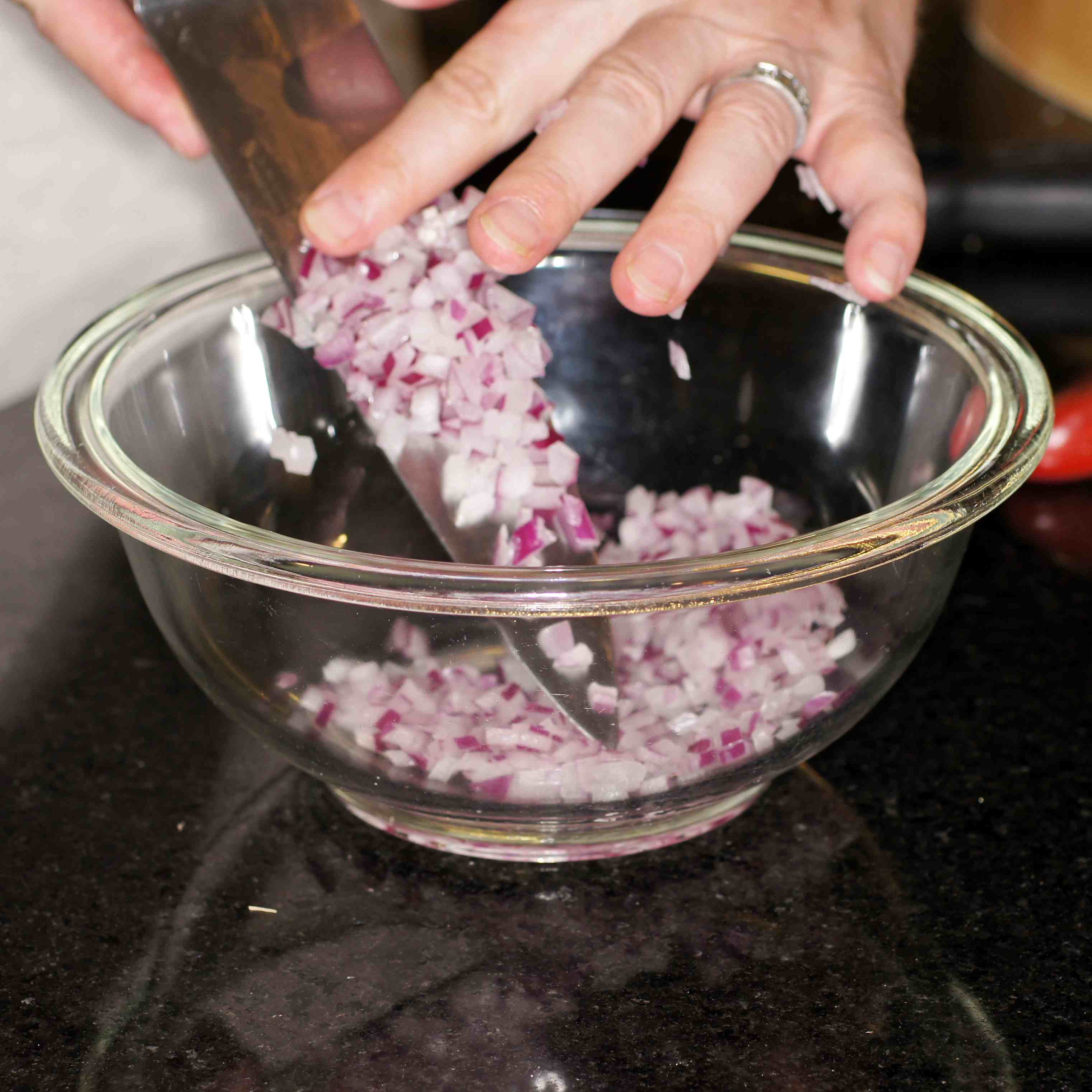 • 1/2 red onion, small dice