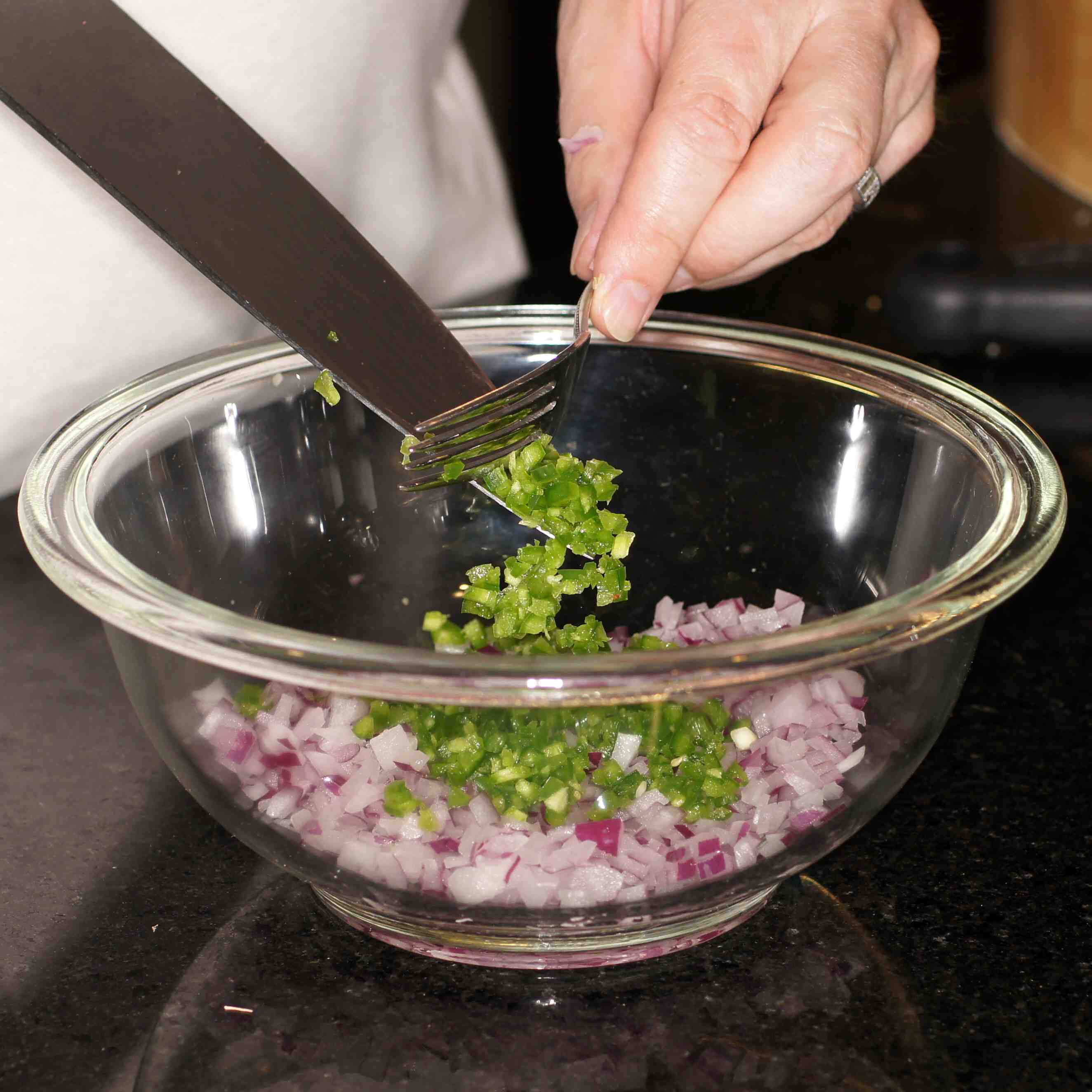 • 1 Serrano chile, small dice (2 if you like it spicy 🙂 )
