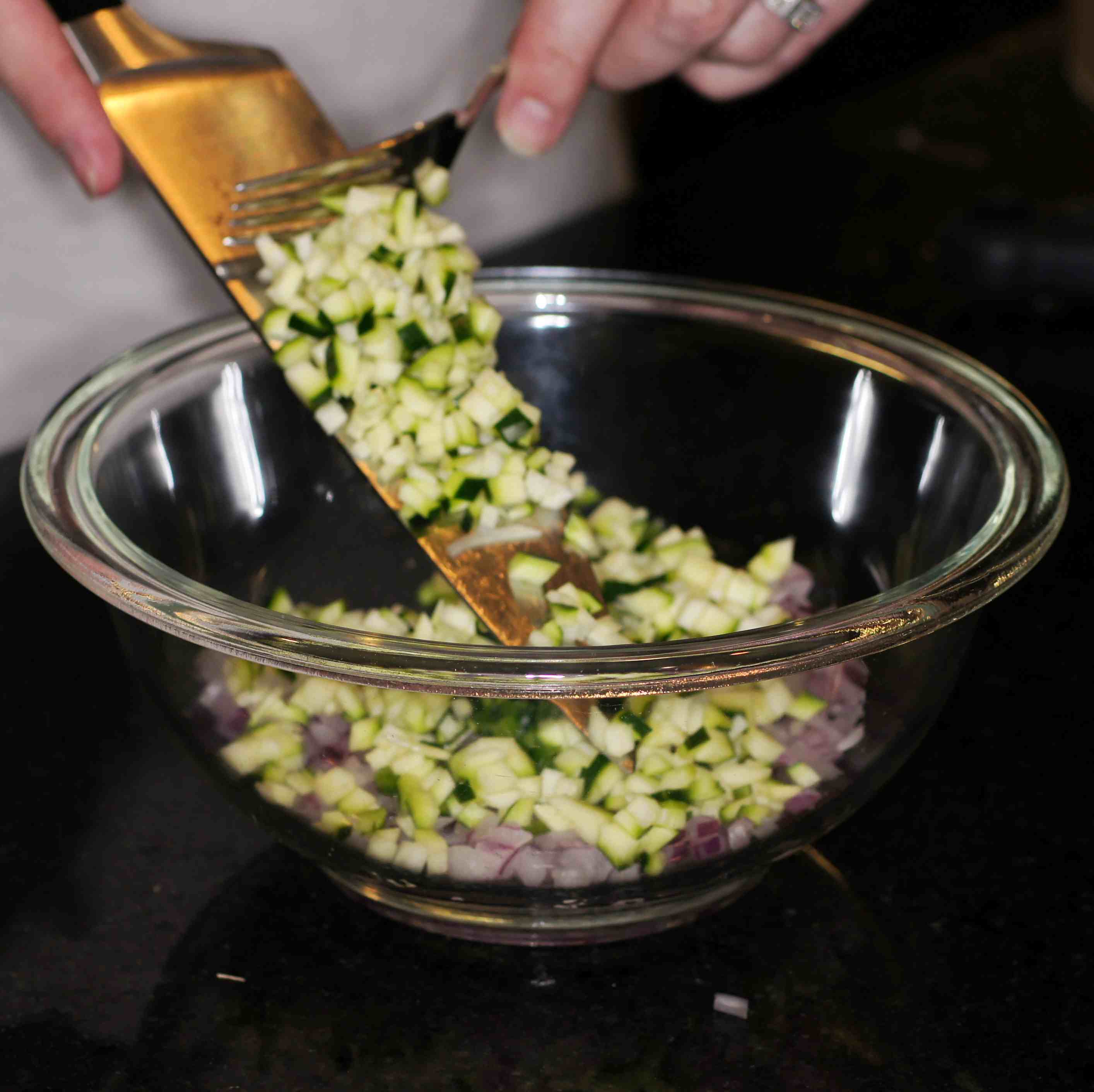 • 1/2 cup zucchini, small dice