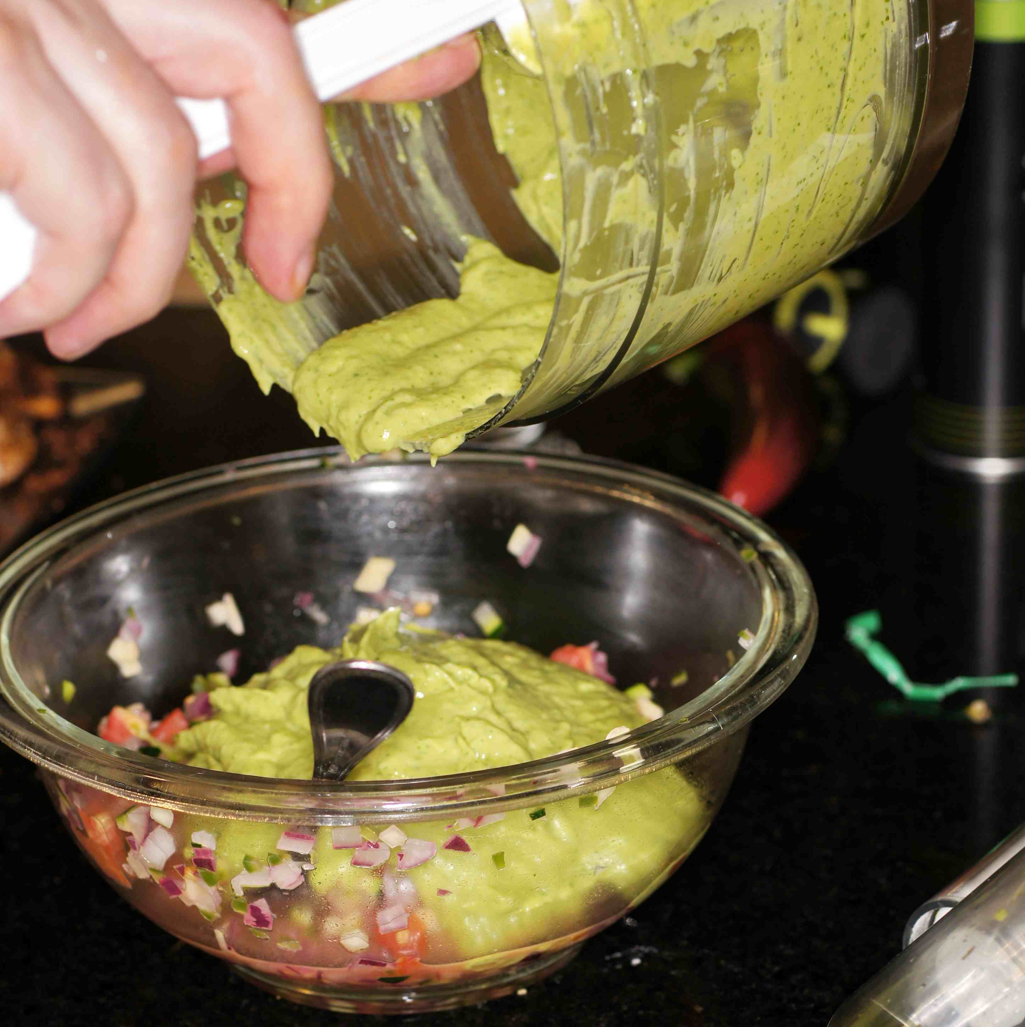 Add avocado puree to the vegetables.