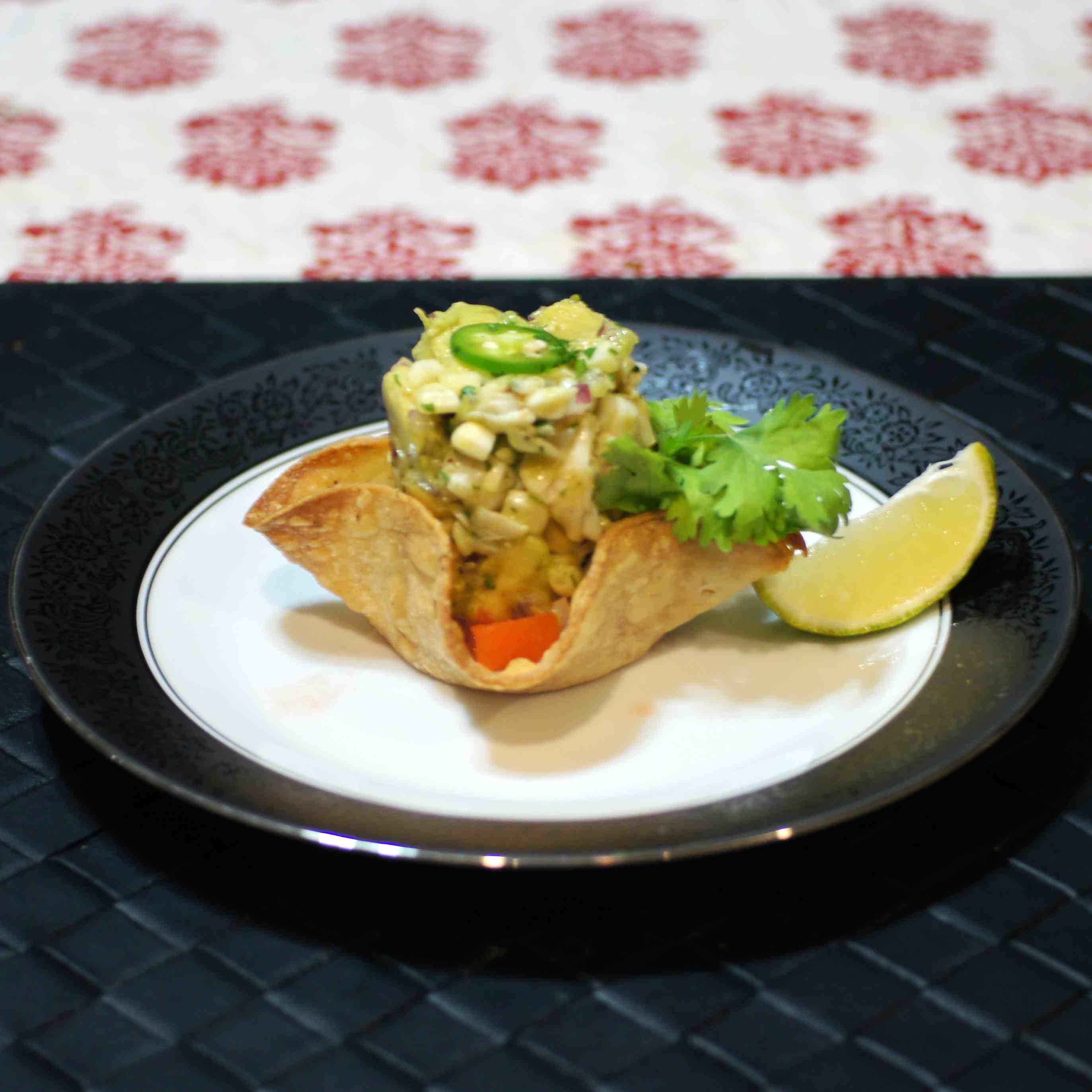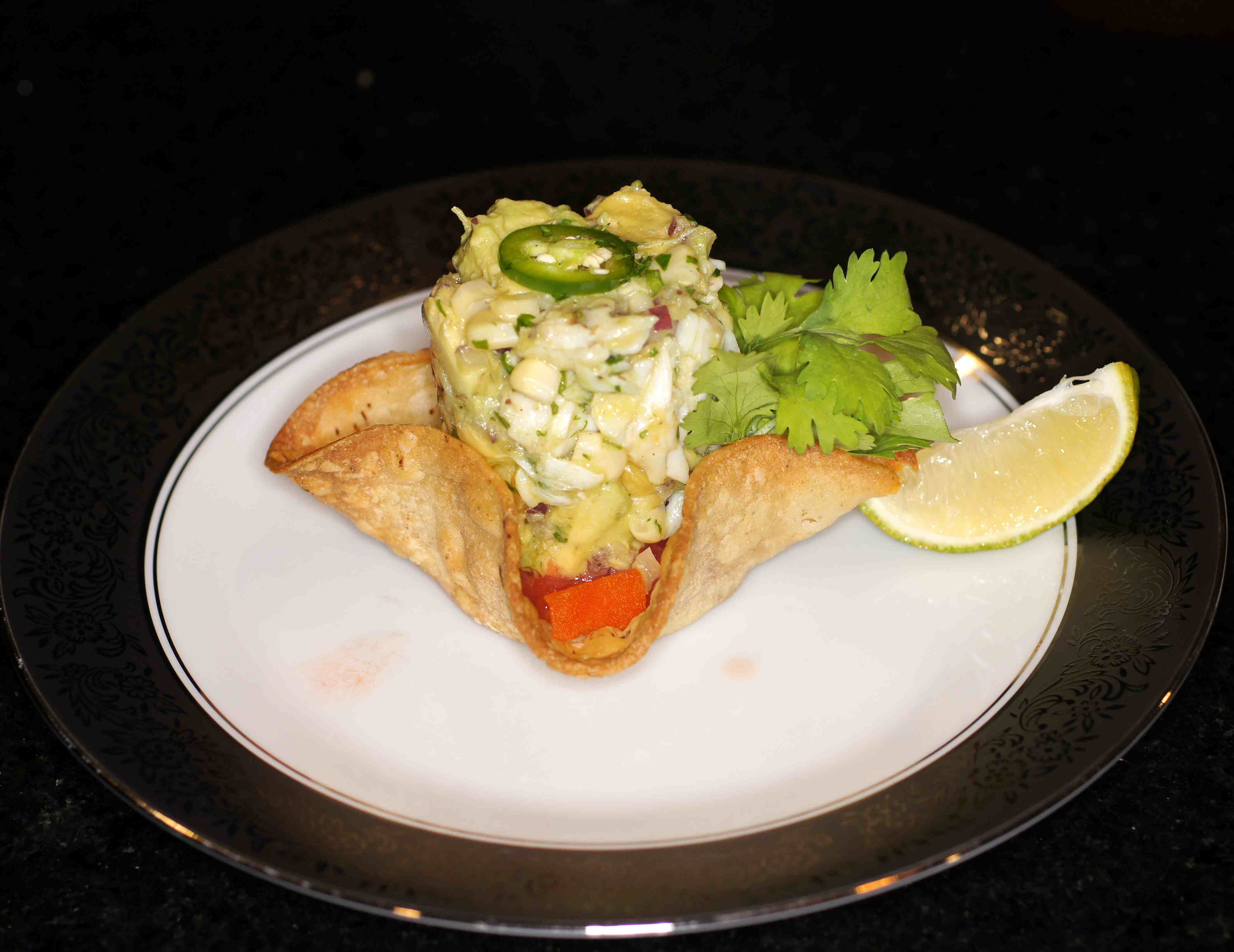 I love crab. I love corn. I love avocado – therefore, I absolutely love these recipes!! I wouldn’t bother being “fiddly” (at the Brits say) with the crab salad. I’d just mound it on top of the tomato OR the nice, crispy tortilla shell !! Thanks for posting a great recipe!!