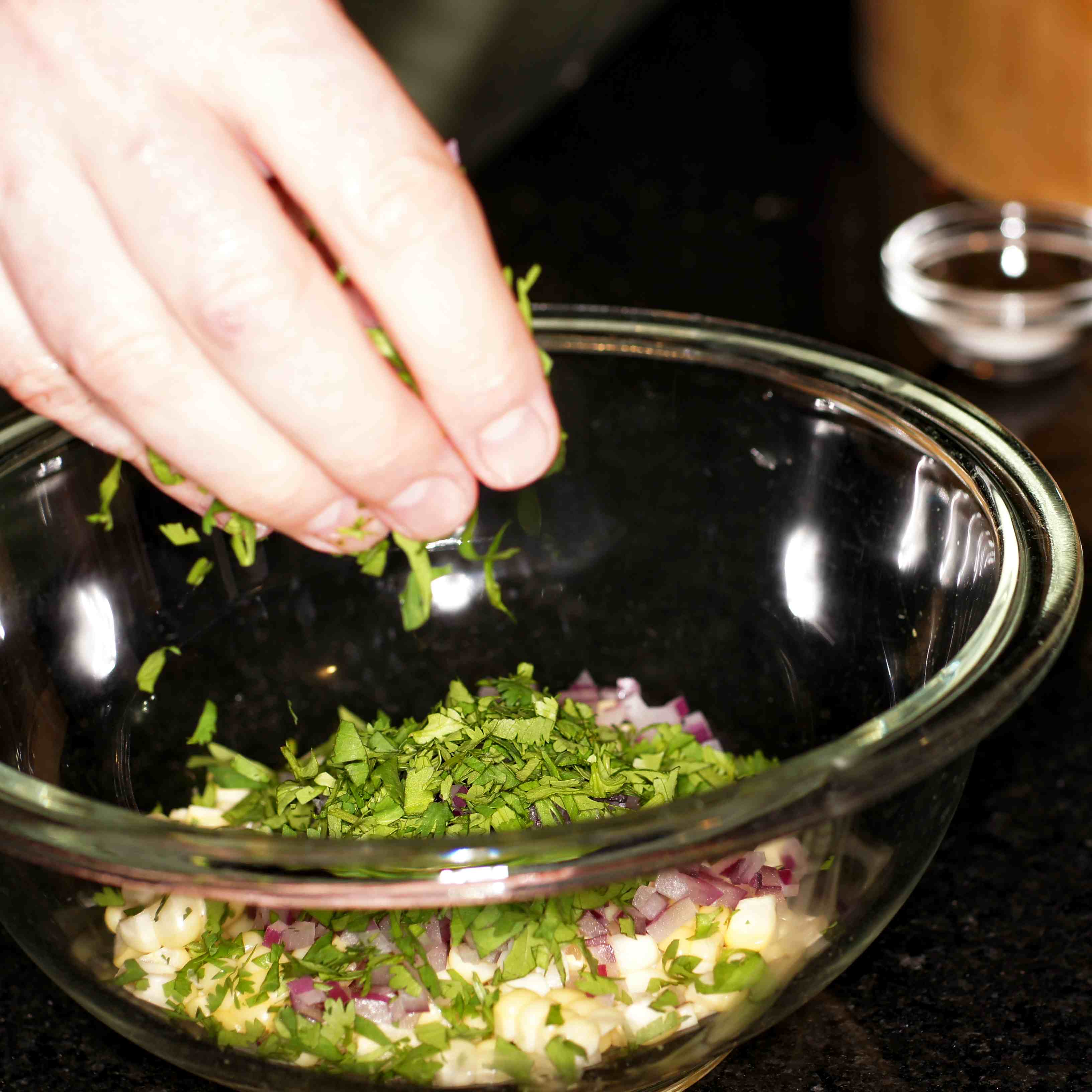 Finish with a sprig of fresh cilantro and a sprinkle of chopped cilantro around the plate.