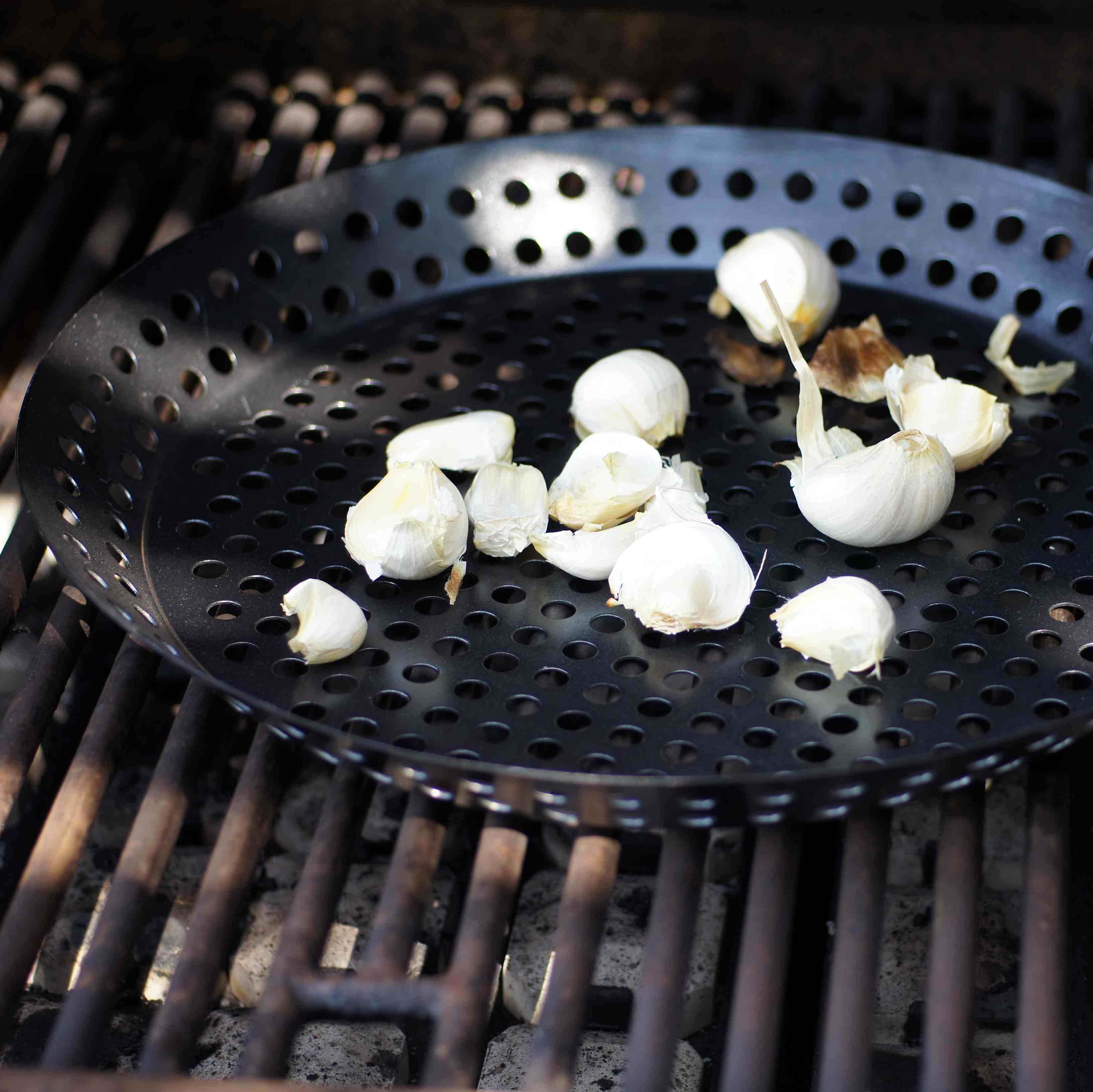 To start, roast the garlic on the grill.