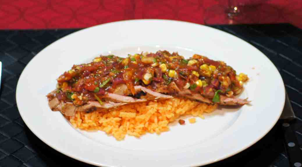 It’s been a while since we posted a pork recipe. I actually love pork but I love most food. 🙂 Despite my love of pork and piggy goodness, we have been eating quite a lot of seafood recently. Given it’s summertime, we do that. Right now, seafood is very abundant in the markets. It’s always light, refreshing, versatile and cooks quickly. It is perfect for summer fare, especially with the temps in the upper 90s F and 100+ F. Lately, however, the temperatures in DFW have come back to the bearable levels of the upper 80s F to low 90s F. In fact, last week the mornings started out in the upper 60s F and never got above 88 F. This is almost unthinkable Texas weather in August. It was a good thing, too, because I spent most of last week working a fire scene inspection with no AC, no roof and nowhere to hide from the sun. Ah, but I digress. When the temperature drops like this, I’m more inclined to be outside, to grill and to eat something other than seafood. So is the Baby Lady. Consequently, when I decided to make a salsa it wasn’t with the idea of chips and salsa although we made enough to do that, as well. (What can I say? The organic tortilla chips flew off the shelf and attacked me!!!) I really made the salsa with the idea to serve with a meat, either chicken or pork (remember Baby Lady doesn’t eat red meat). Inasmuch as we hadn’t had pork in a while, I was leaning toward pork. So, Baby Lady and I discussed pork chops, pork shoulder, pork loin, and pork tenderloin. We finally decided upon grilling pork tenderloin. It’s always such a nice protein and grills beautifully but how were we going to prepare it? We could take the simple approach with a little salt and pepper. That’s always nice but I wanted something with a little more kick to it. After all, it’s chile season again and you know how we love chiles. 🙂 So, I opted to do a green chile marinade and finish it with the fire roasted salsa I was planning on making. It turned out great! You get the flavor of the grilled pork tenderloin with the flavors of the green chile, garlic and lime coupled with the sweet roasted goodness of the salsa with just a touch of heat. Your family will love this. It’s a really simple dish to prepare and is loaded with flavor. If you’re in the mood for grilling, this is a wonderful recipe to try. It not only works with pork but you could do this with steak, as well. This is what we did.