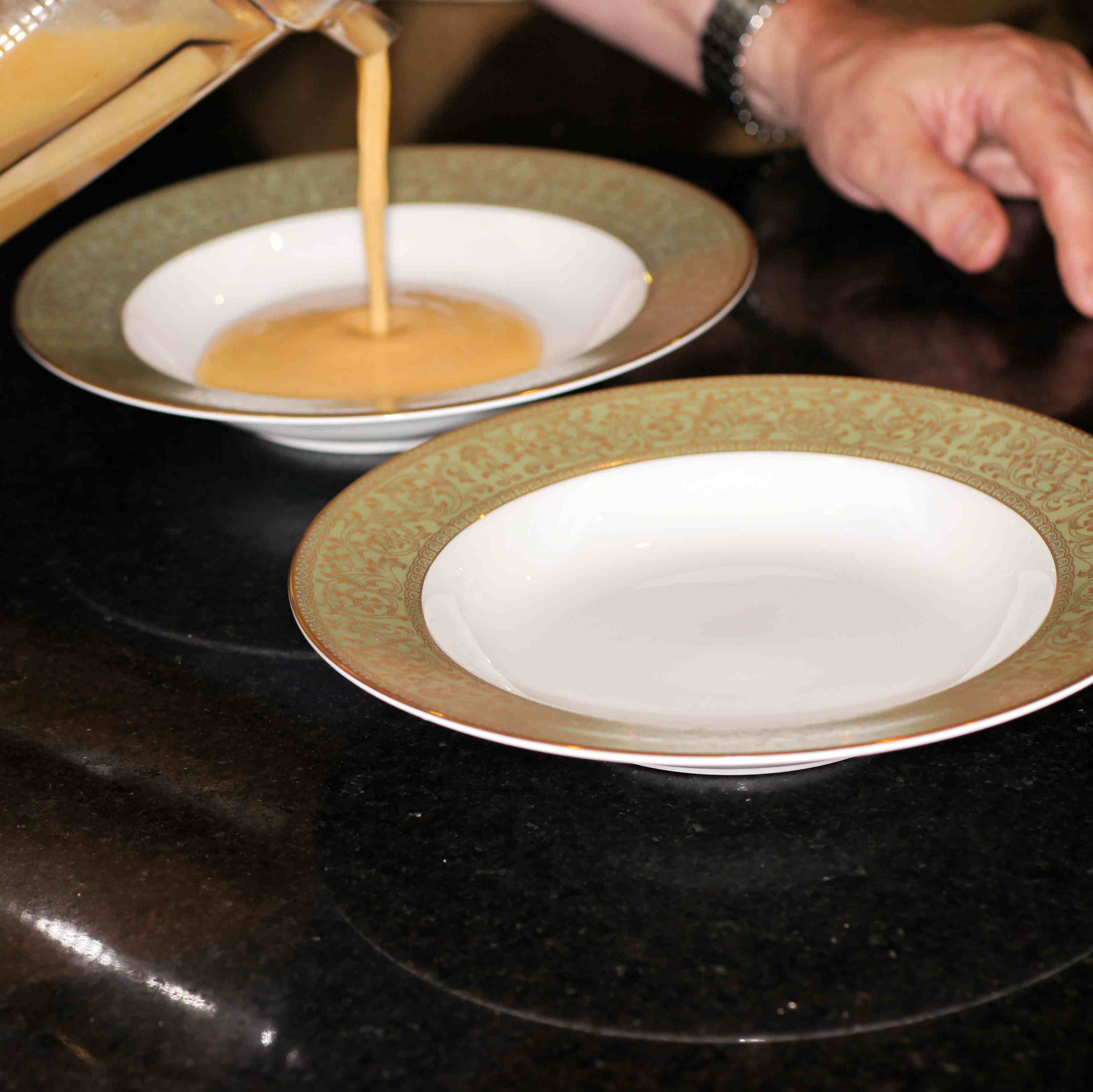 Back to this gazpacho…This is a wonderful cold soup. In fact, this is one of the best dishes we have made in a long time. Everything in this soup is in perfect balance and it’s perfect for the summer. There is a creamy sweetness from the cantaloupe, a slight tang and freshness from the lemon, saltiness, crunchiness and zestiness from the relish with a just little kiss of back end heat, savory crunchiness from the fried prosciutto and bright freshness from the mint. It’s absolutely amazing and is perfect for a lite lunch with a nice finger sandwich or even a side salad. Baby Lady & I were absolutely blown away at the flavors and balance of this soup and I hardly ever say that. This makes 6 servings 1-1/2 cups each. You need to make this quick while you can and ripe cantaloupes are readily available. You will regret it if you don’t. This really is that good and this is what we did.