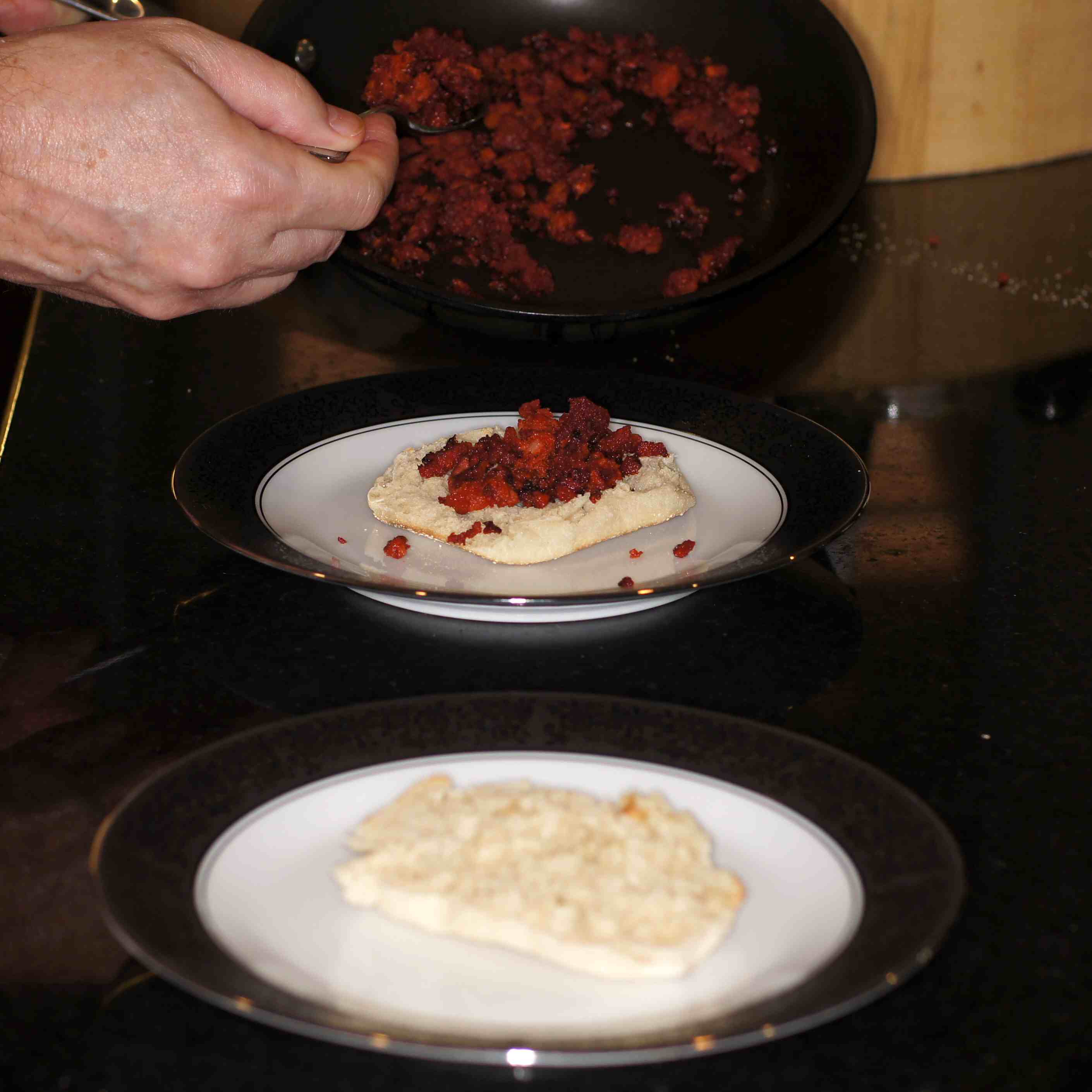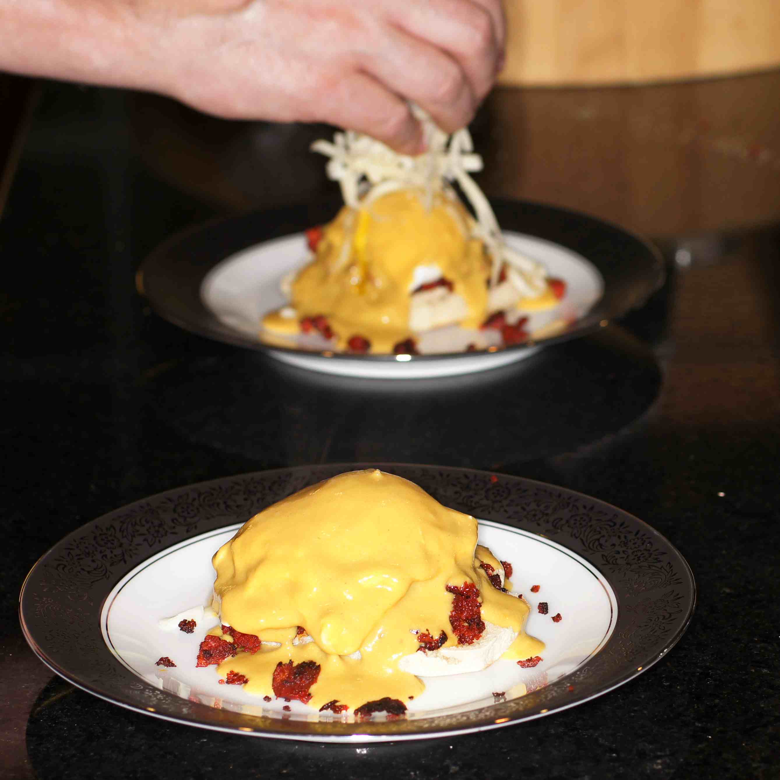 Let’s face it, we all make mistakes in our kitchens. We hate to admit it but we all make them. We also hate it when it happens. The question is once it happens, what do you do about it. How do you recover? Sometimes there is no recovery. You’re stuck with starting over or going out to dinner. We have all had those moments. I remember preparing for a banquet and putting salt in chantilly cream. What a disaster!!! I was glad I tasted it before I put it in the chocolate mousse. 🙂 There is no recovery from that type of mistake. You simply move on and start again. Thankfully, I didn’t sugar the mash potatoes. 😮 I do know someone who did that. Other times, it’s not so bad. That is what happened with this recipe. I had recently purchased a very nice piece of fresh mahi-mahi but didn’t really know how I was going to prepare it. I had run through a variety of different preparations but none of them stepped out and said “make me.” Baby Lady, on the other hand, had recently purchased Pati Jinich’s cookbook Pati’s Mexican Table: The Secrets of Real Mexican Home Cooking. So, Baby Lady suggested we look at Pati’s book to see if she had any recipes with mahi mahi. She did. It sounded wonderful but needed a little tweaking to match the ingredients we had on hand. First, her recipe called for poblano chiles but we had some beautiful roasted New Mexico green chiles we wanted to use instead. Her recipe also called for 4 mahi-mahi filets but we only had 2. No problem, right? All you have to do is divide the ingredients in half. Sounds simple enough. Of course, that is the problem. It IS simple. So simple that I turned my brain off and halved everything but the chiles.!! Rather than a nice, creamy sauce with a touch of heat and green chile flavor, we got a silky smooth, luxuriously creamy, green chile sauce that was long on chile flavor and heat. It very definitely would overpower a mild fish like mahi-mahi, even when the mahi-mahi is marinated for 20 minutes in a nice lime marinade. Now, of course, dinner changes gears but you have the sauce (a lot of it). It is incredibly flavorful, just not what you wanted. So what do you do? Well, you make breakfast with it the next day. You have the creamy, green chile sauce that is toned down and made richer and more creamy by the egg yolk The sauce is then complimented by the red chile in the chorizo and it’s served on an English muffin, topped with melted Monterrey jack cheese. Nice recovery with the result being a fabulously rich and flavorful breakfast. No one would know this was a mistake unless you told them. So let’s keep this just between you and me. OK? This is what we did.