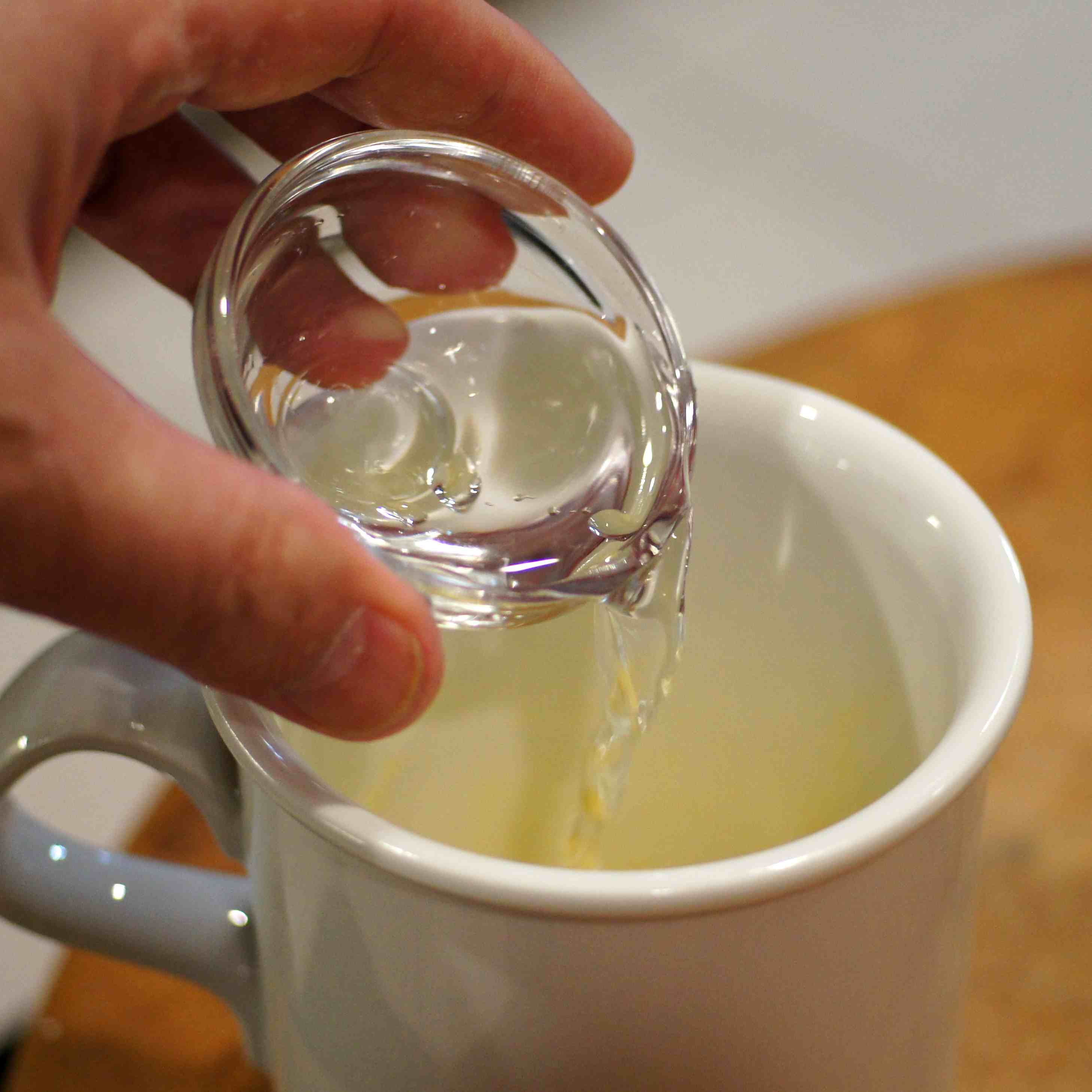 Now, add the ice water to the cold egg and beat lightly.