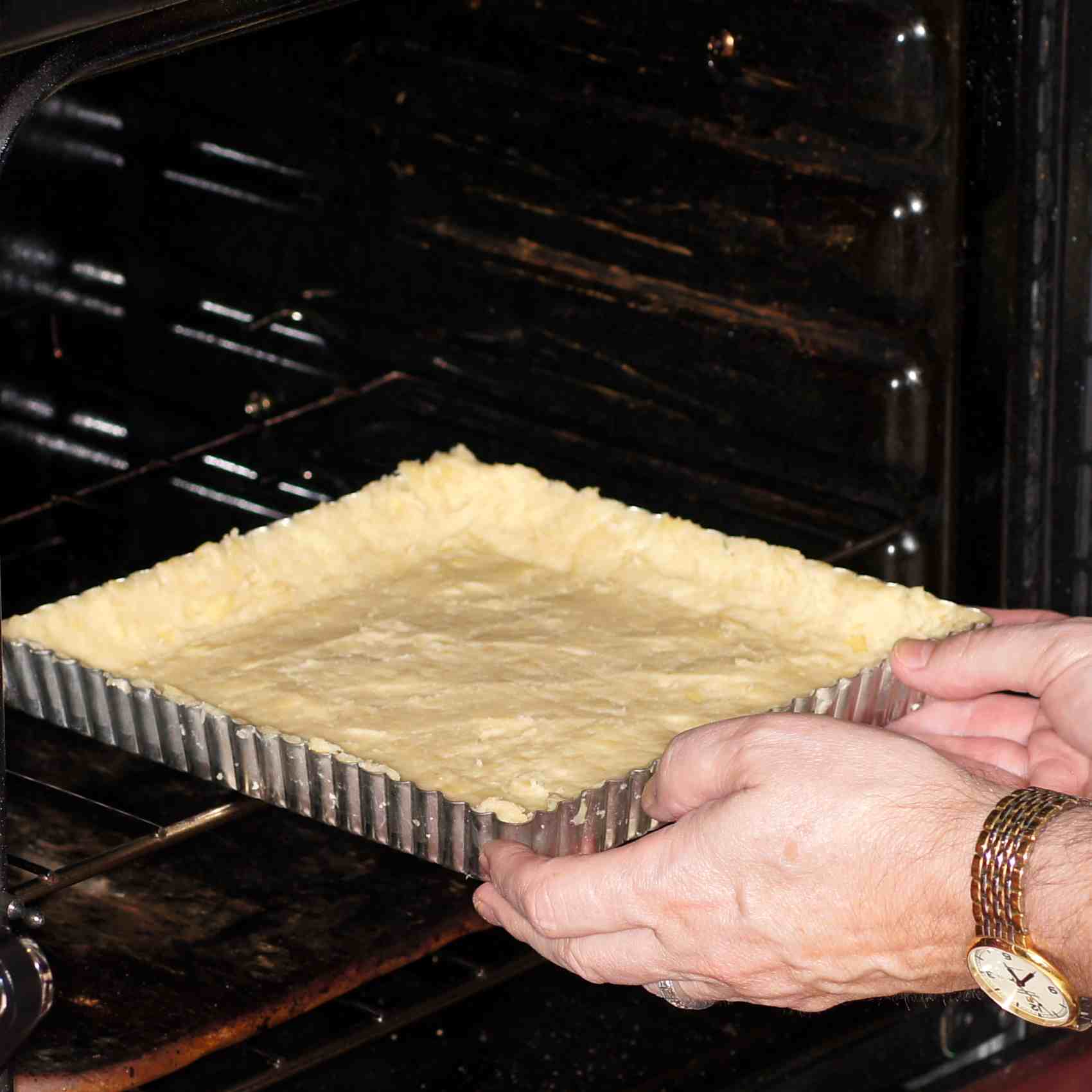 Bake the tart shell for 15 minutes, or until it is lightly colored and the shell feels dry to the touch.