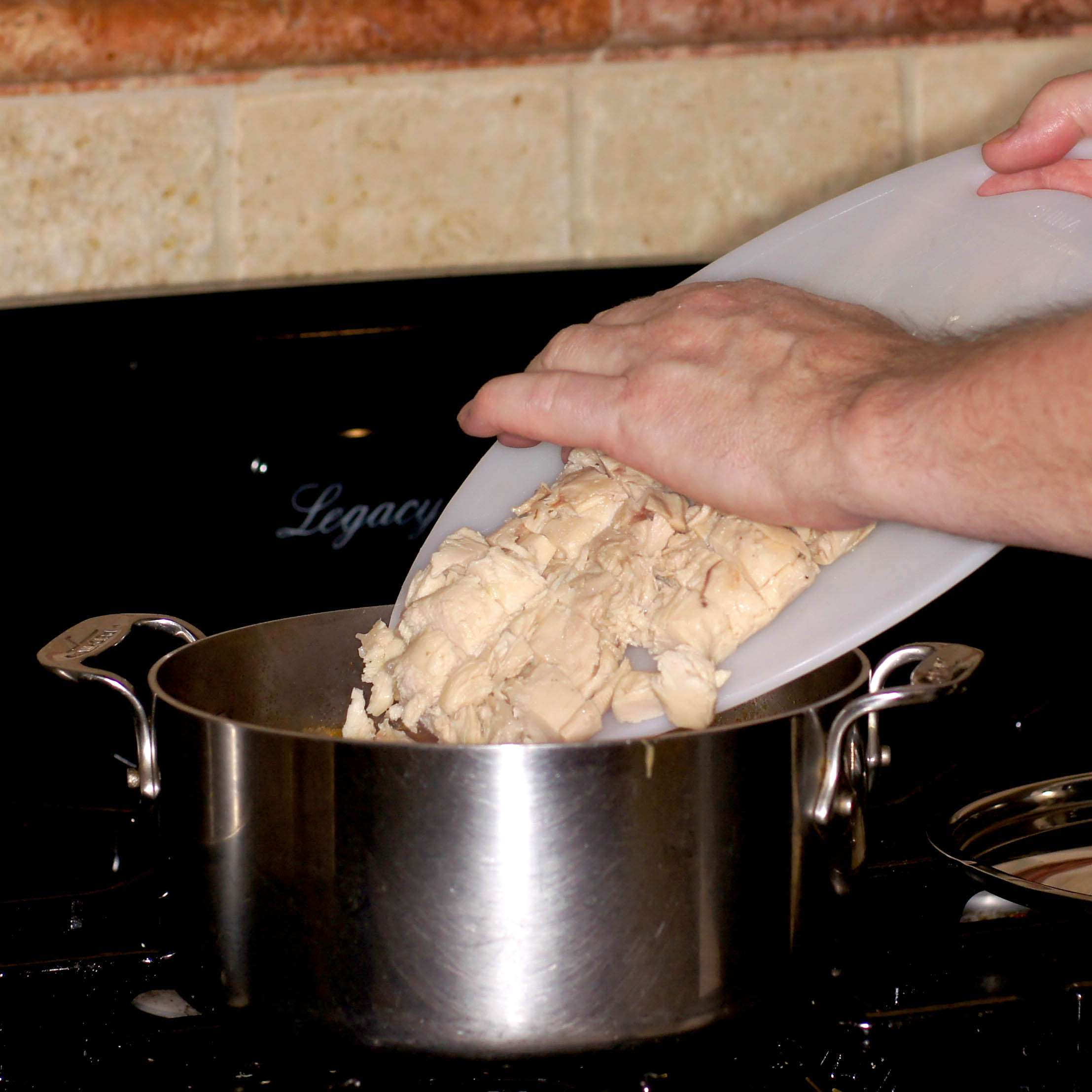 Add the chicken and allow the soup to simmer uncovered for 10 minutes.
