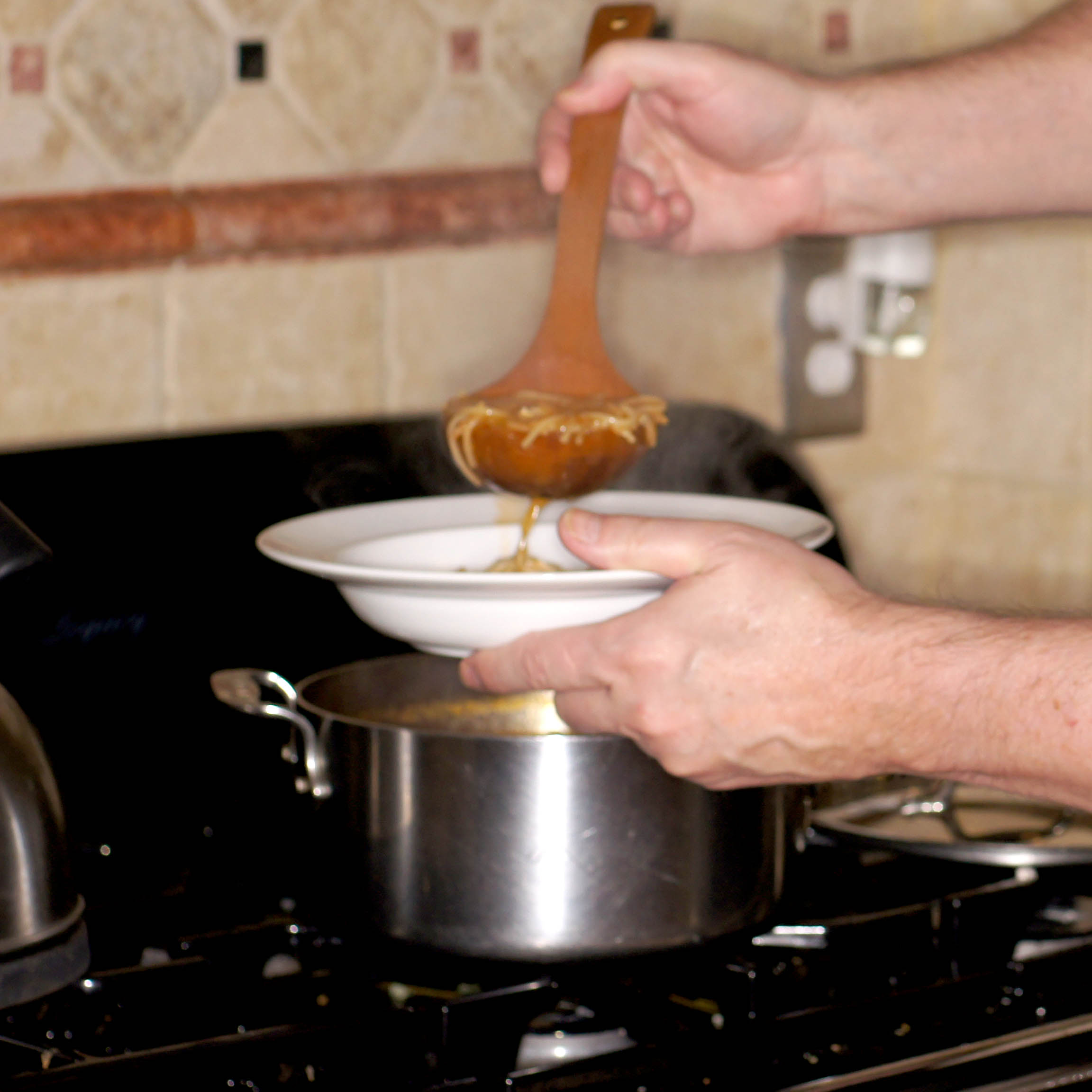 NOTES: Adding the liquids to the soup in intervals allows the noodles to absorb the flavors while the starch from the noodles cooks out. This helps develop the various layers of flavors in the soup.