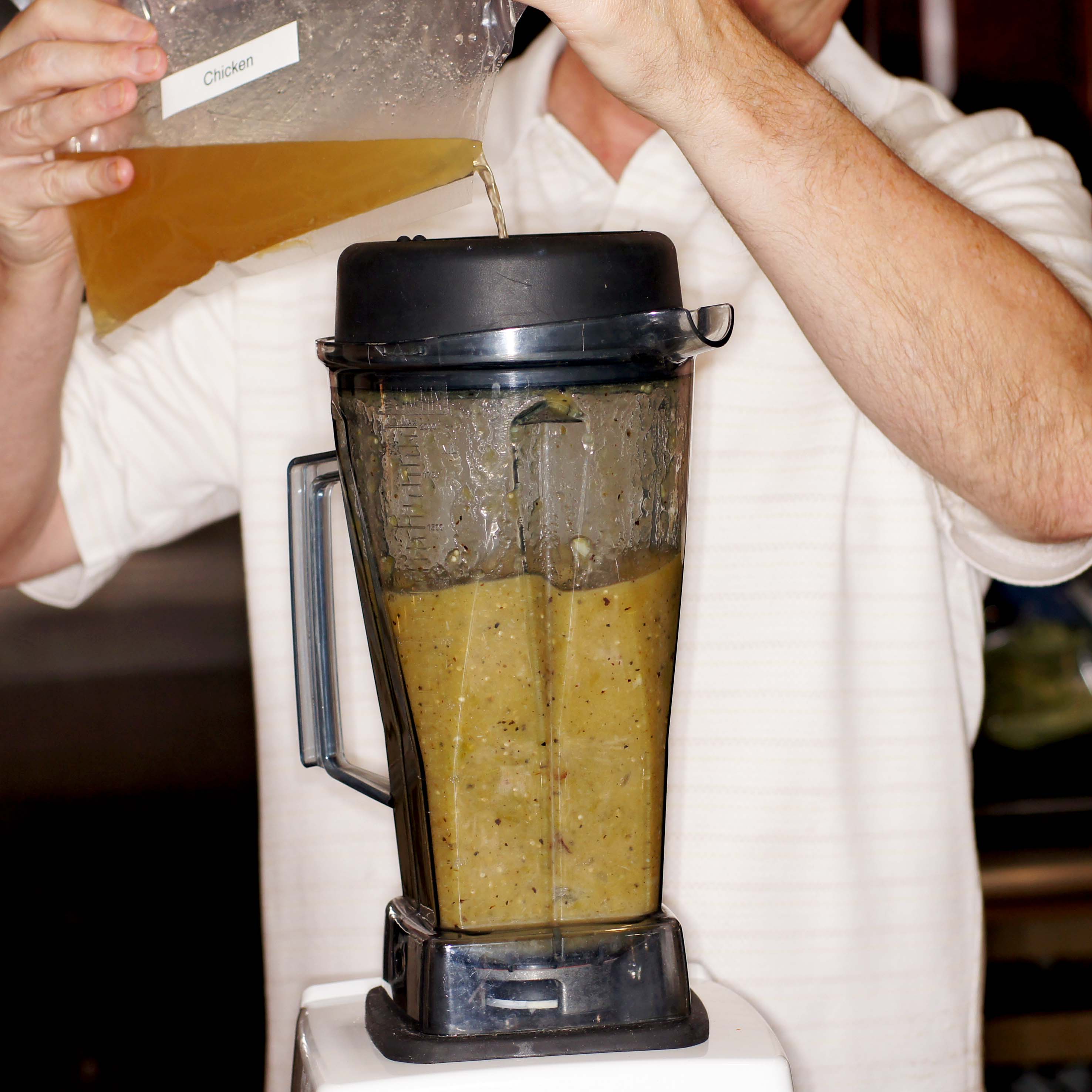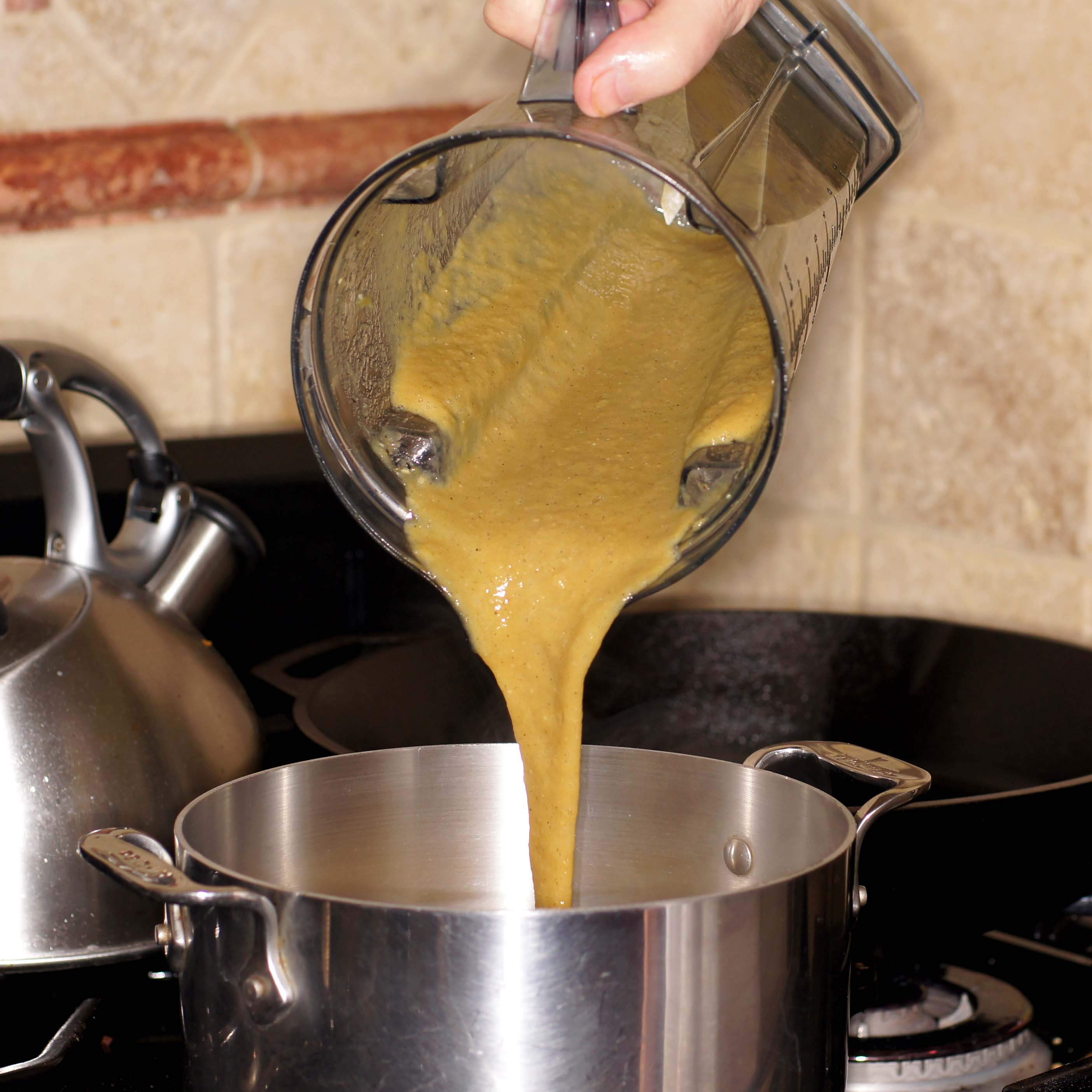 When completely blended, smooth and creamy, pour sauce into a large pot over medium heat.